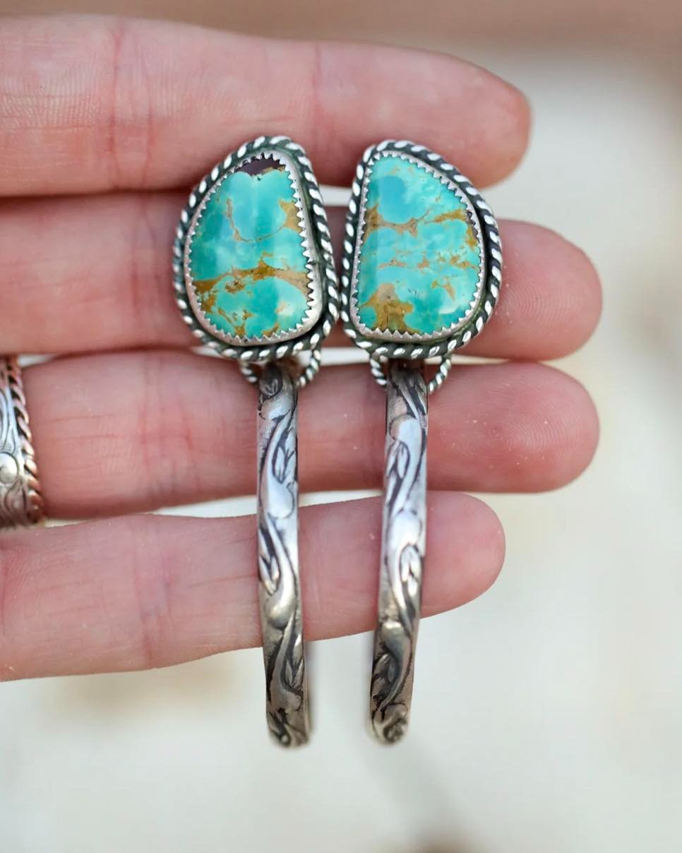 Boho-chic Silver Earrings with Intricate Green Gemstone Detailing