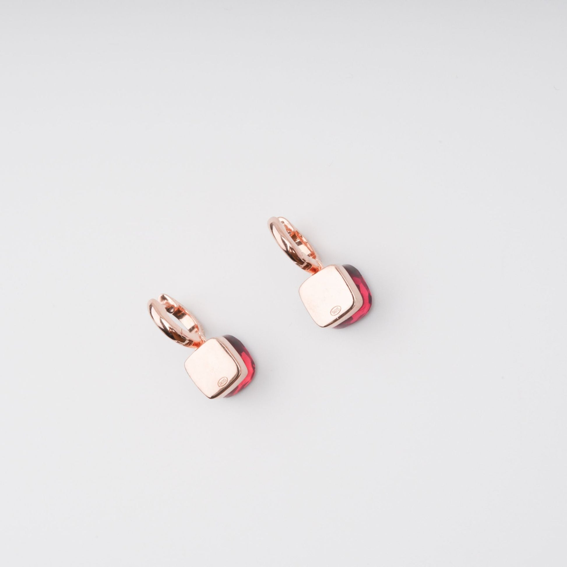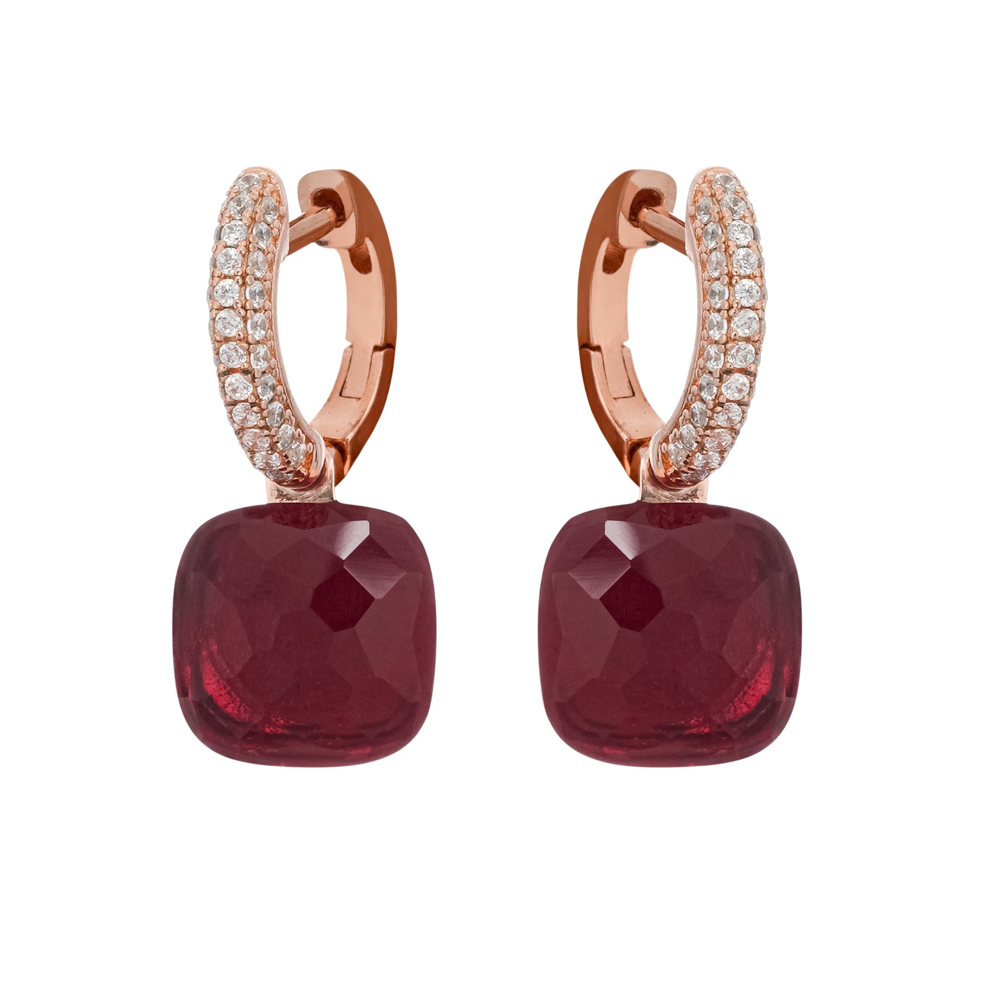 Aava Red Cushion Cut Gemstone Hoop Sterling Silver Earrings