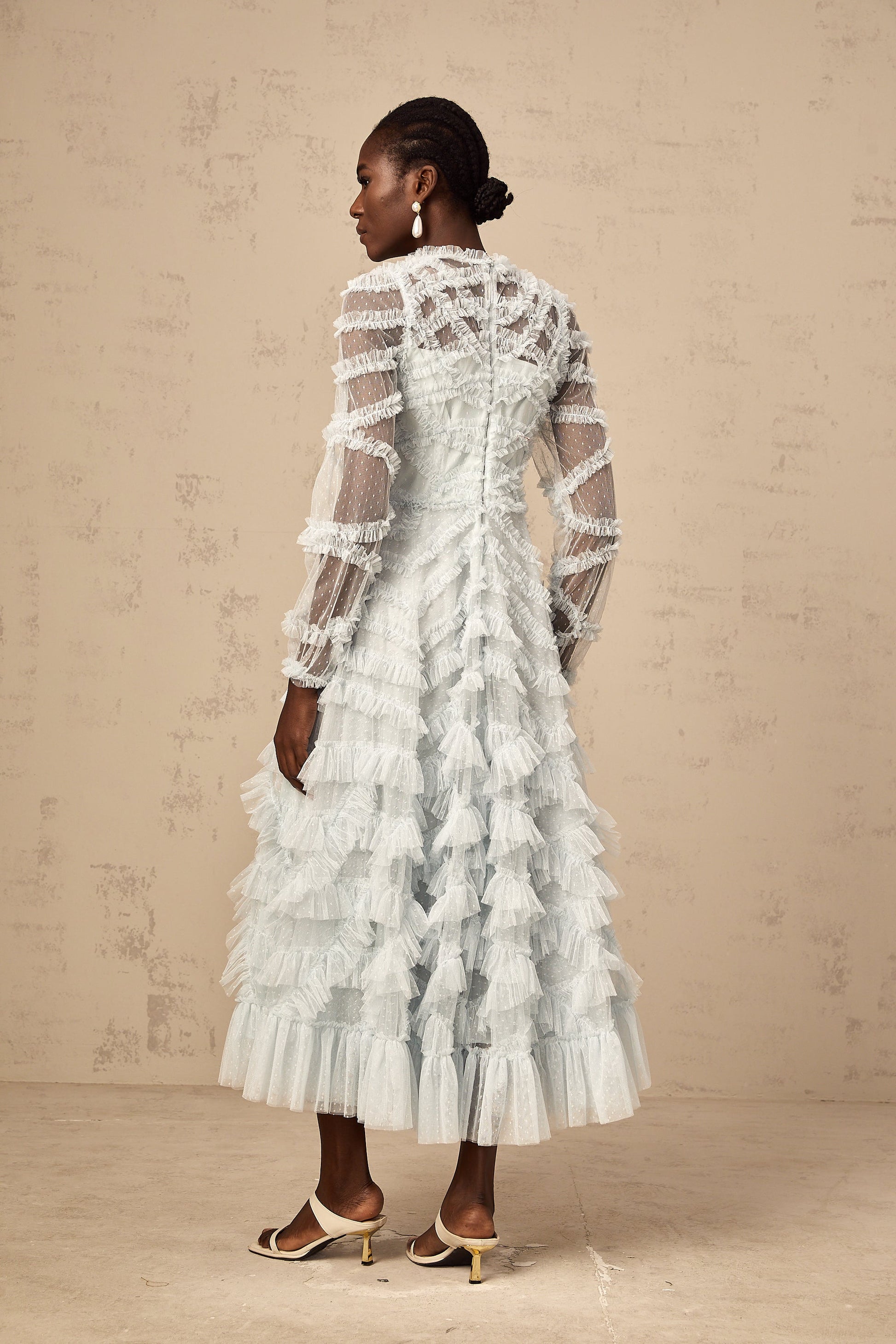 Adélaïde blue dot-detail ruffled midi dress