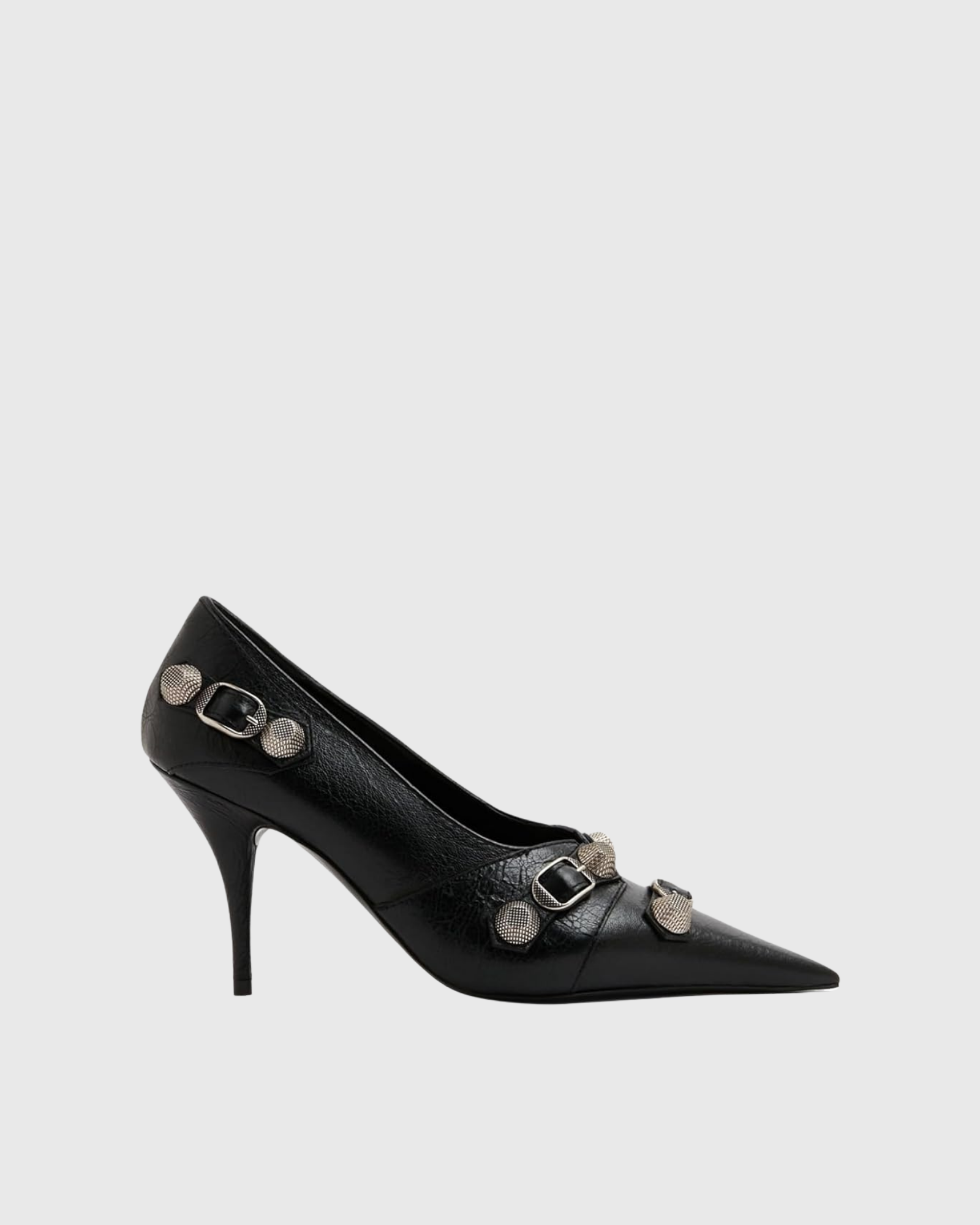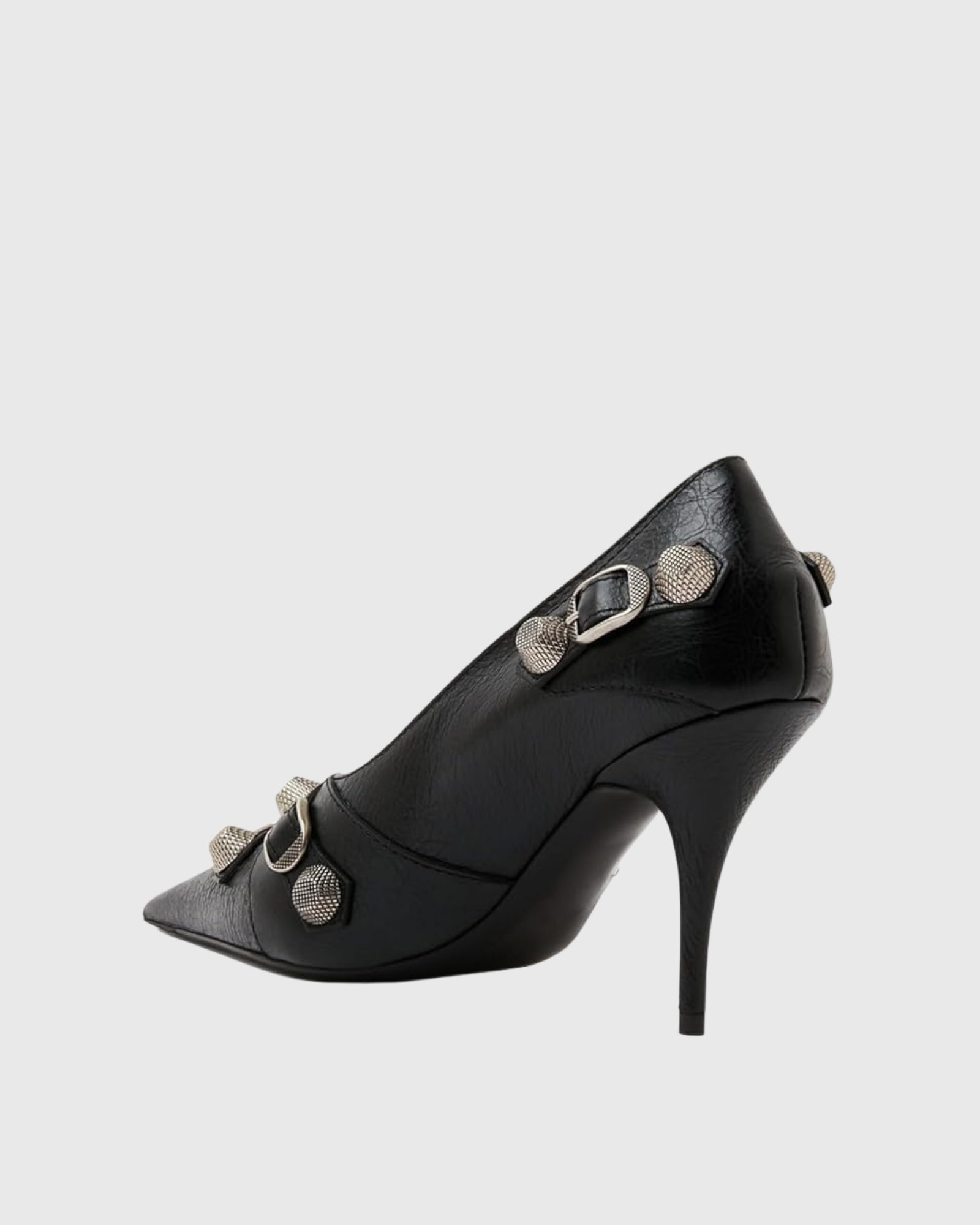 Elevate your style with our Afra Rivet Embellished Leather Pumps In Black! These stunning pumps feature a sleek black leather design with eye-catching rivet embellishments, delivering a touch of edginess to your wardrobe. Channel confidence and sophistication with every step in these must-have pumps.