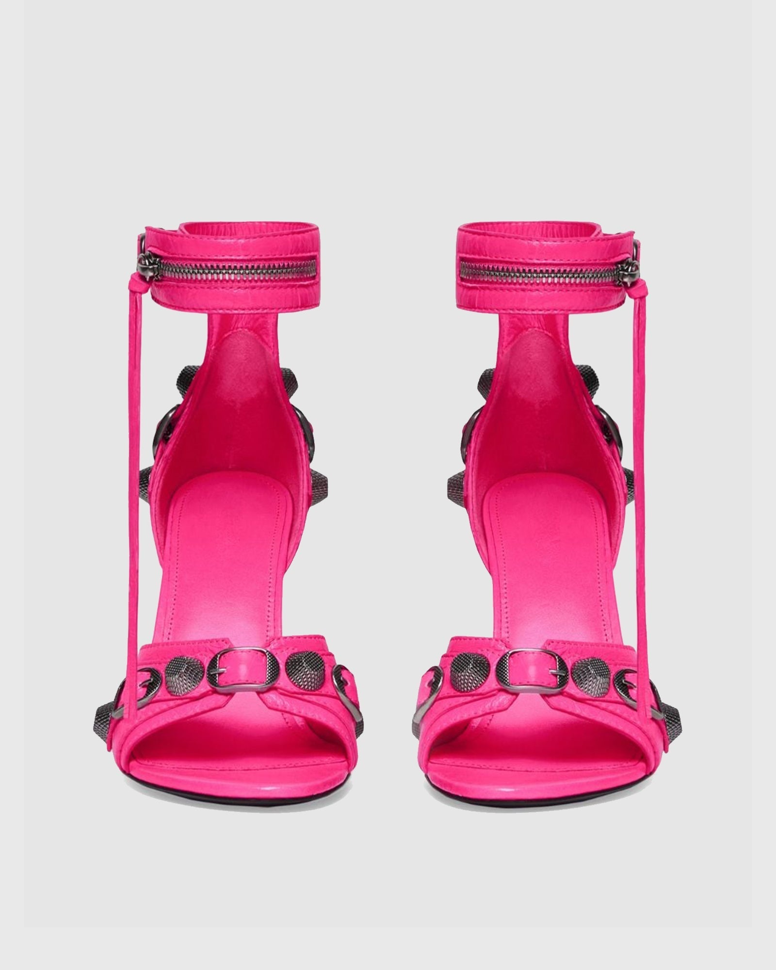 Afra Rivet Leather Strap Sandals In Hot Pink