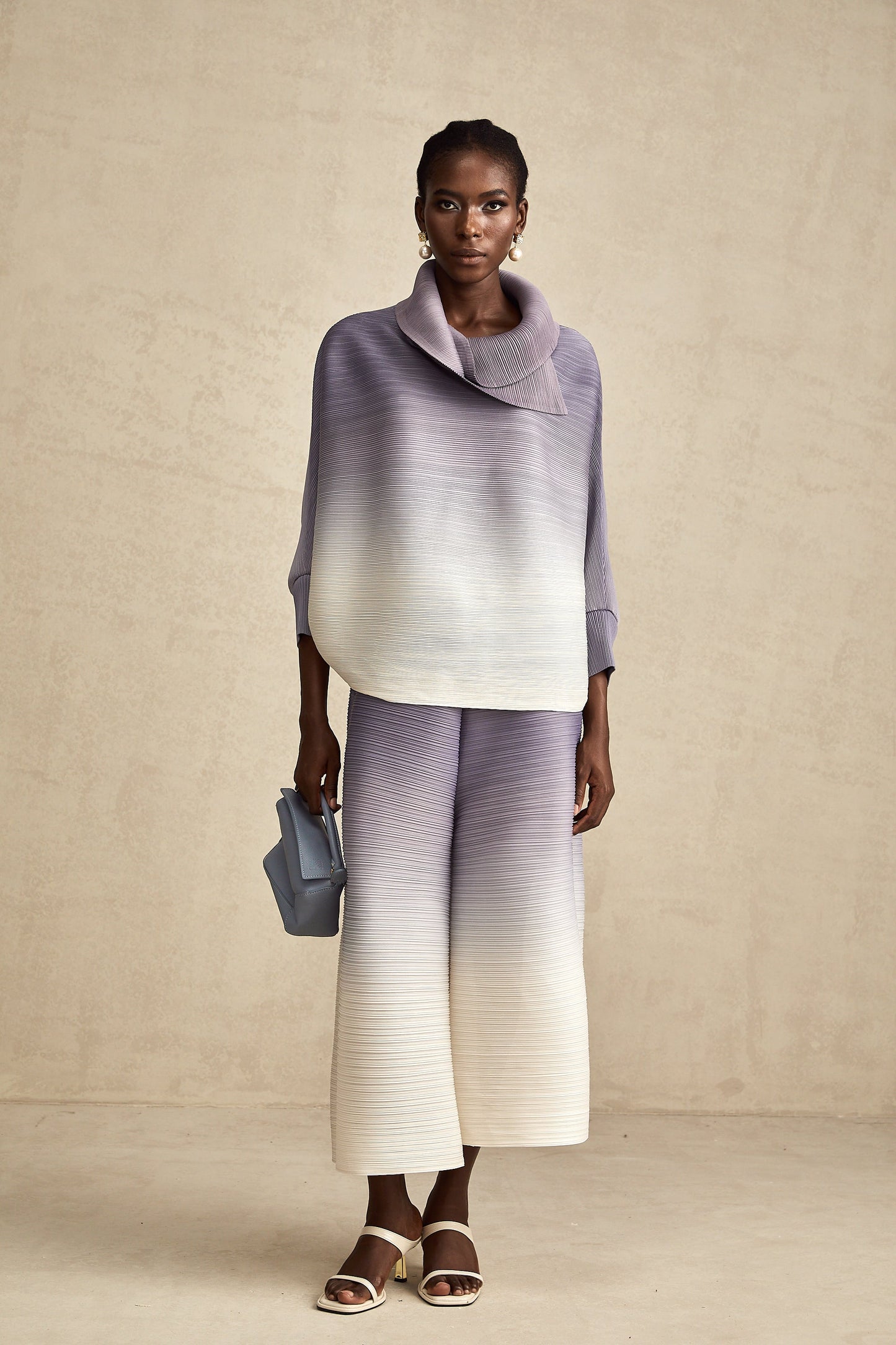 Agathe purple gradient wrinkled blouse & trousers matching set