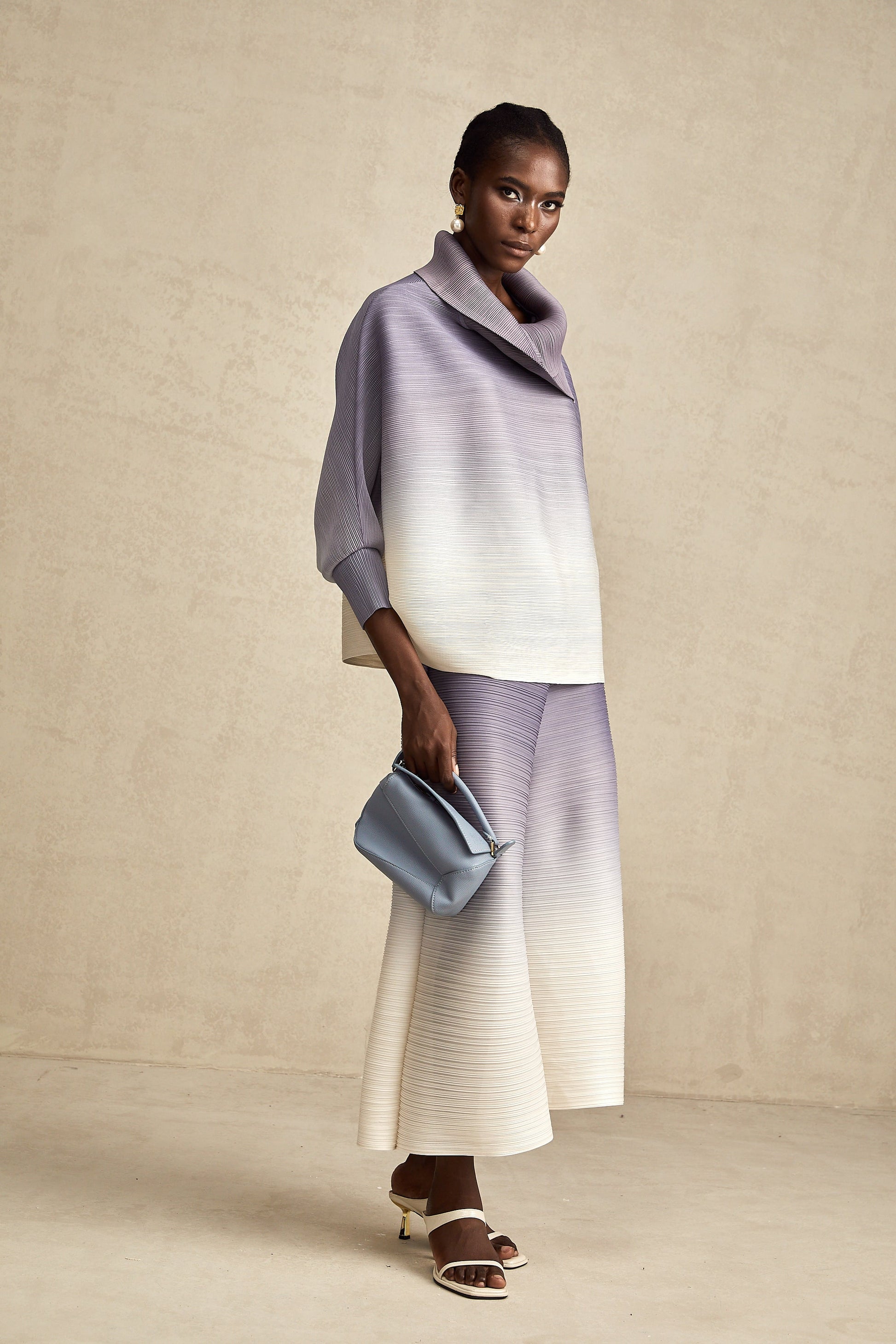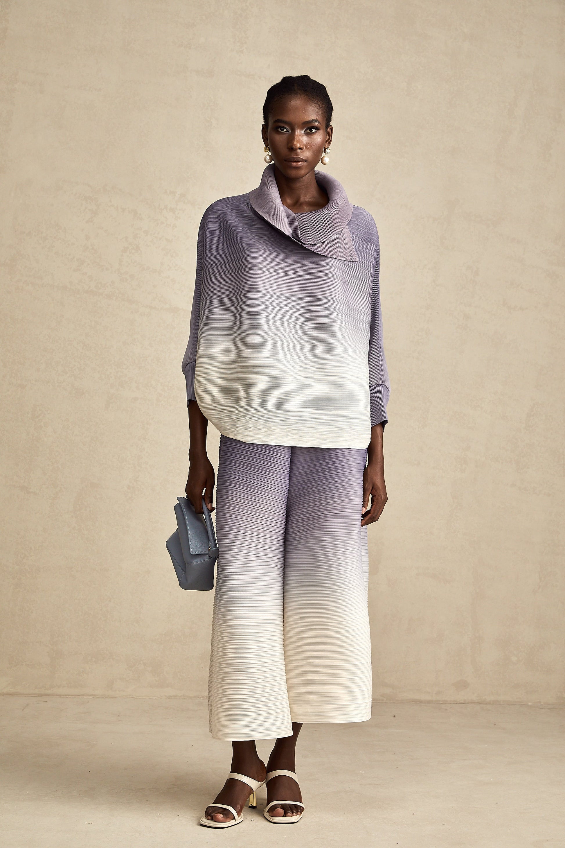Agathe purple gradient wrinkled blouse & trousers matching set
