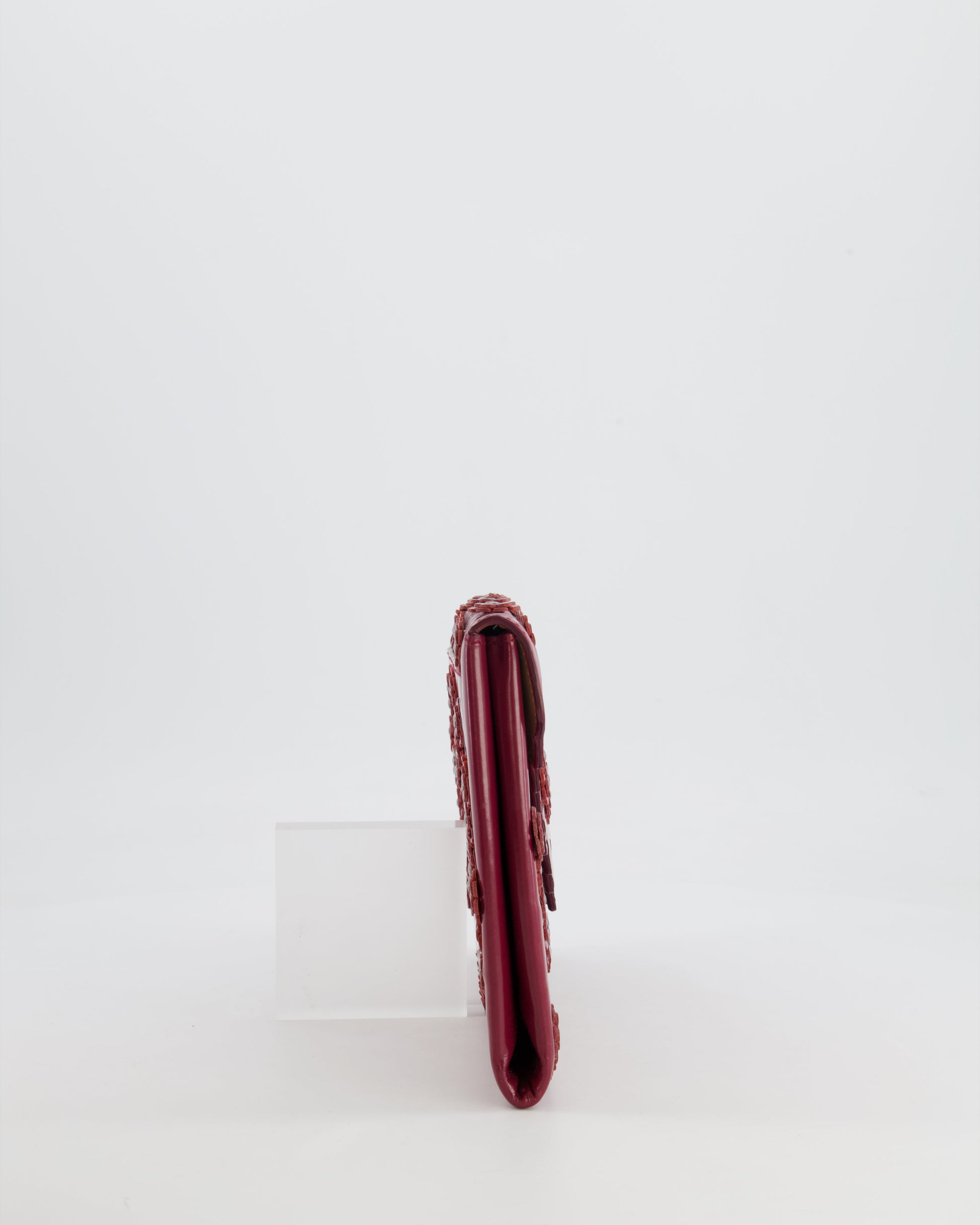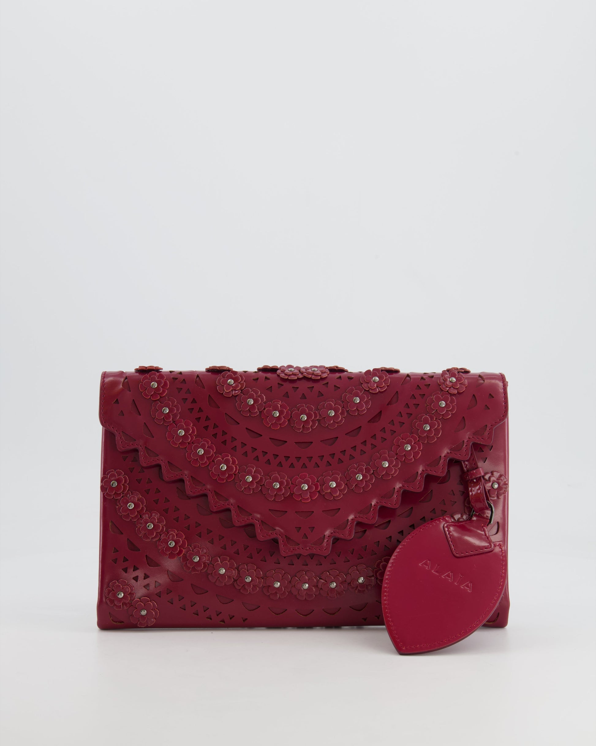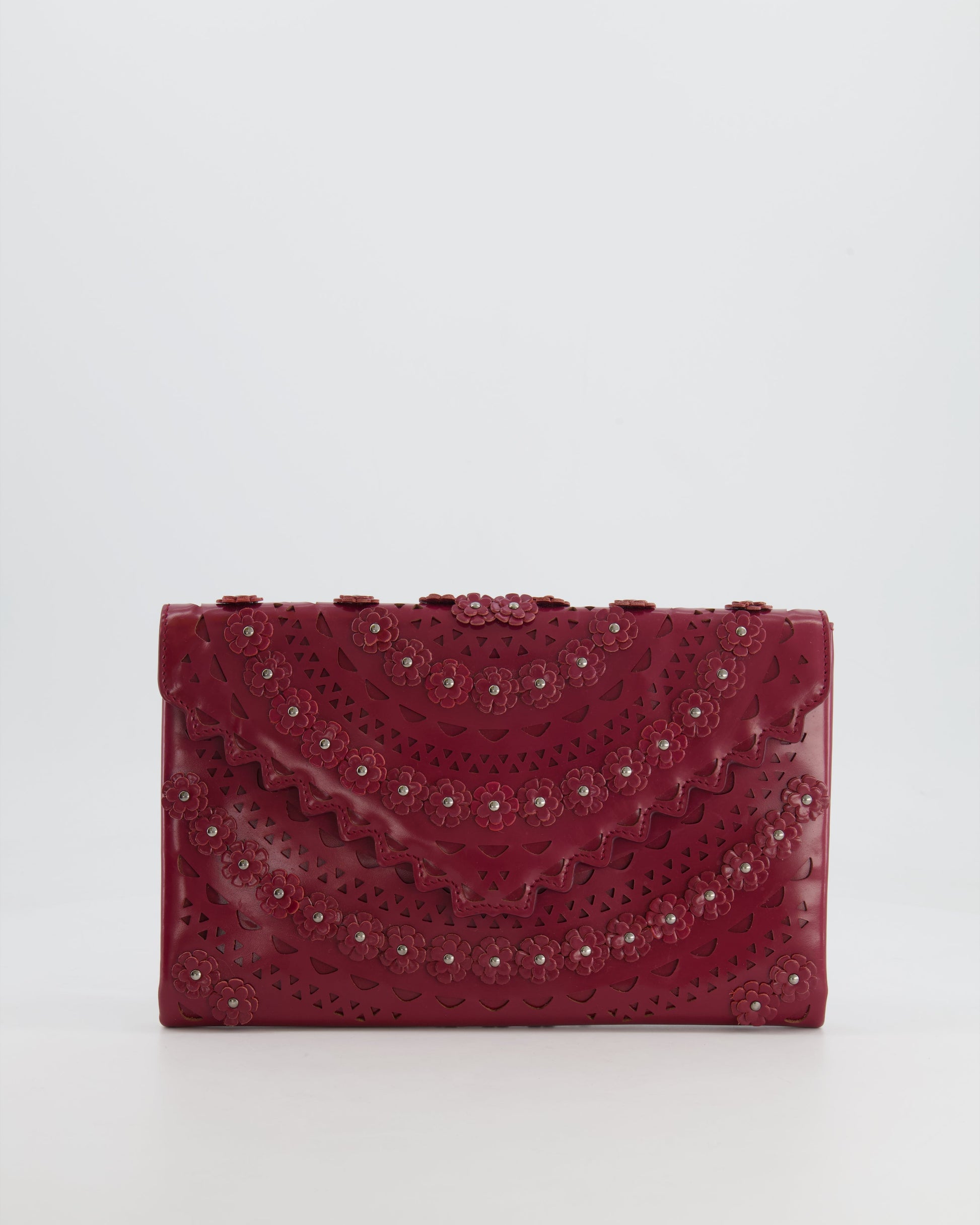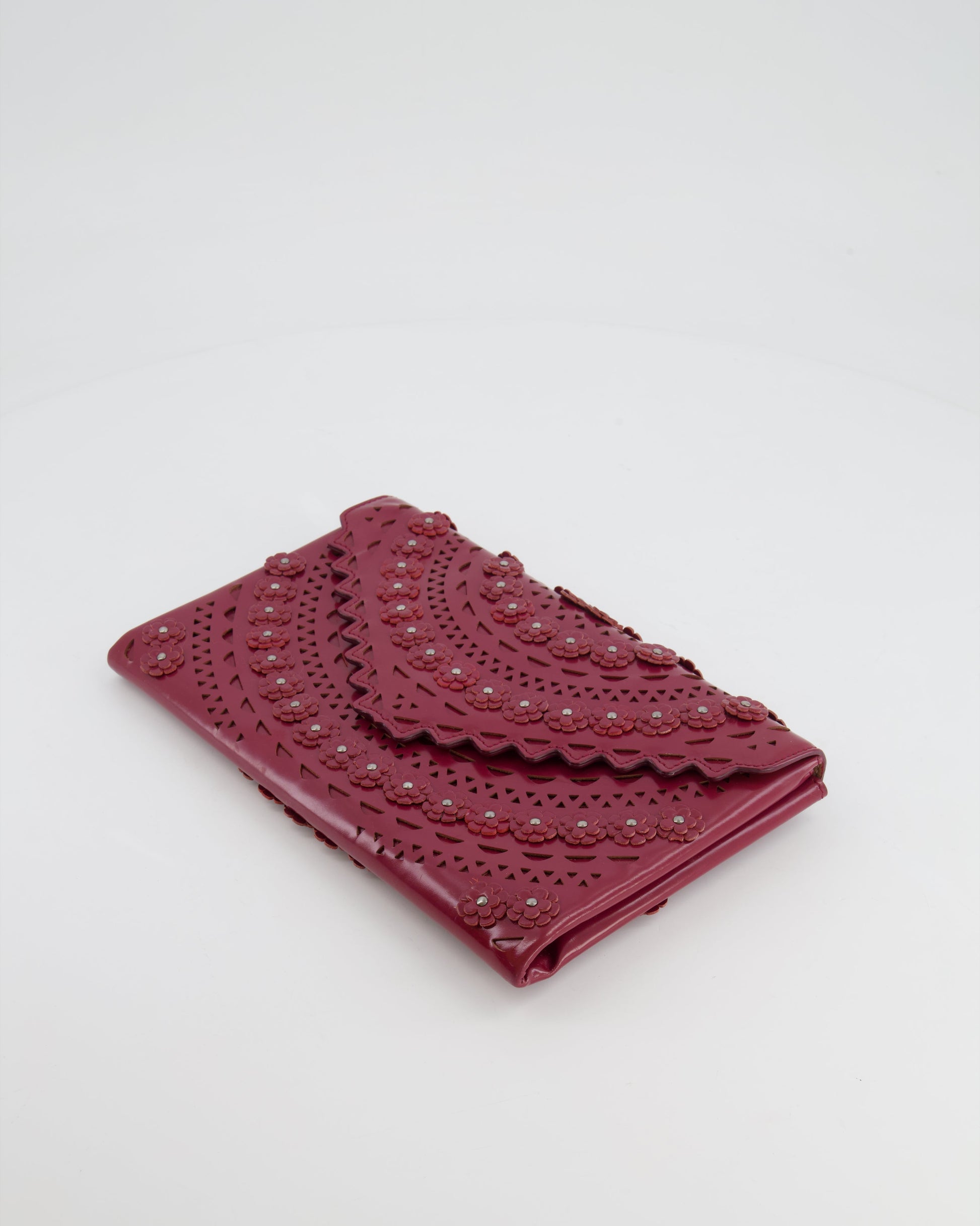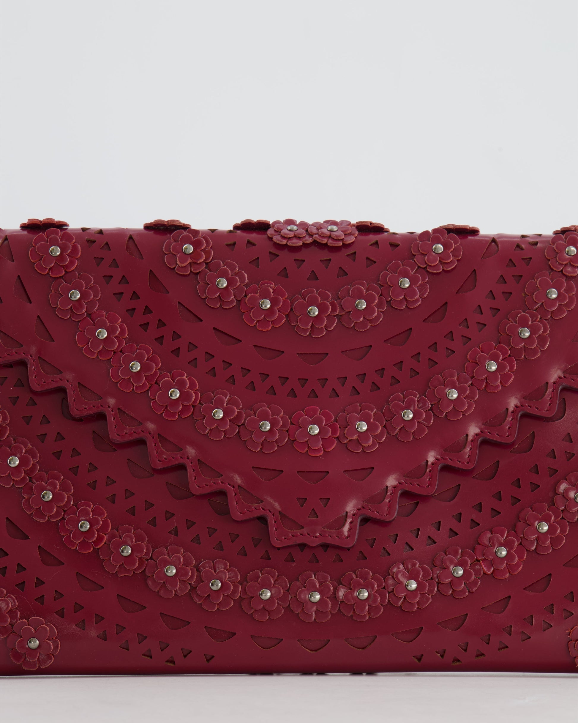Alaïa Burgundy Patent Leather Floral Oum Clutch Bag with Silver Hardware RRP £2,200
