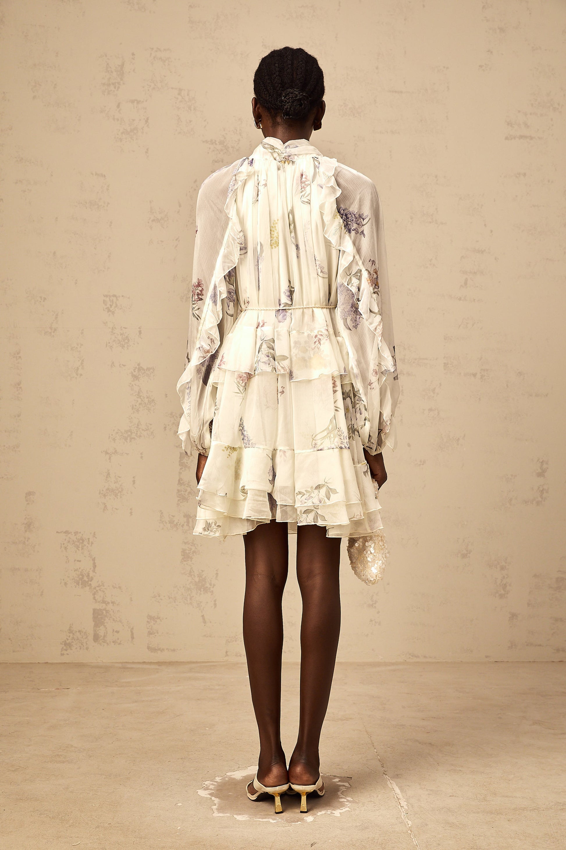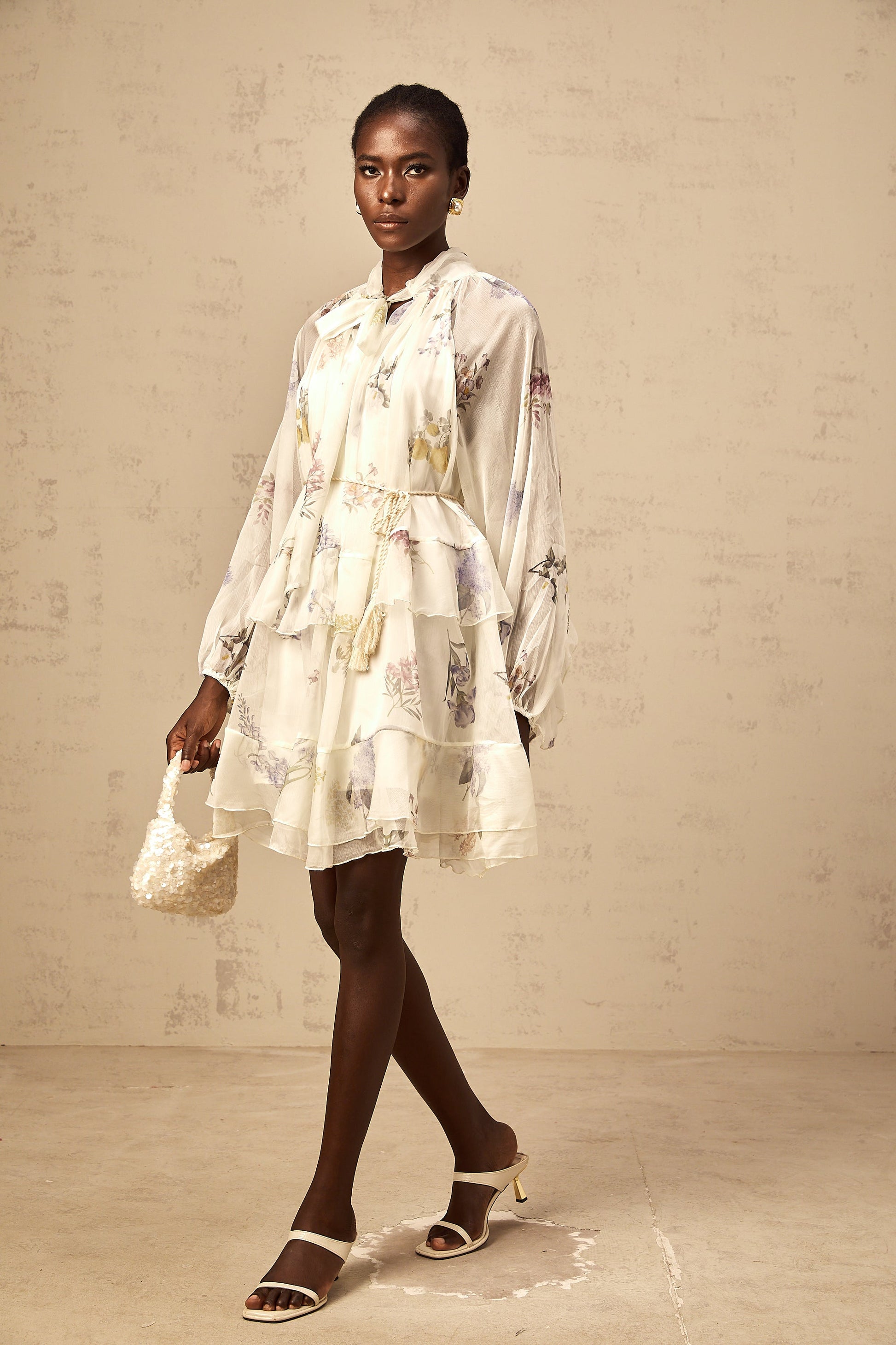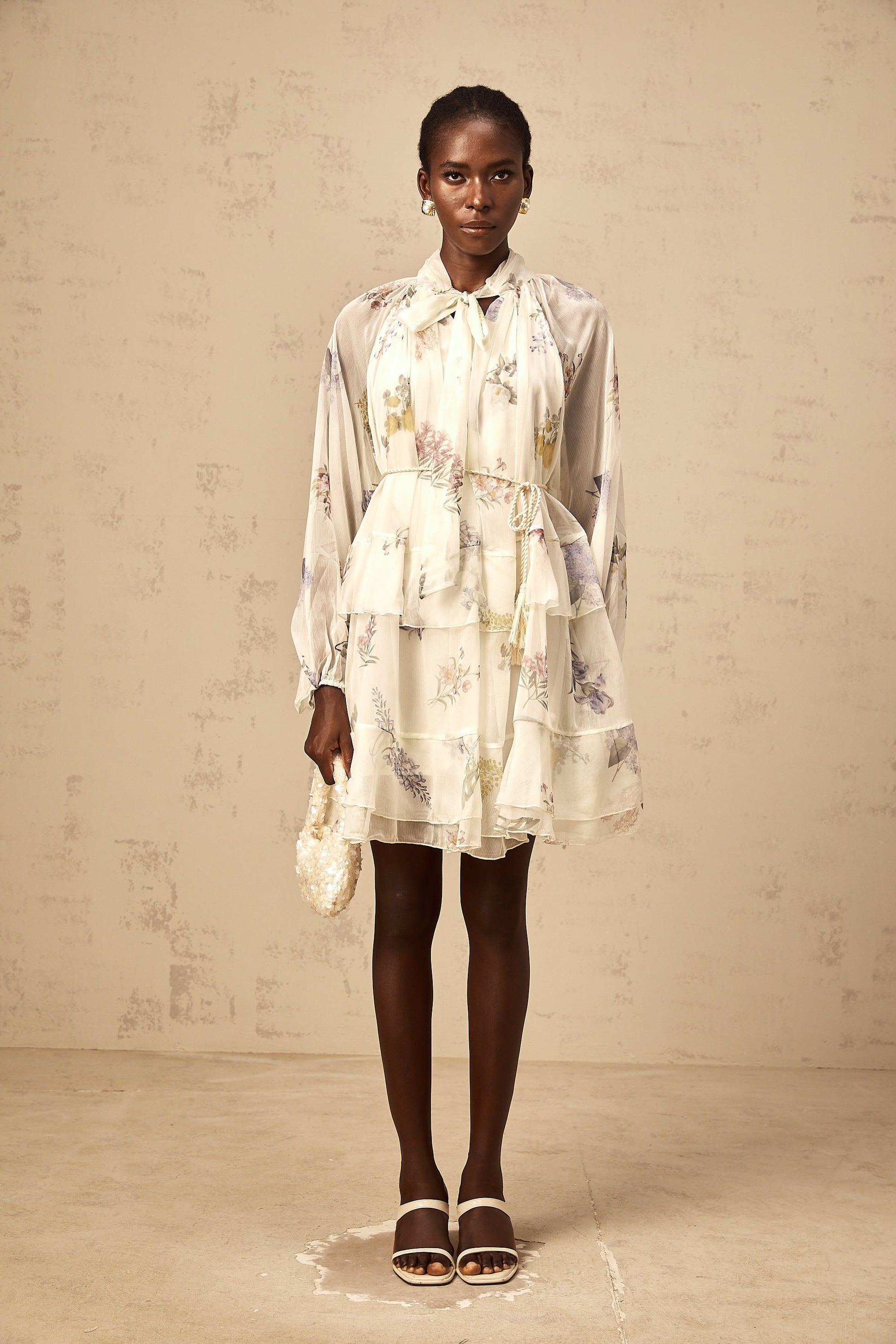 Albane white floral-print tiered chiffon mini dress