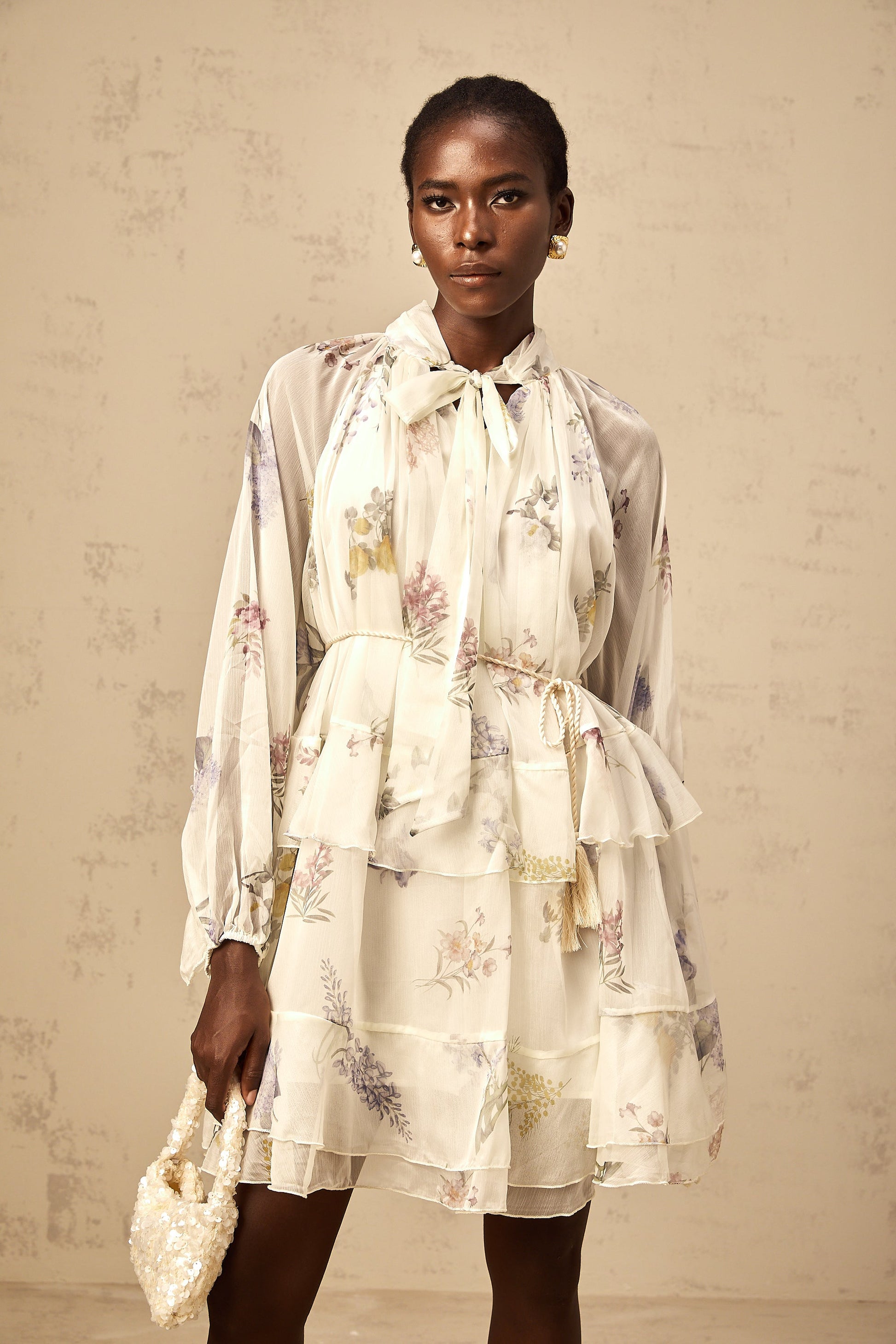 • Ribbon tie-neck detailing