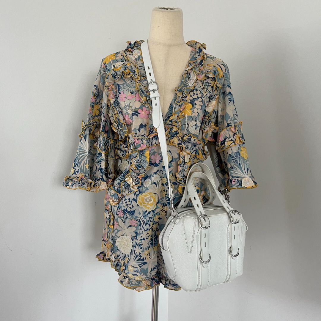Alexander Wang White Textured Leather Box Bag With crossbody strap