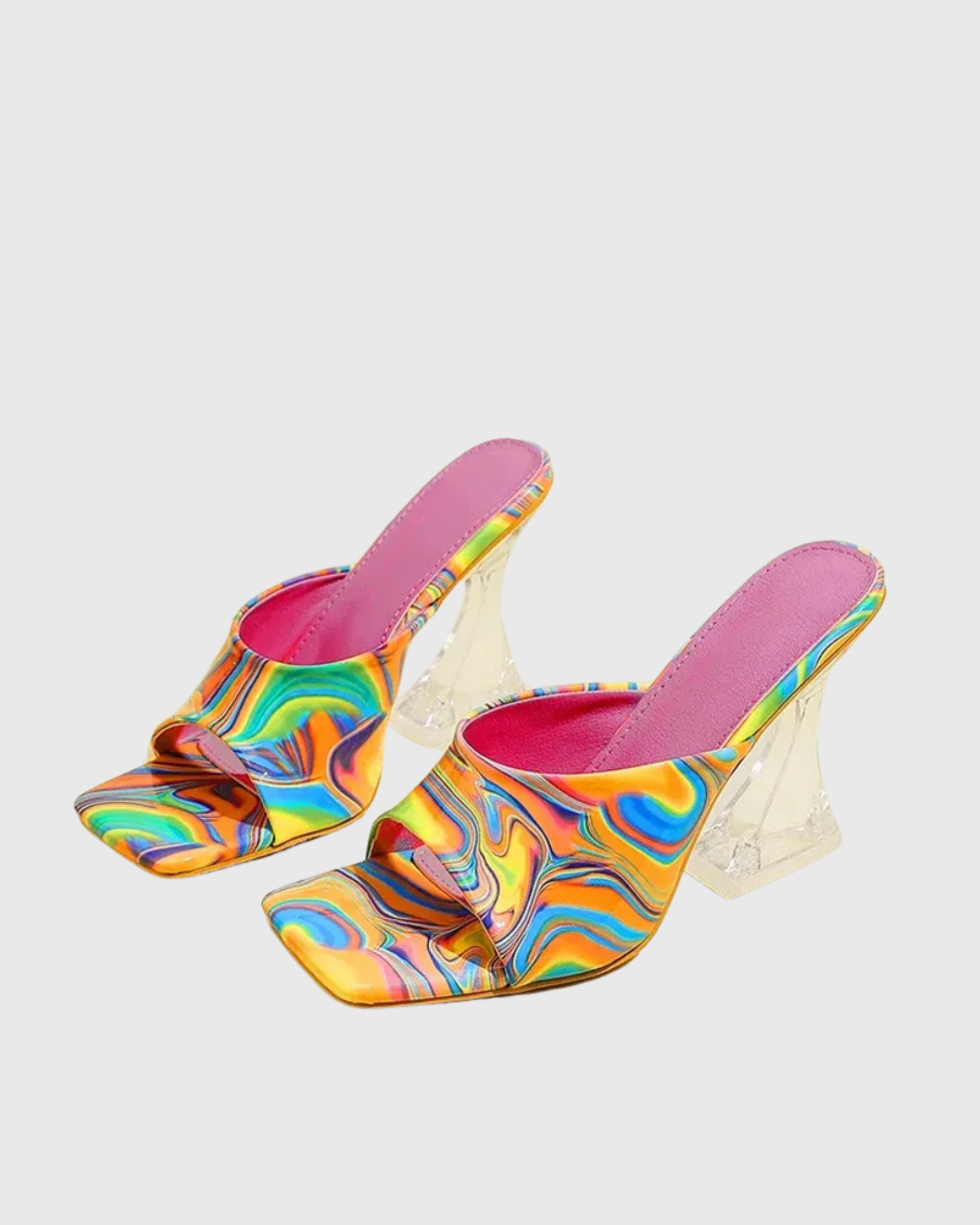 Alia Paint Flared Heels In Multicolor
