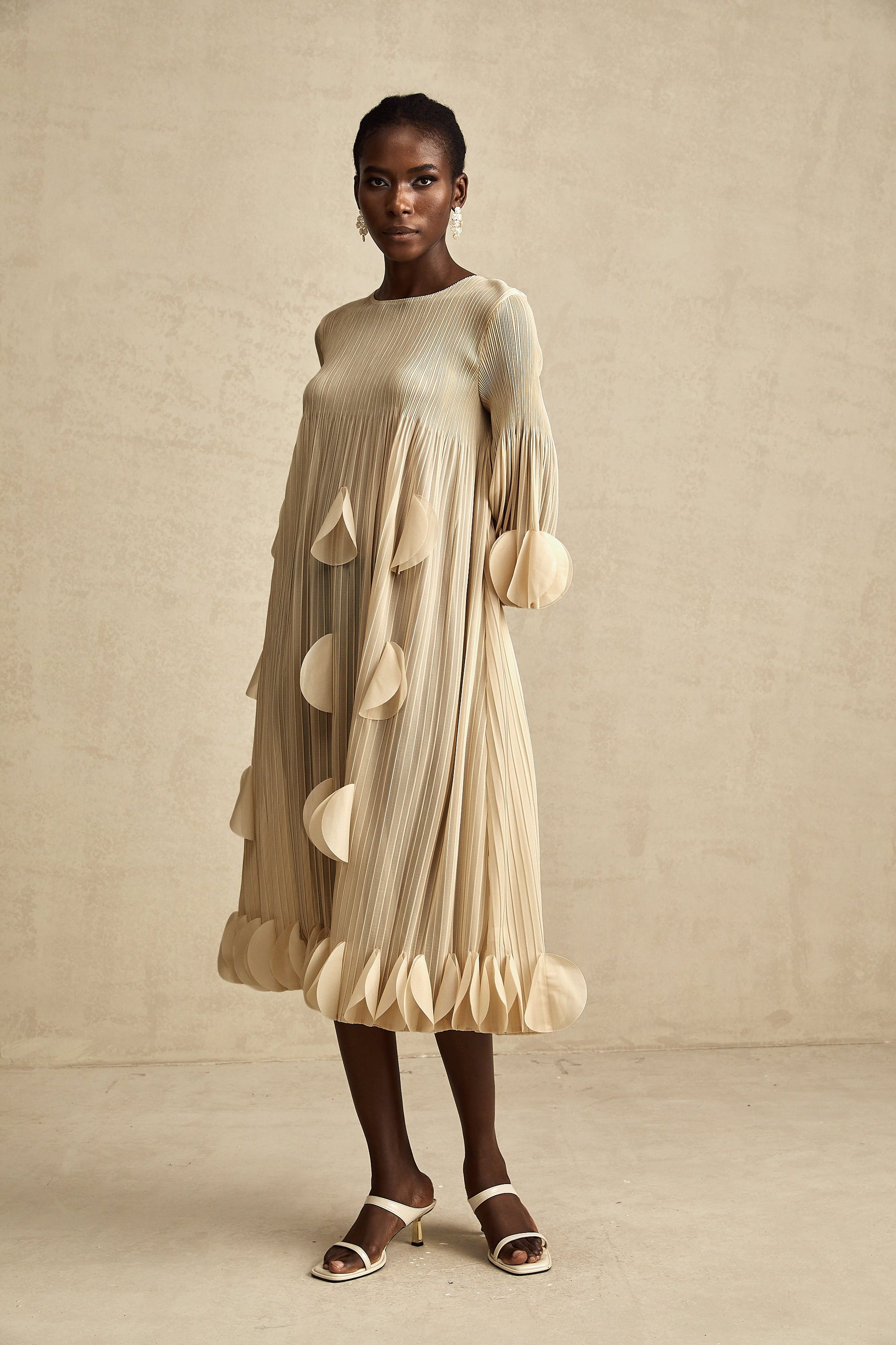 Alizée 3d-petal pleated midi dress