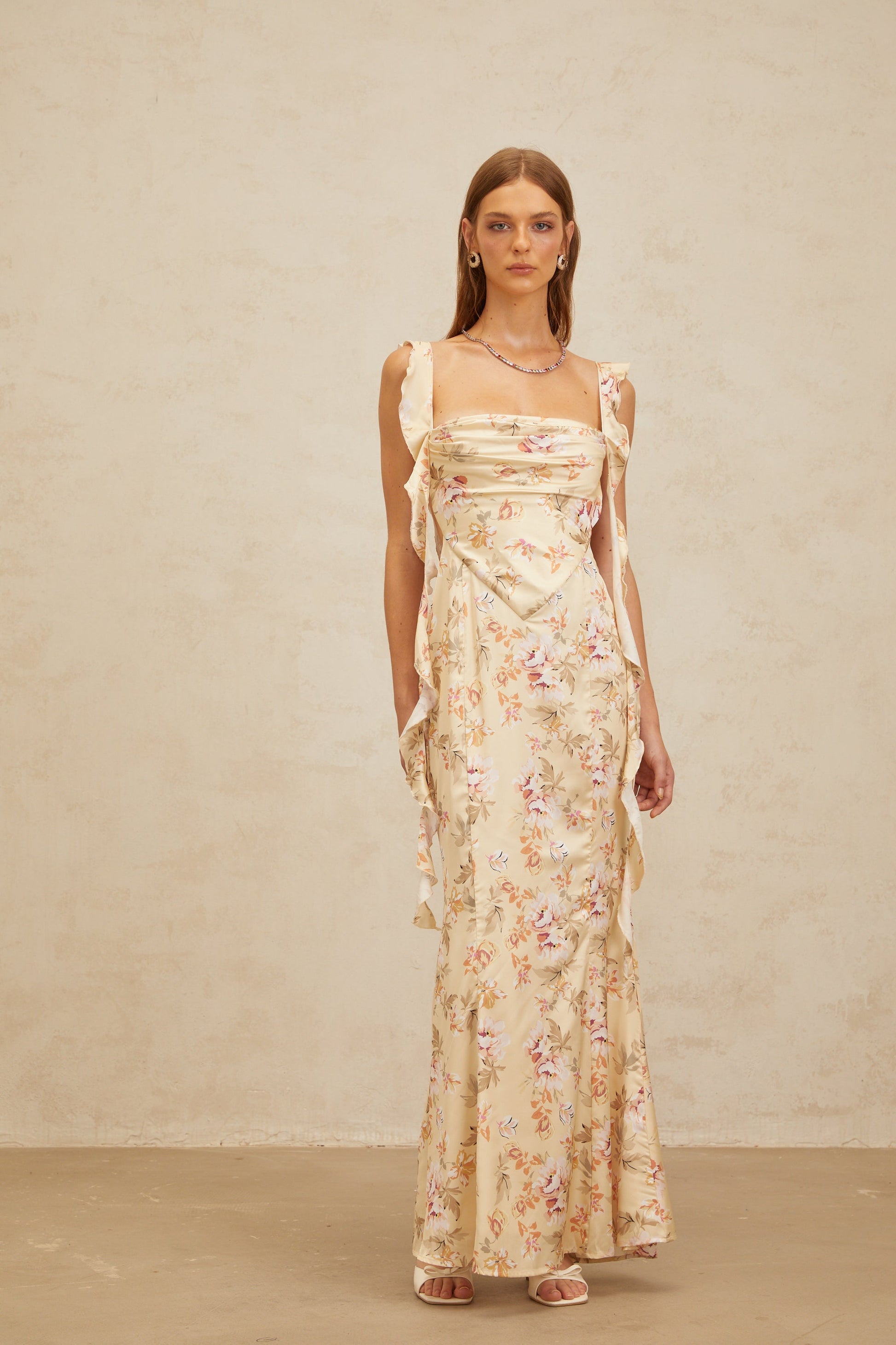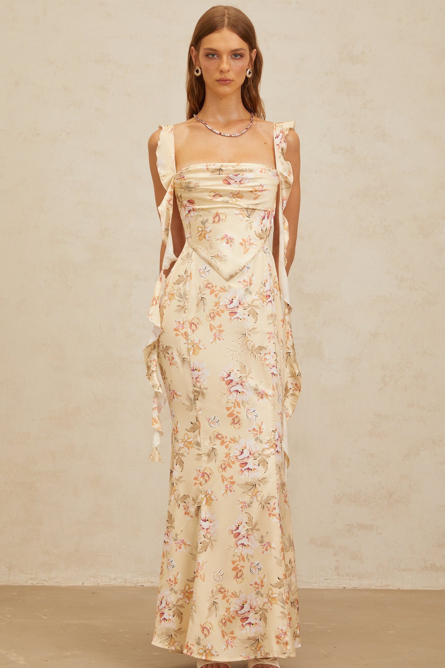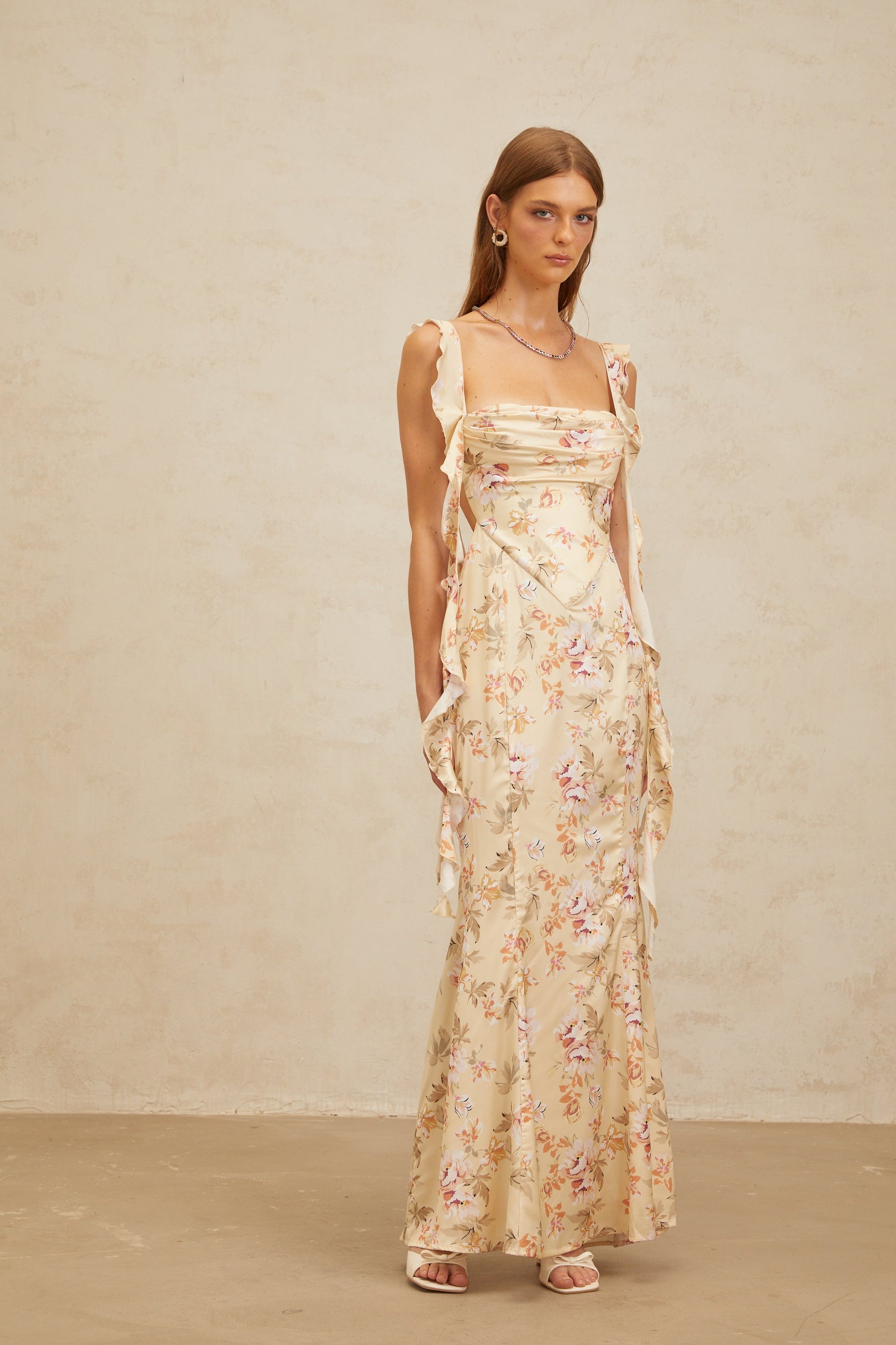 Alizée Yellow Floral Print Mermaid Maxi Dress