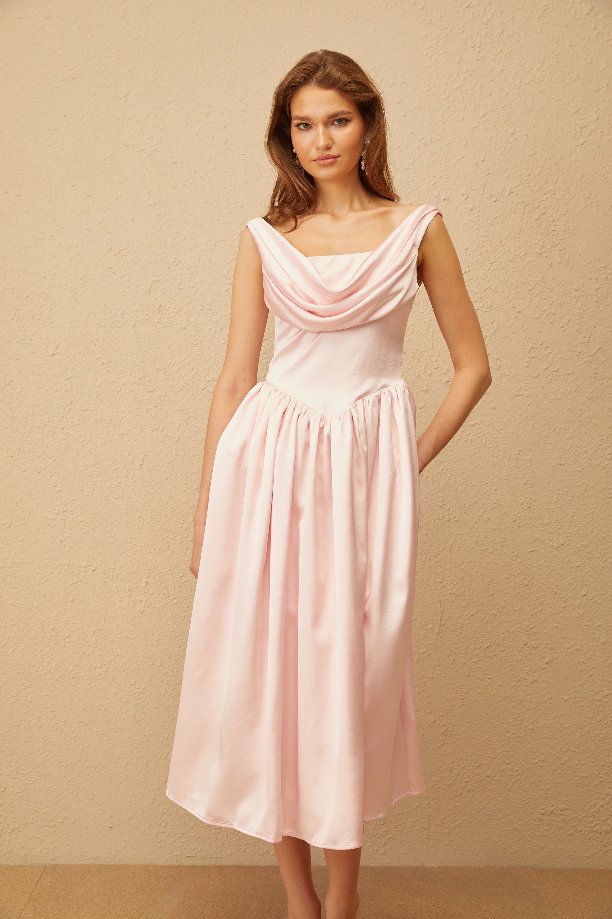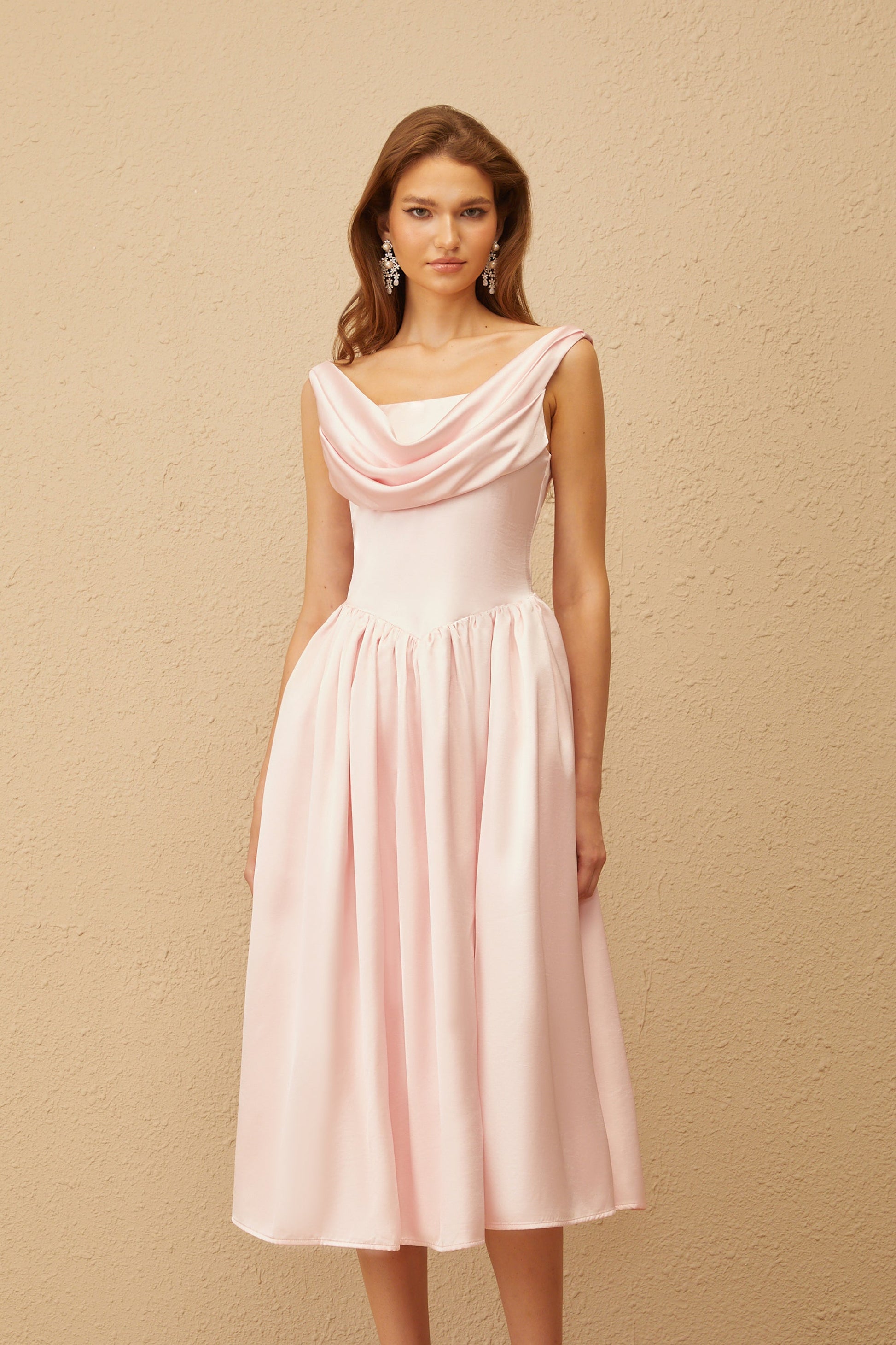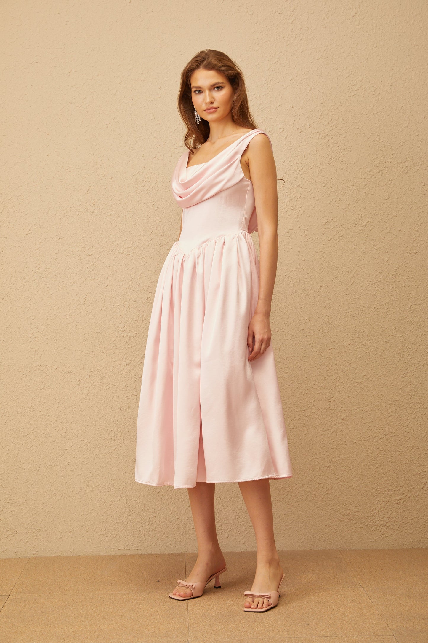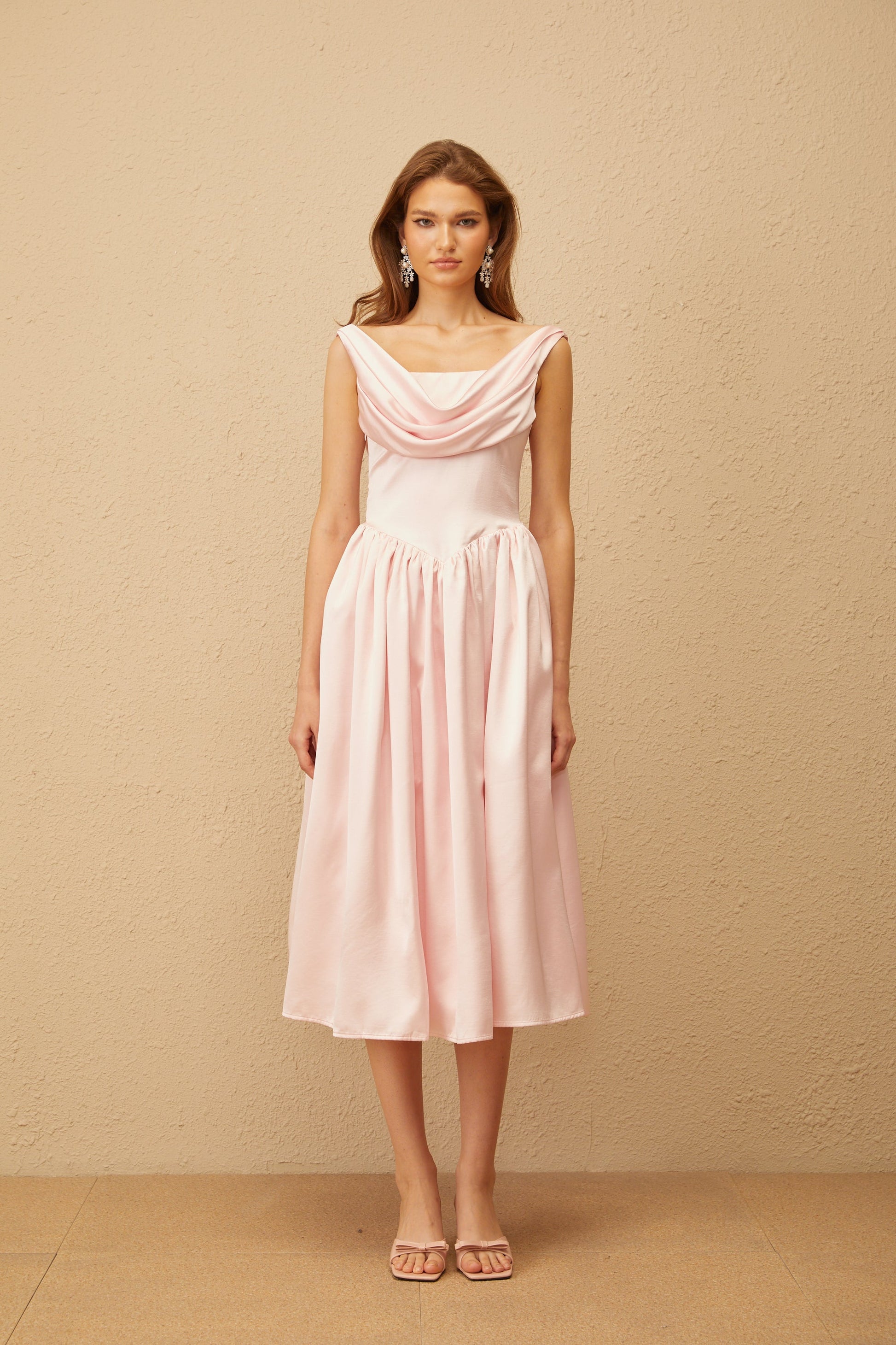 Althéa Pink Cowl Neck Voluminous Midi Dress