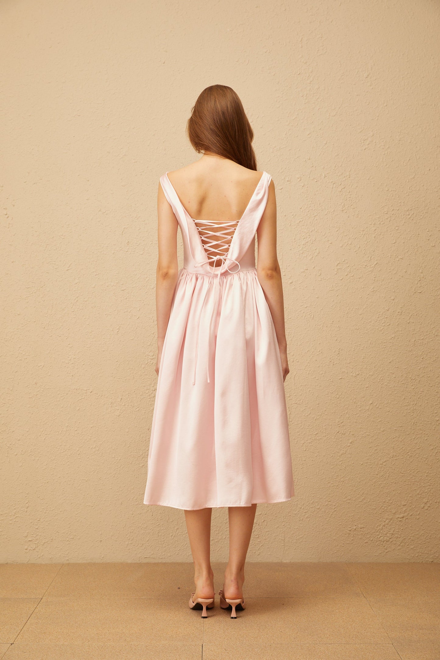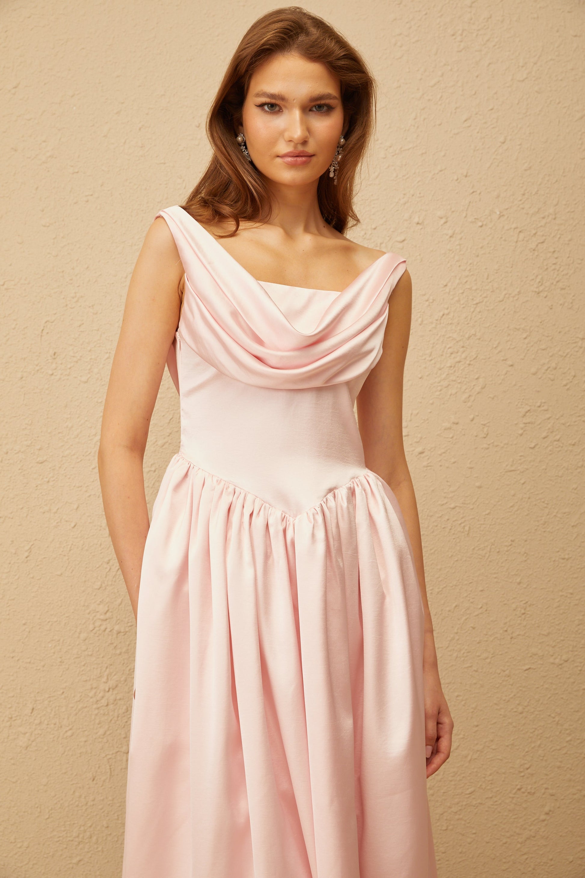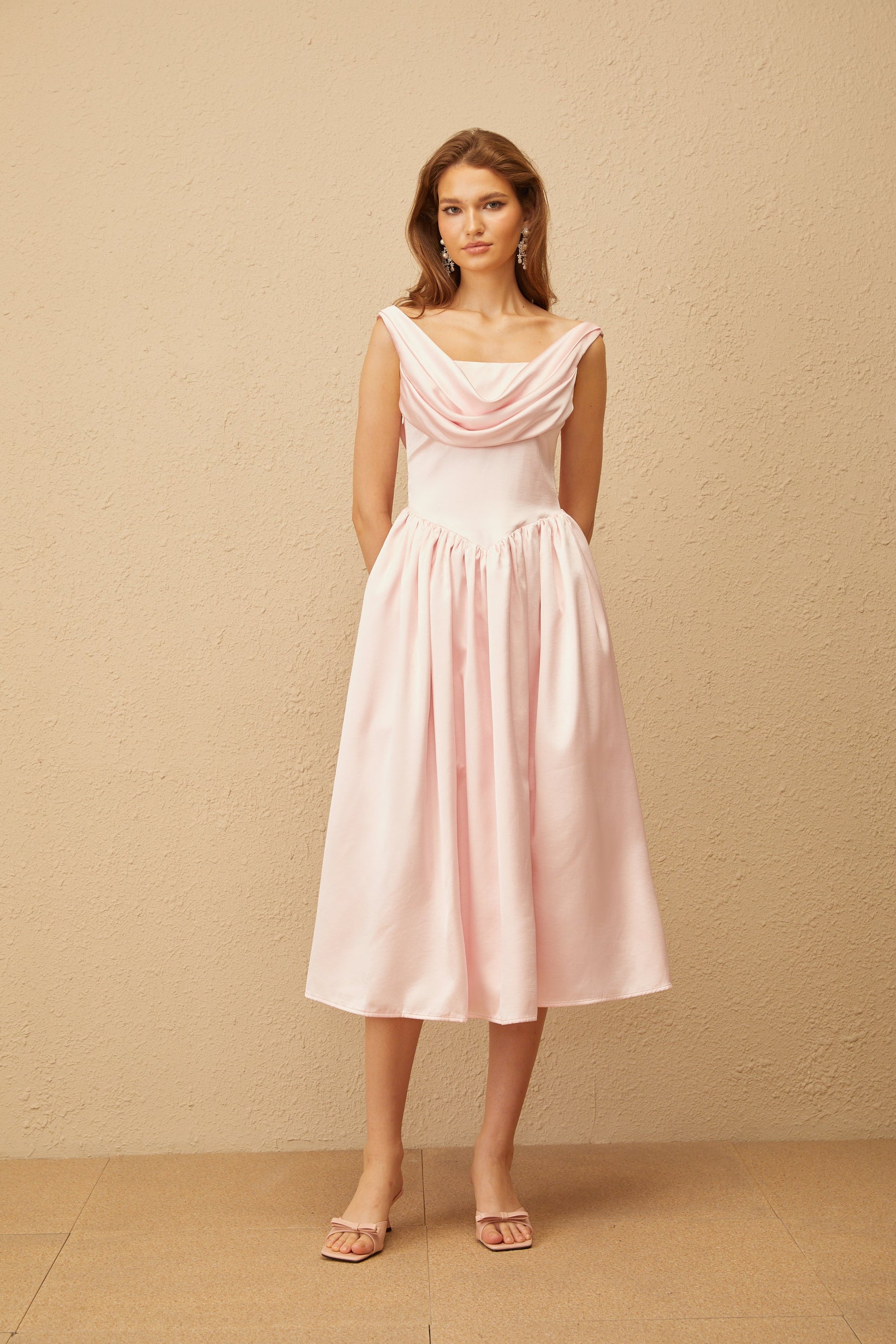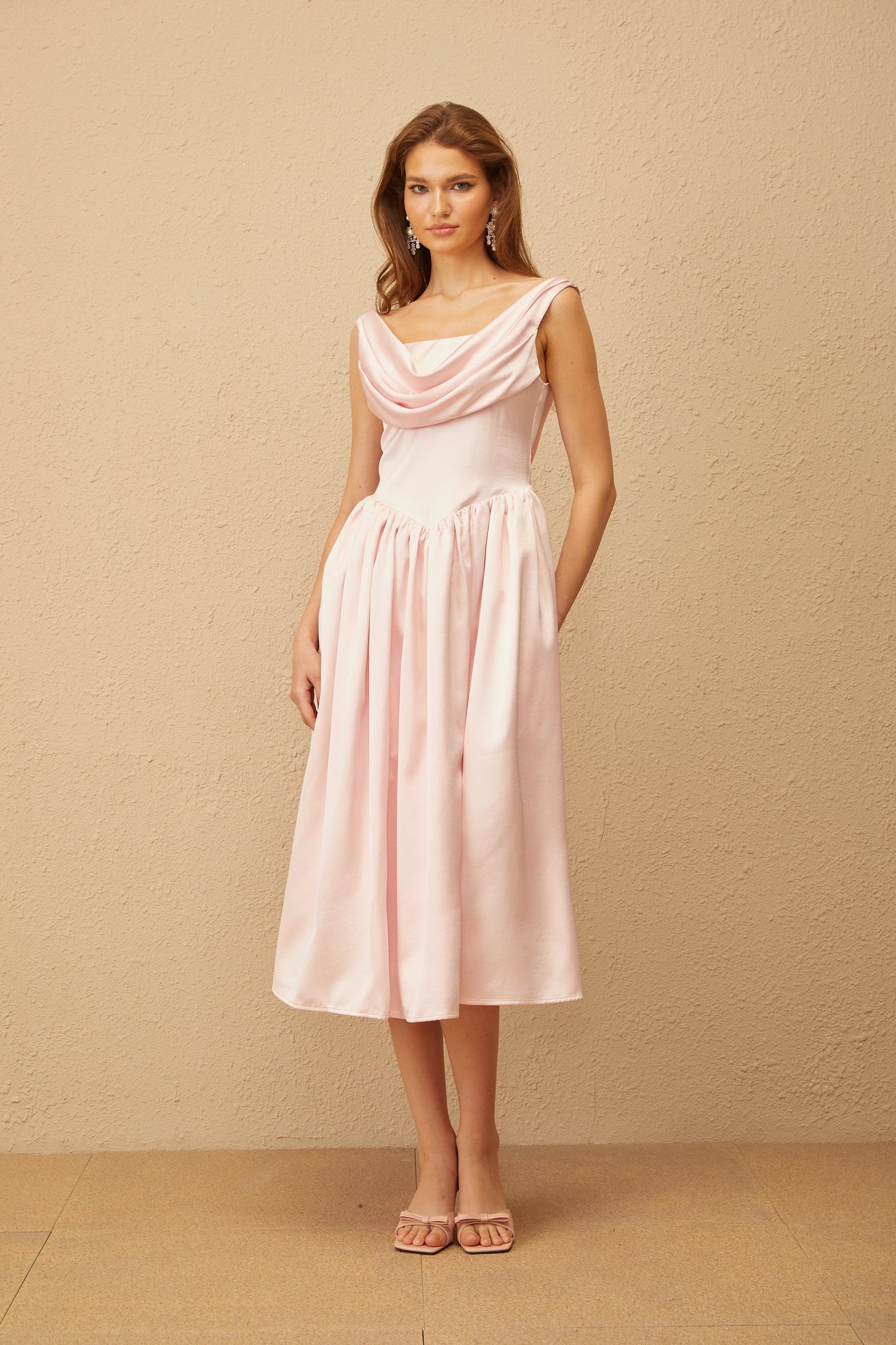 Althéa Pink Cowl Neck Voluminous Midi Dress