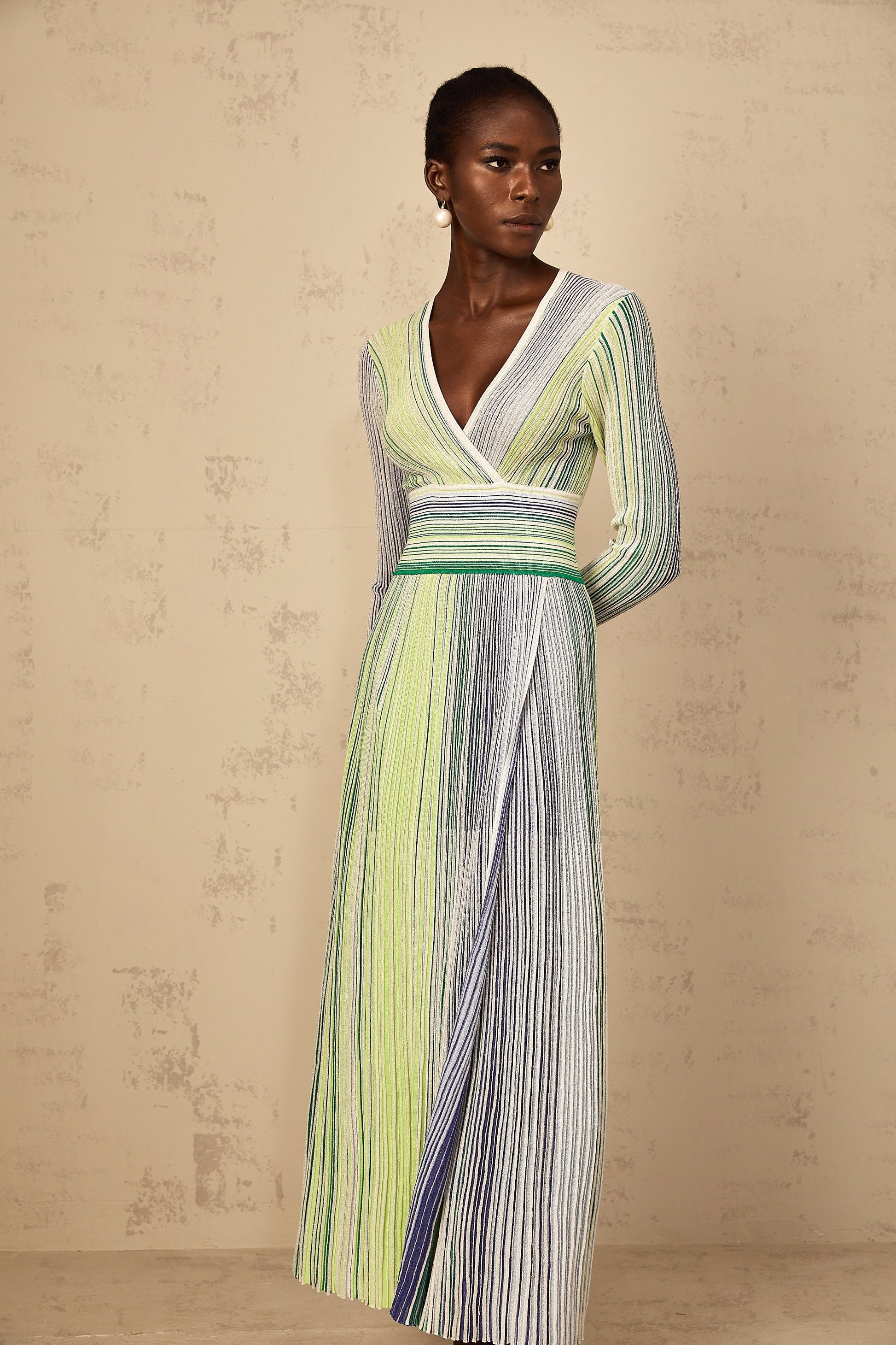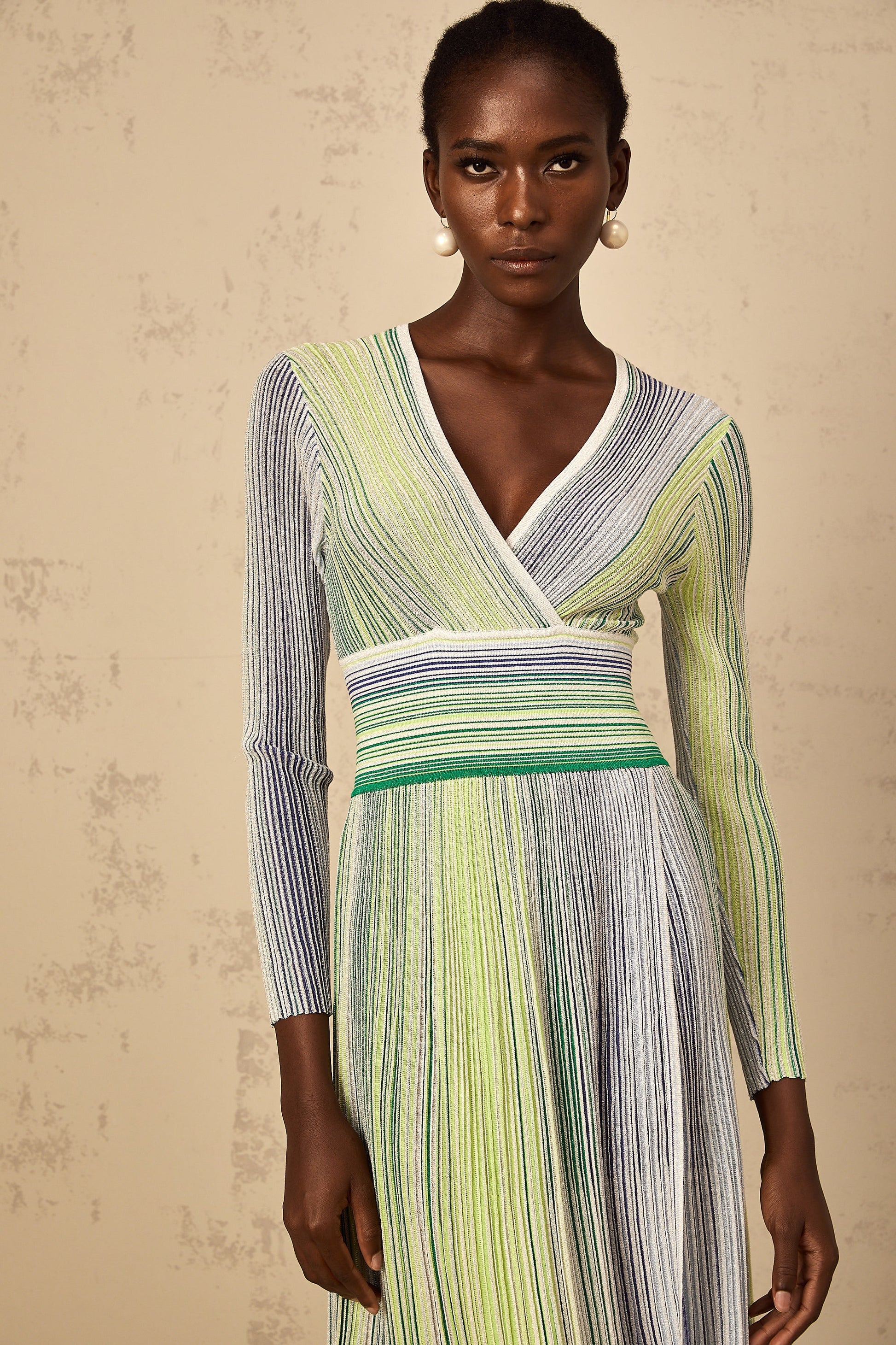 Amaryllis Green Long Sleeve Sequin Striped Knit Maxi Dress