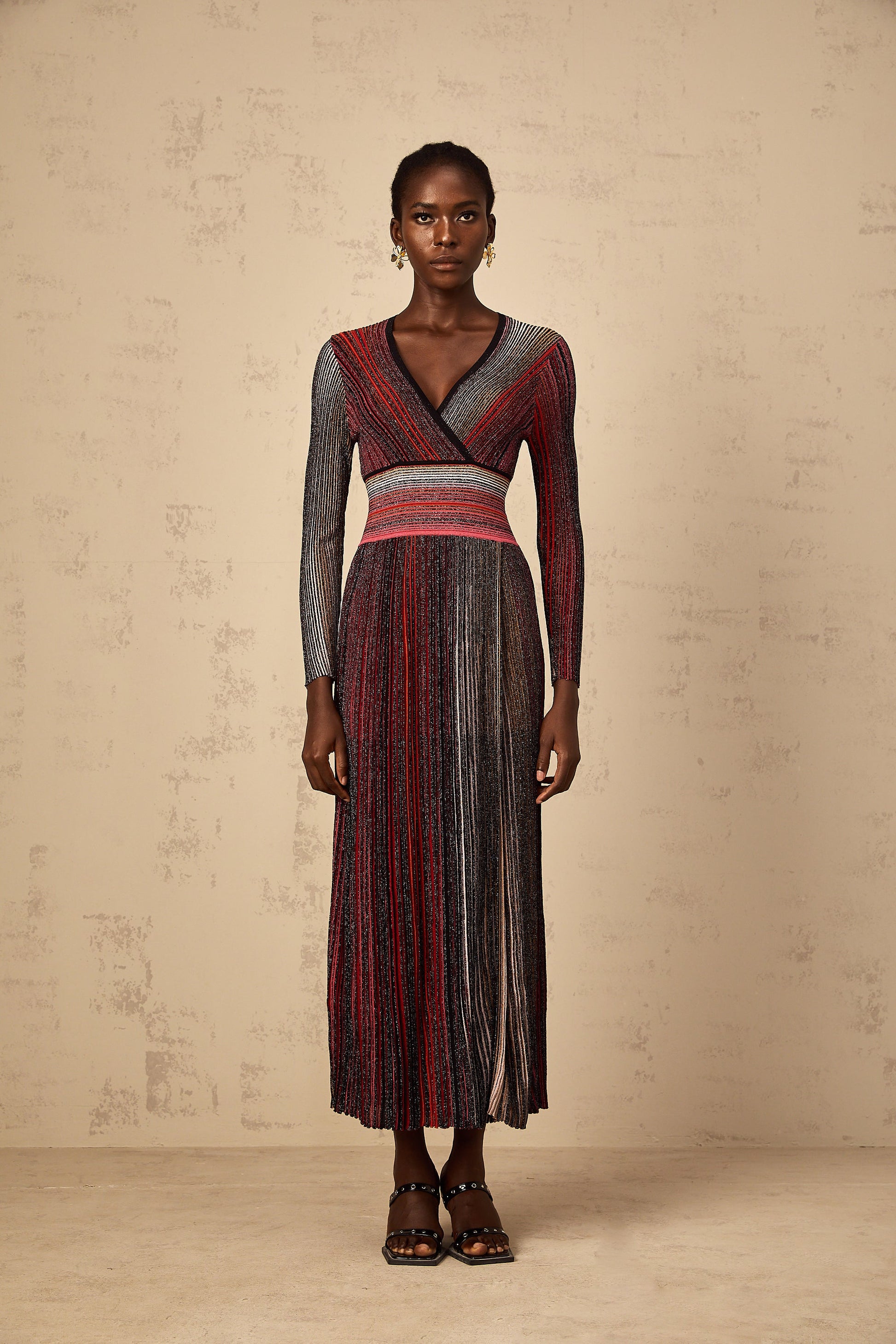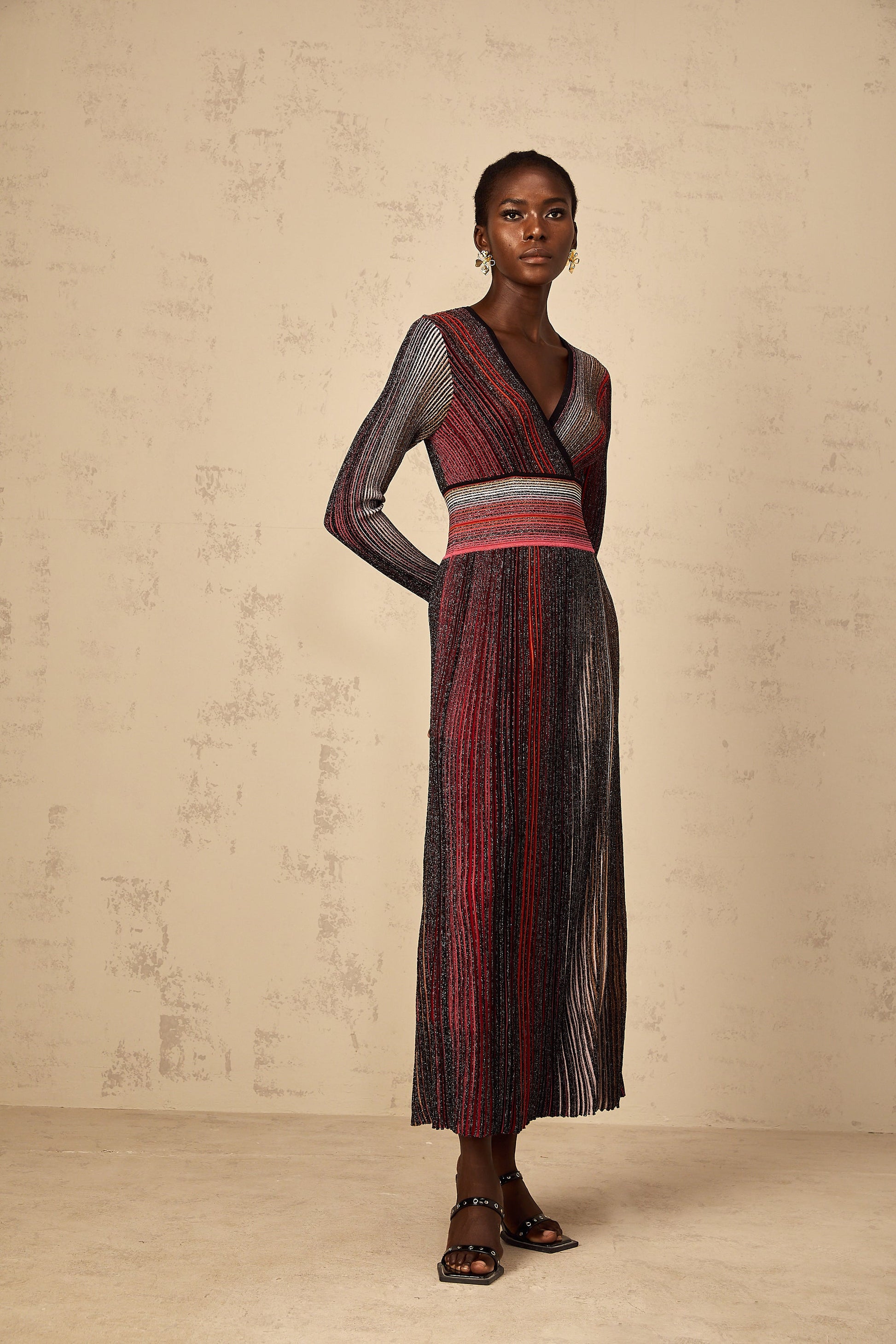 Amaryllis Red Long Sleeve Sequin Striped Knit Maxi Dress