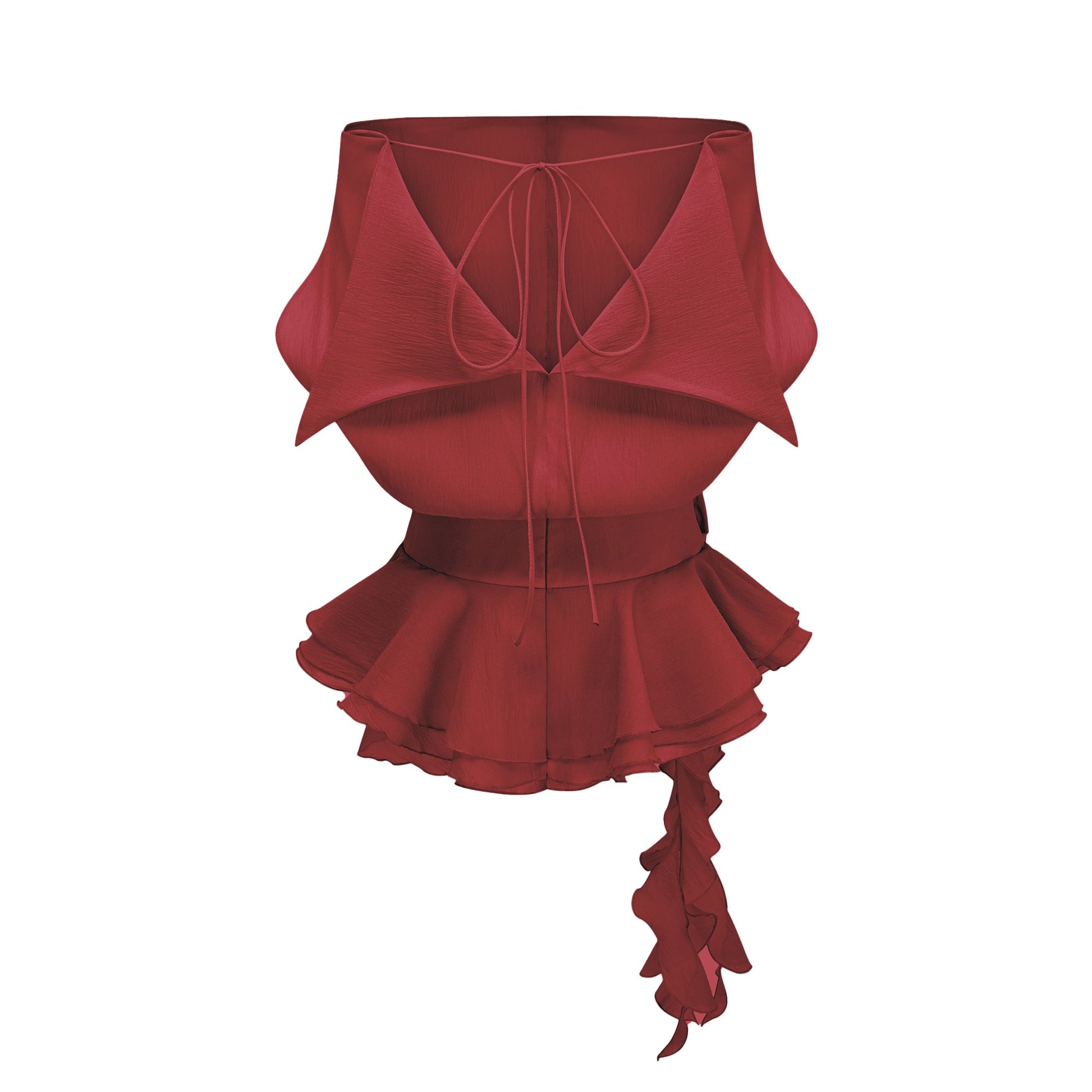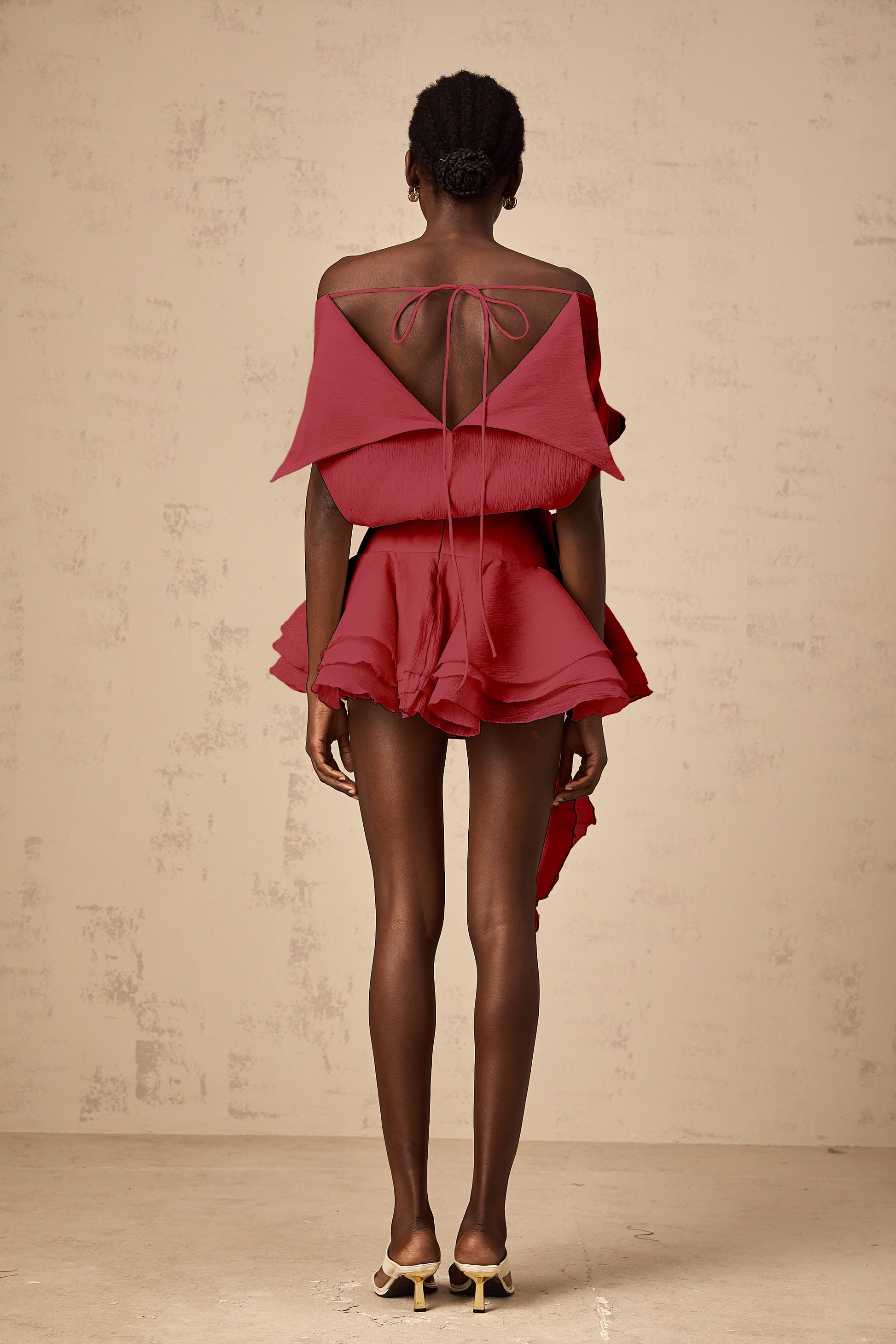 Amélie Red Floral Appliqué Flounced Mini Dress