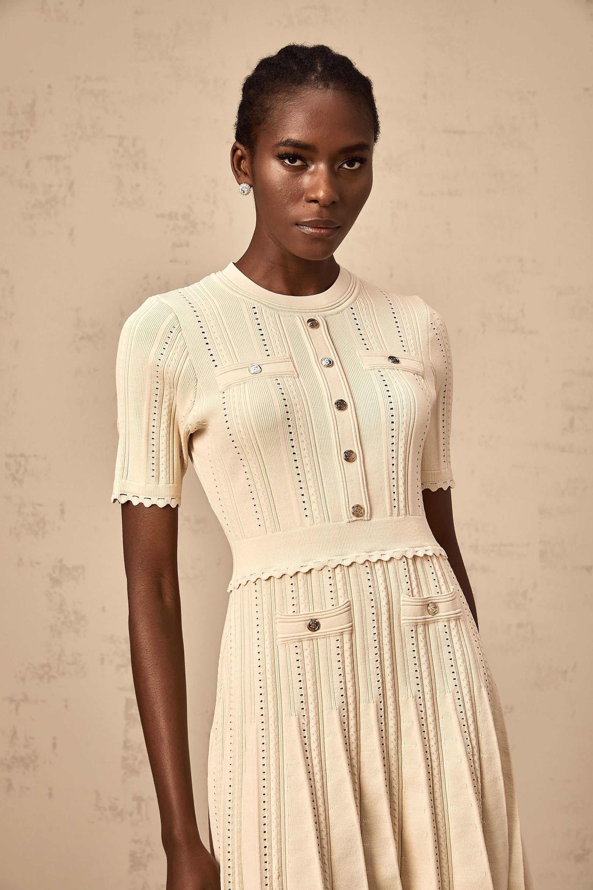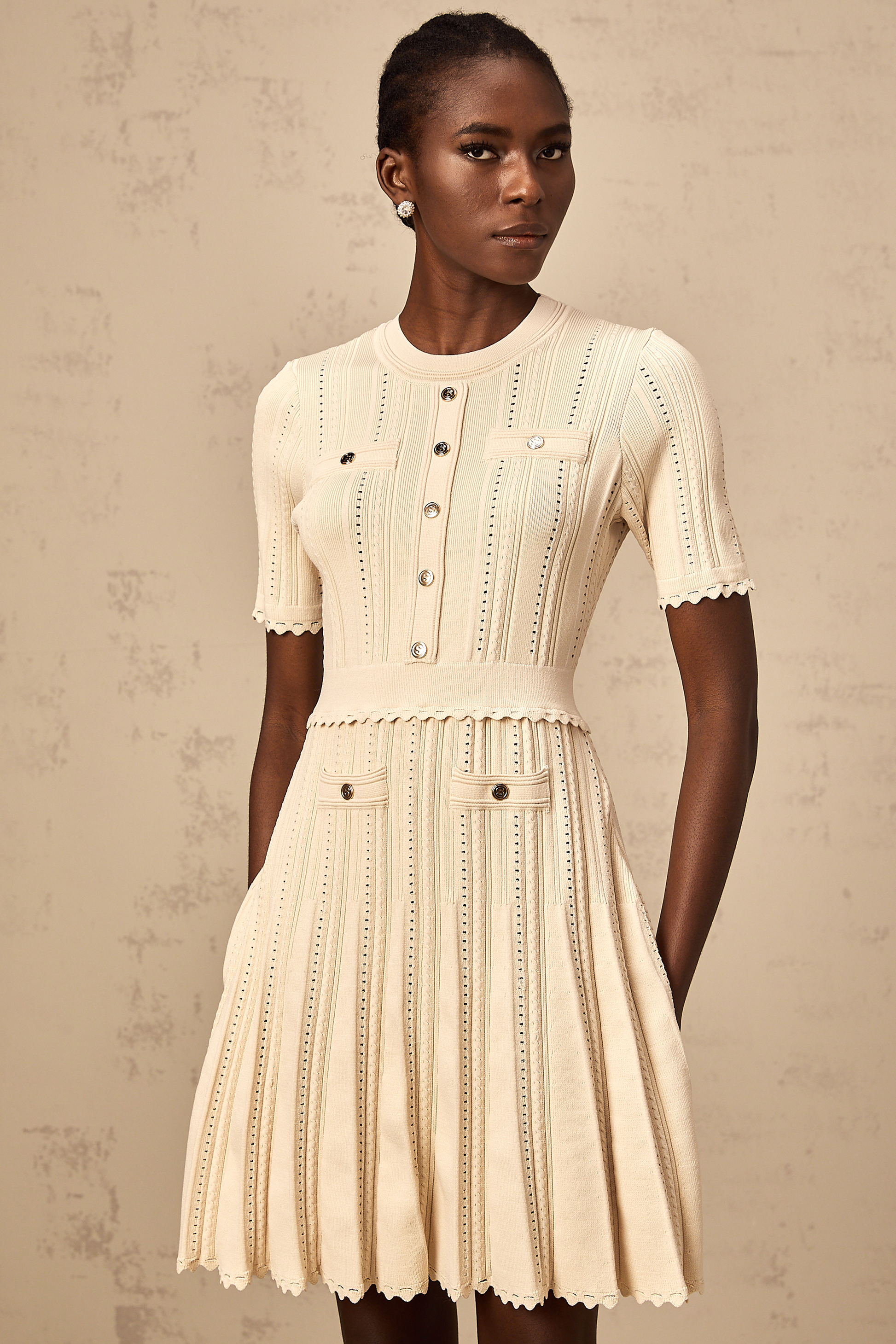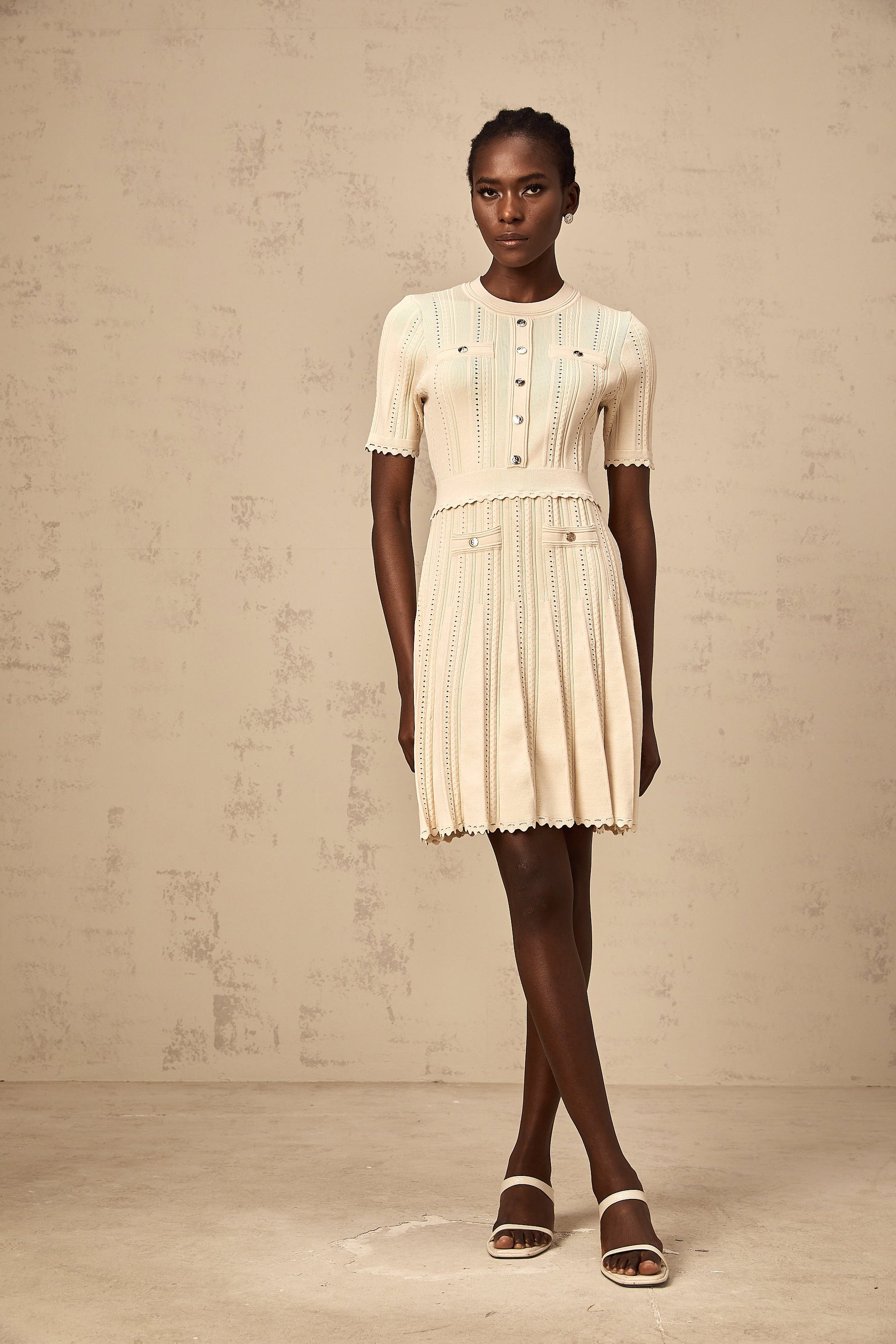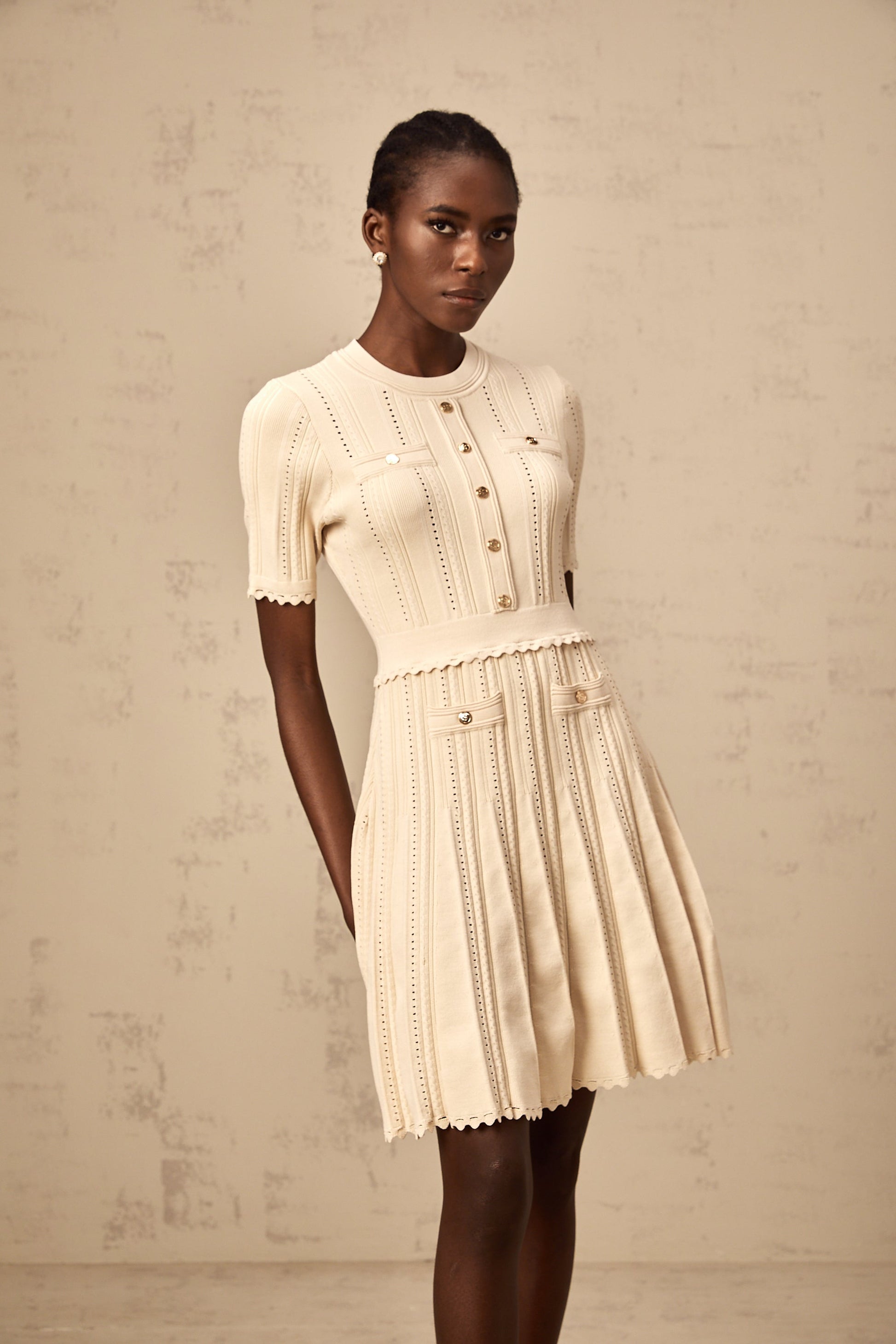 Amélie neutrals pointelle-trim pleated knit mini dress