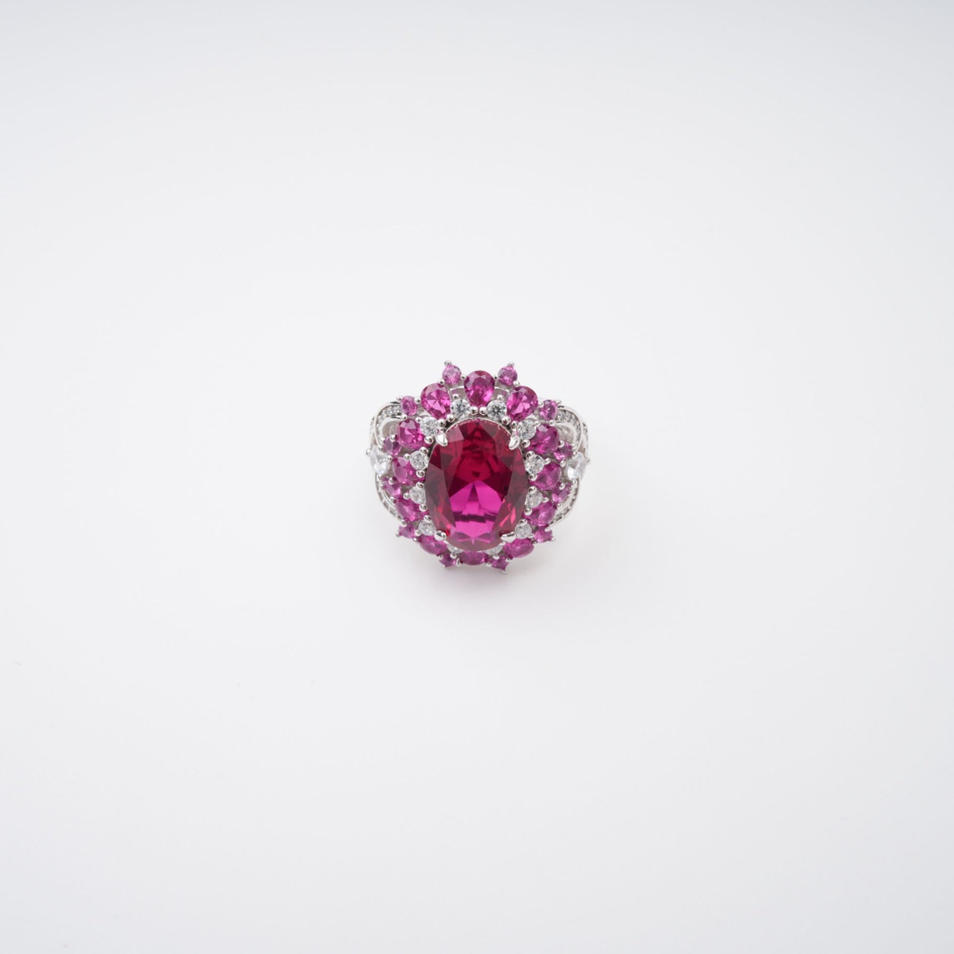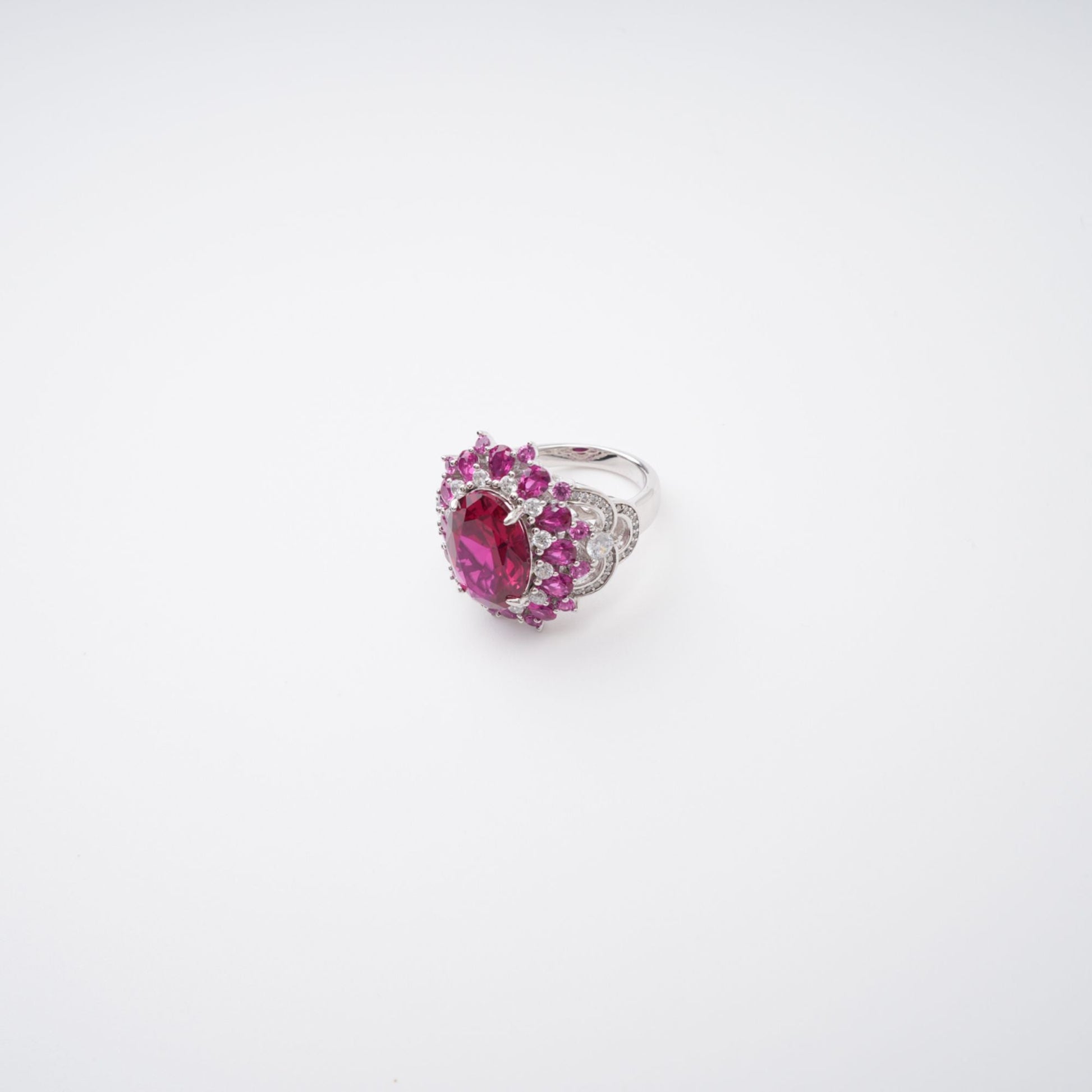 Amélie Red Oval Cut Gemstone Sterling Silver Ring