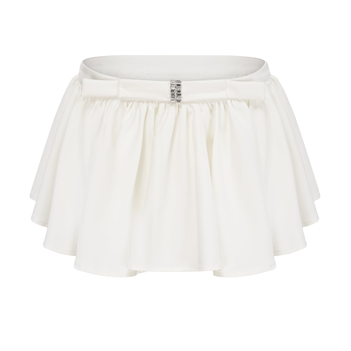 Andrea asymmetrical tulle blouse & skirt matching set in White