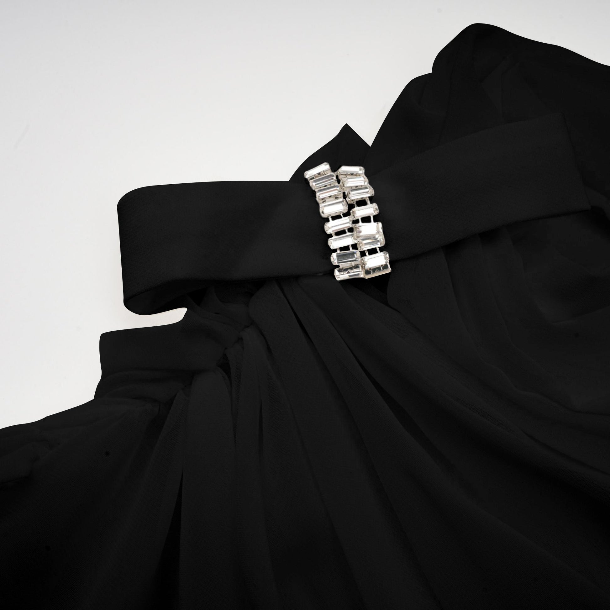 Andrea asymmetrical tulle blouse & skirt matching set in Black