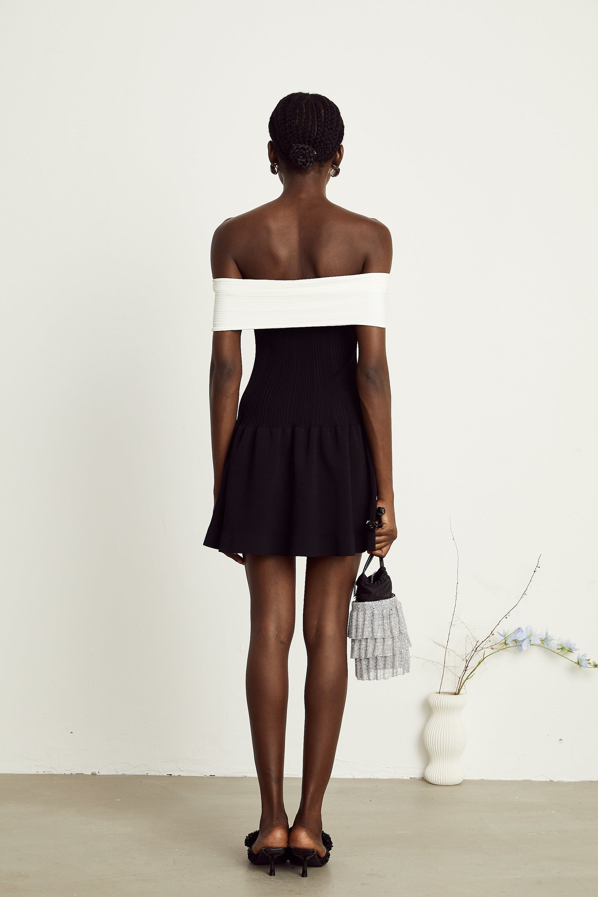 Angèle black off-shoulder knitted mini dress