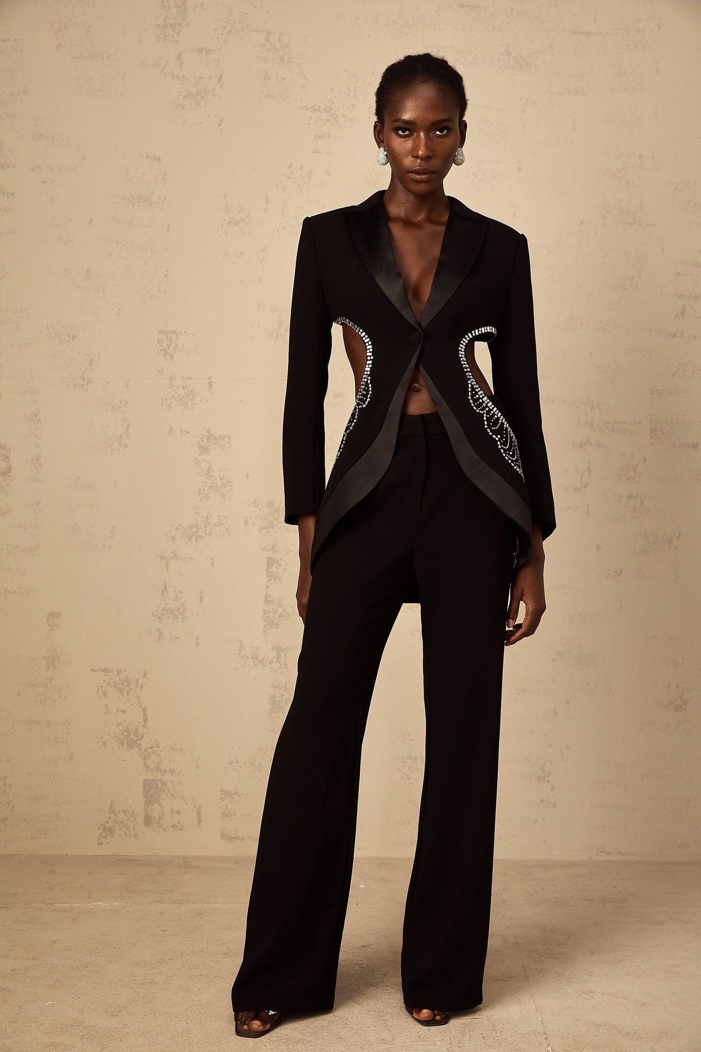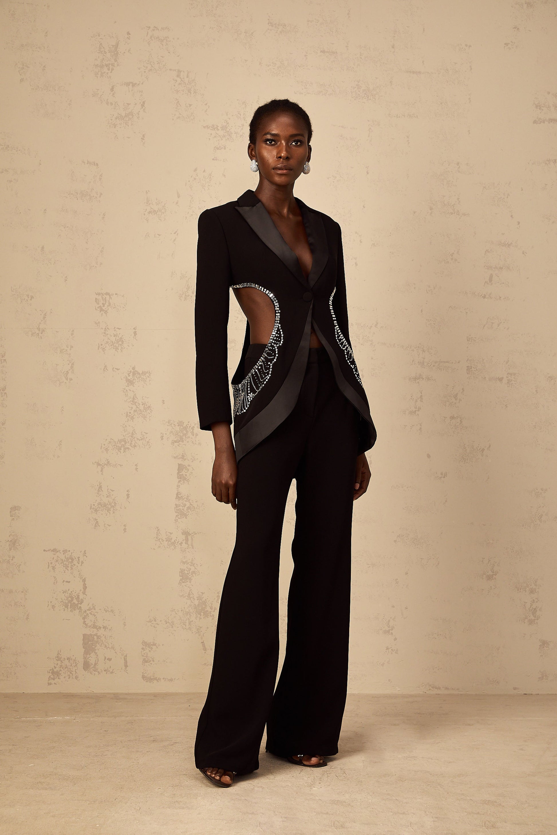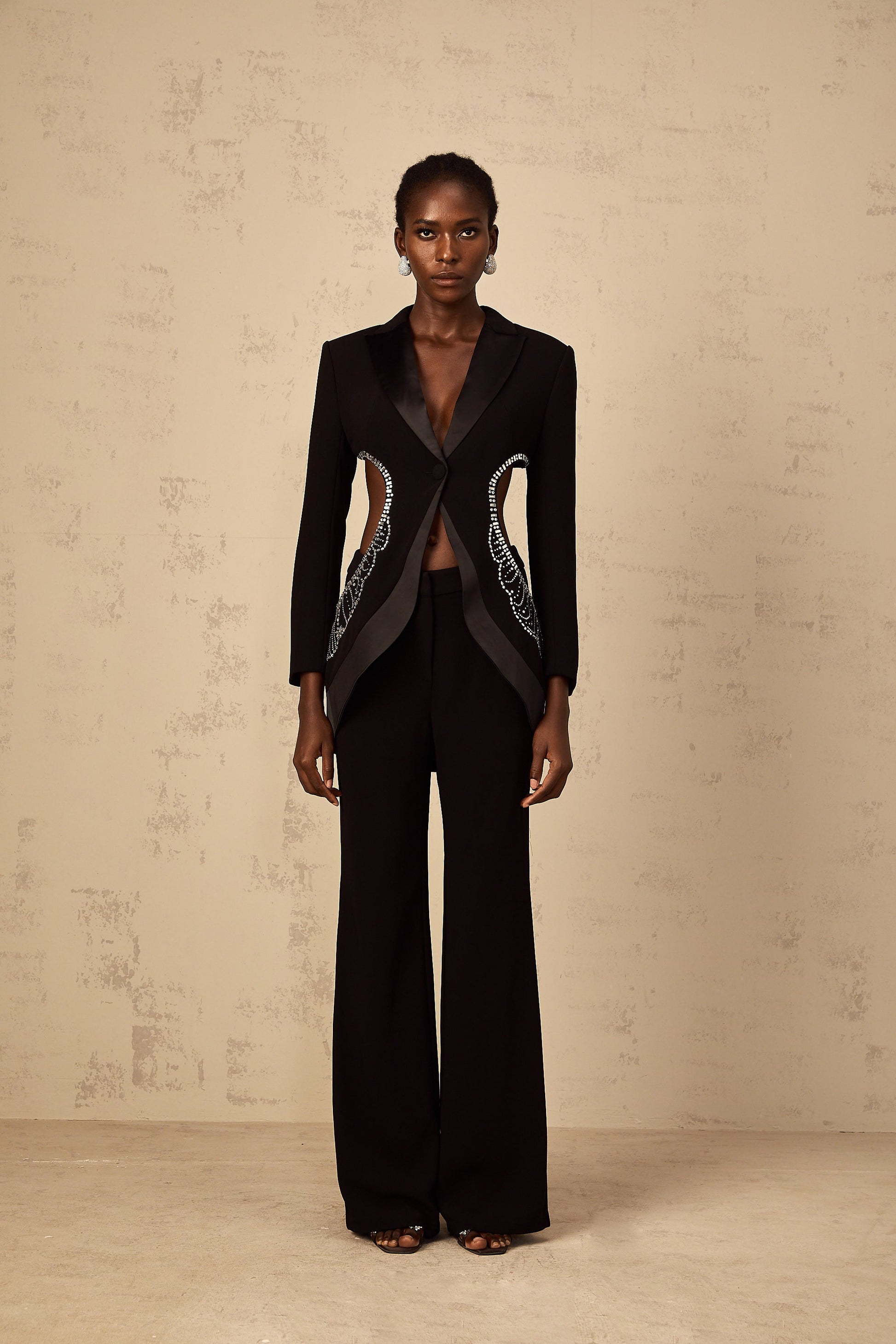 Annabelle Black Cut-Out Embellished Blazer & Trousers Set