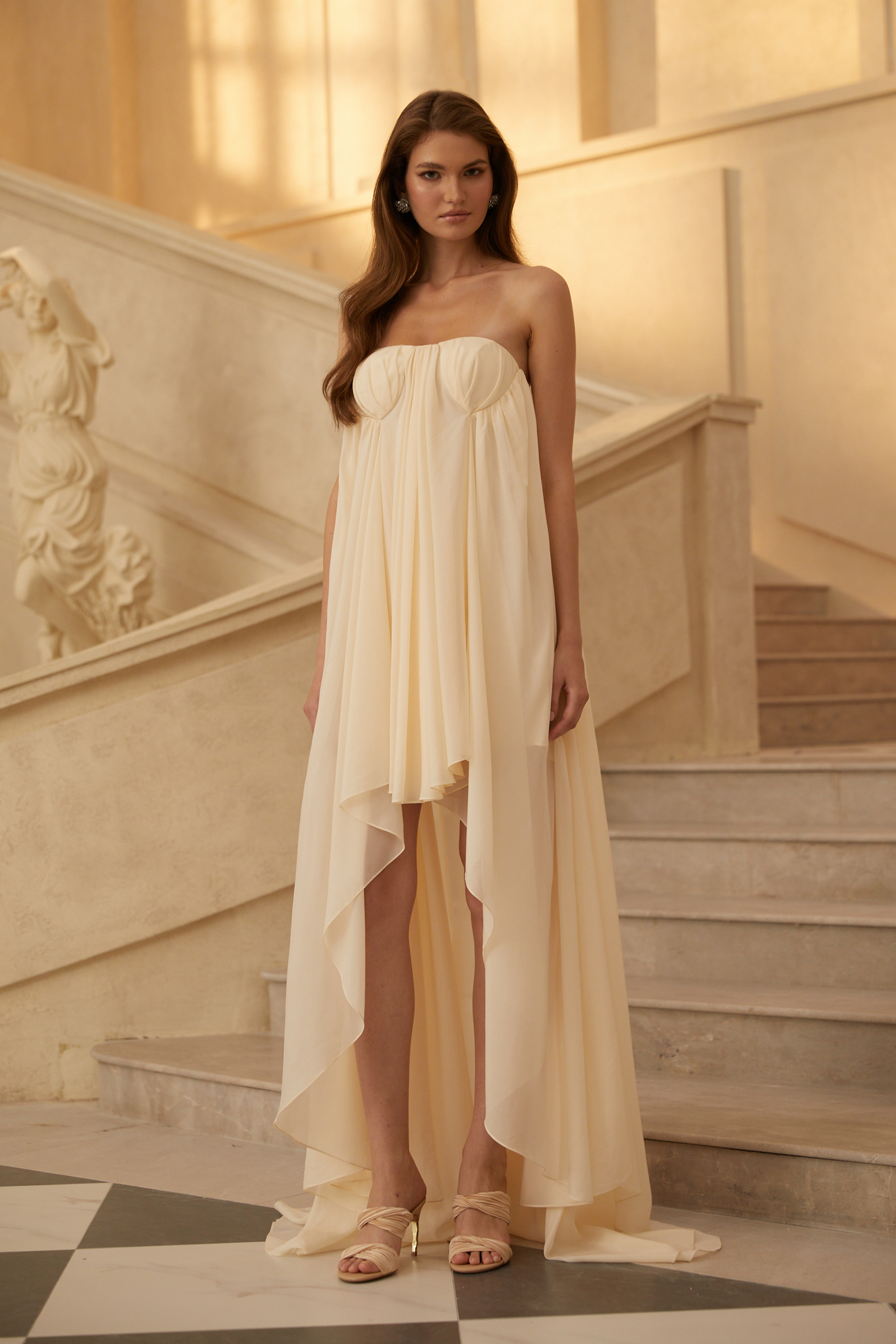 Anneli Biege Mullet Chiffon Midi Dress
