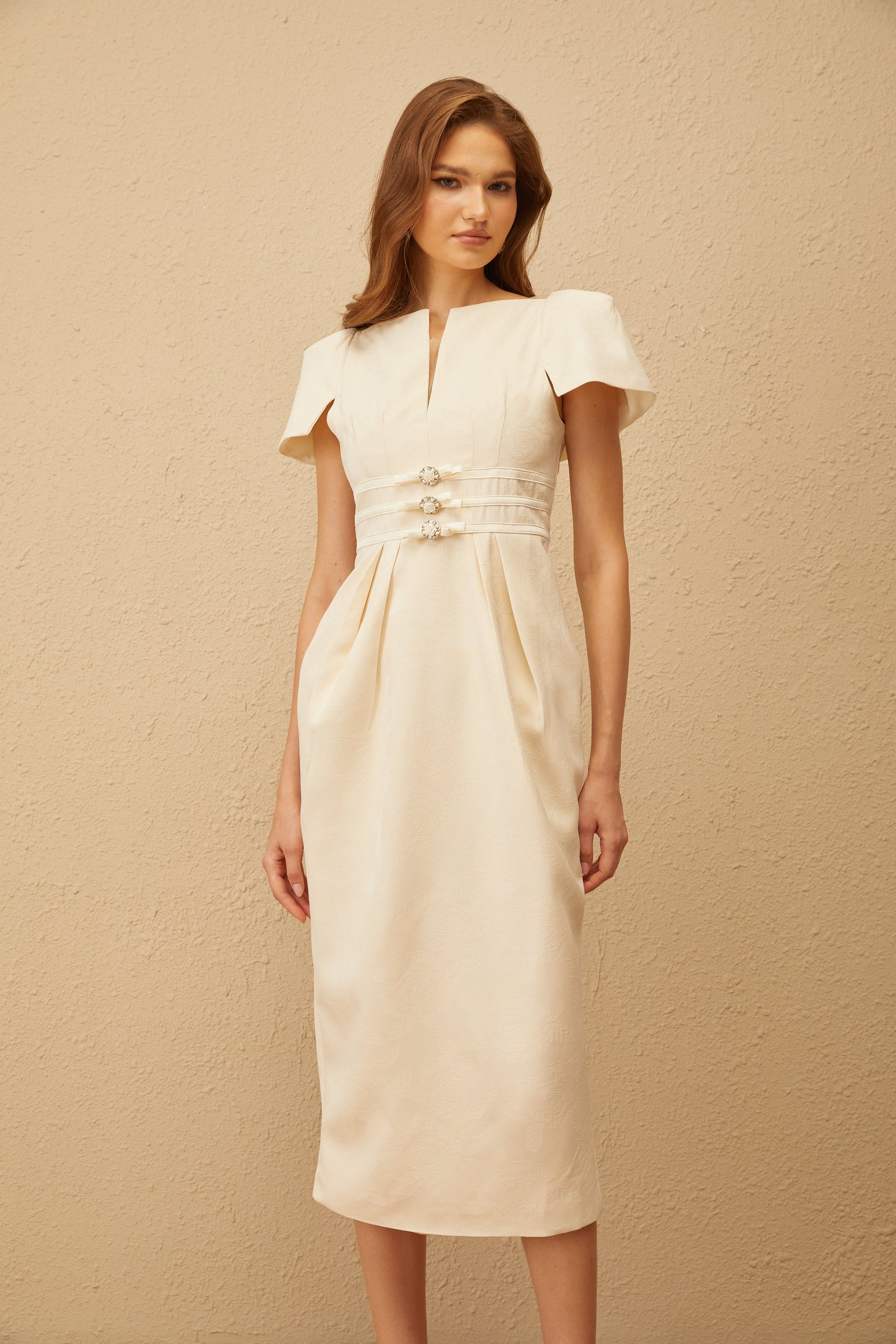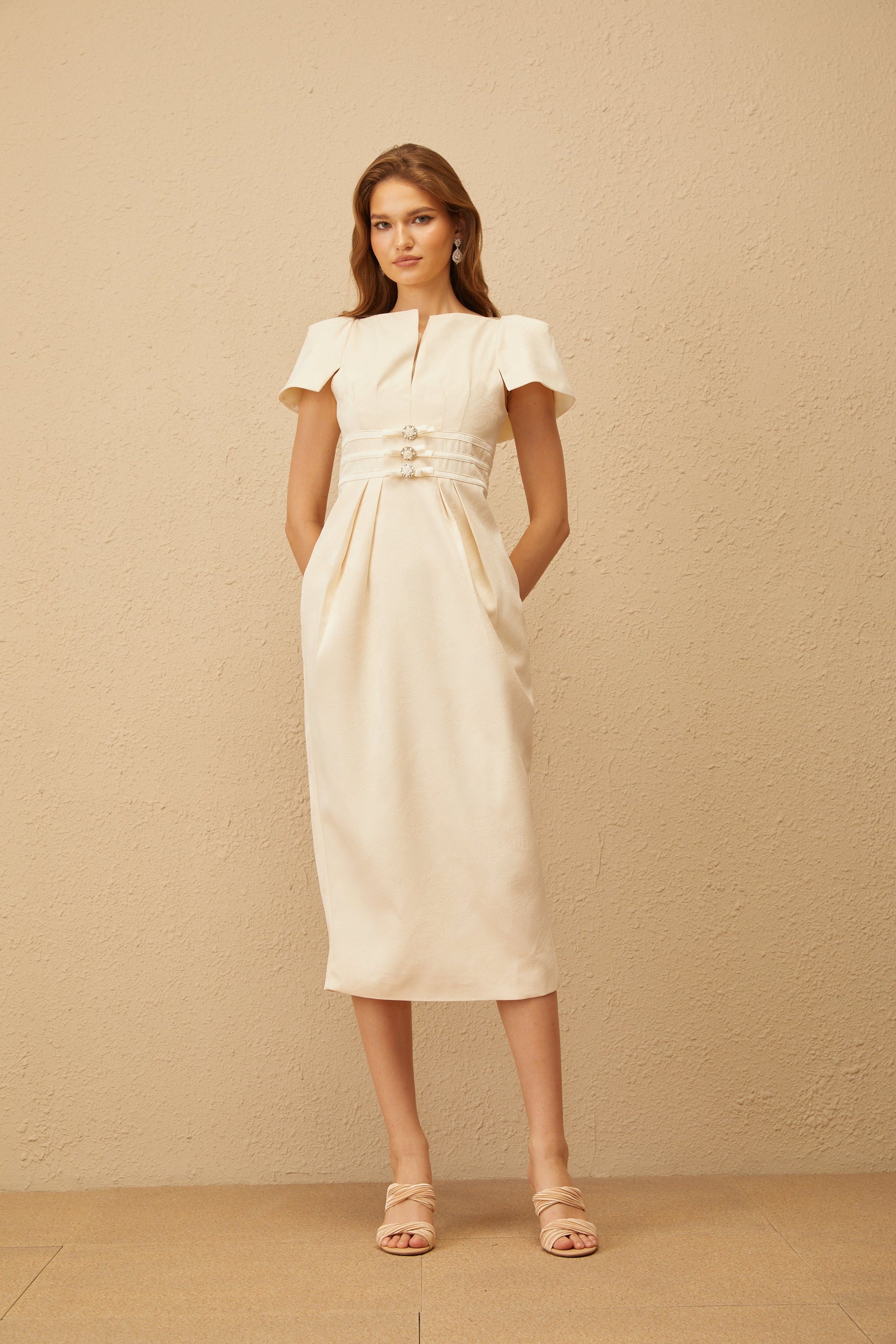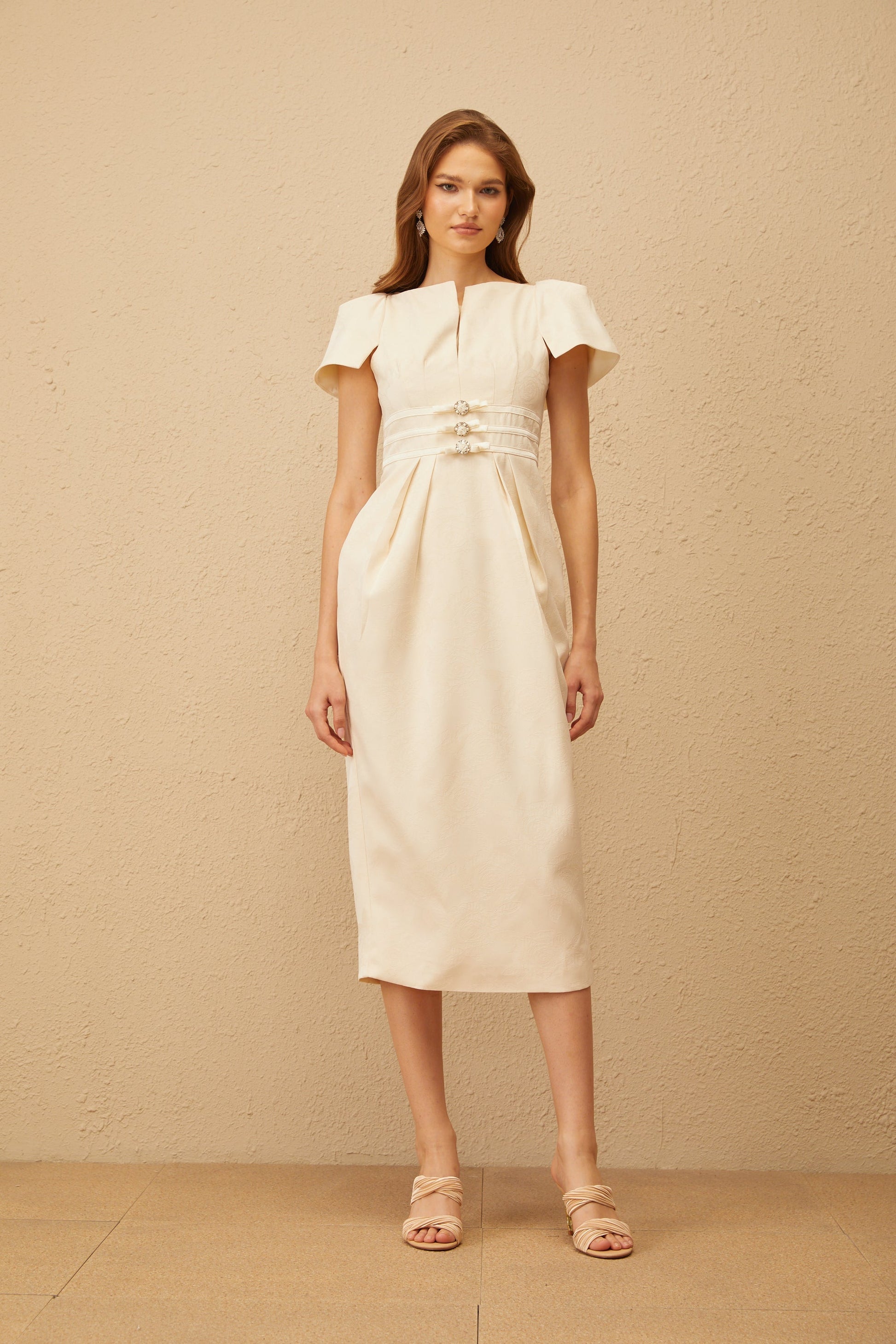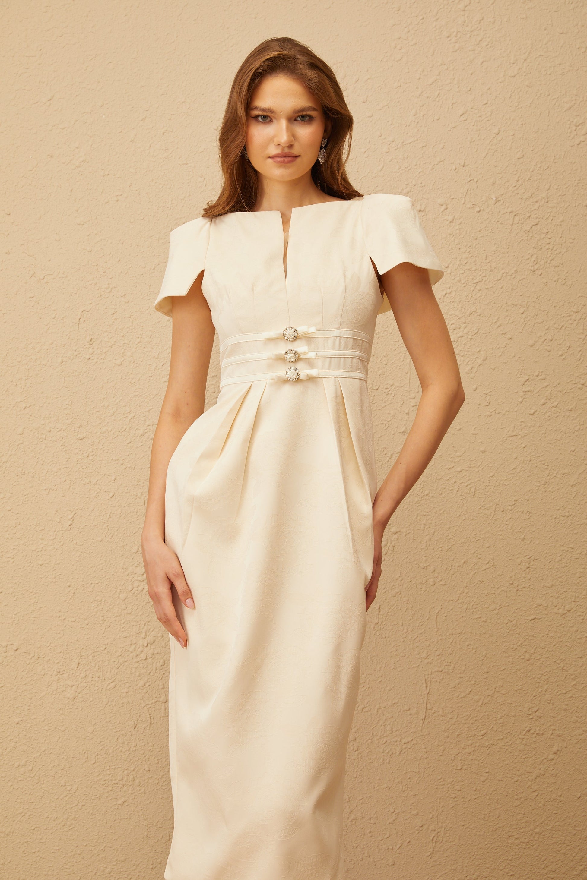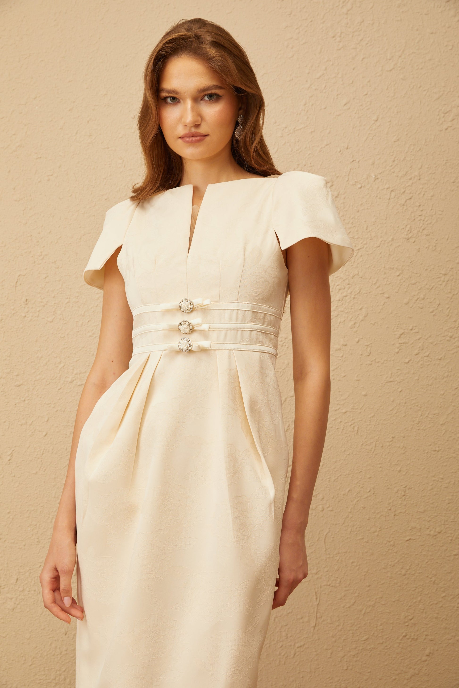 Antoinette Neutral Floral Jacquard Bowknot Midi Dress
