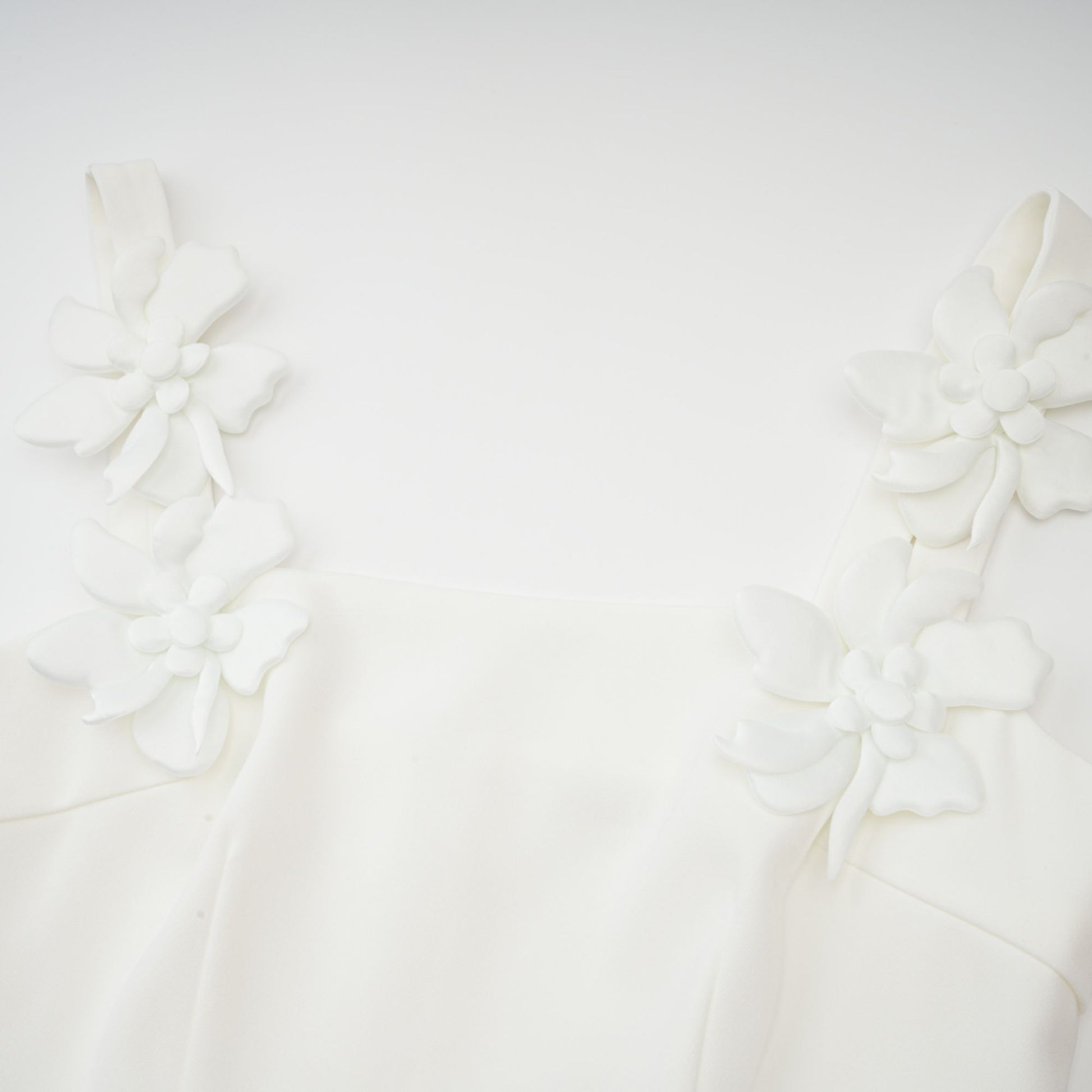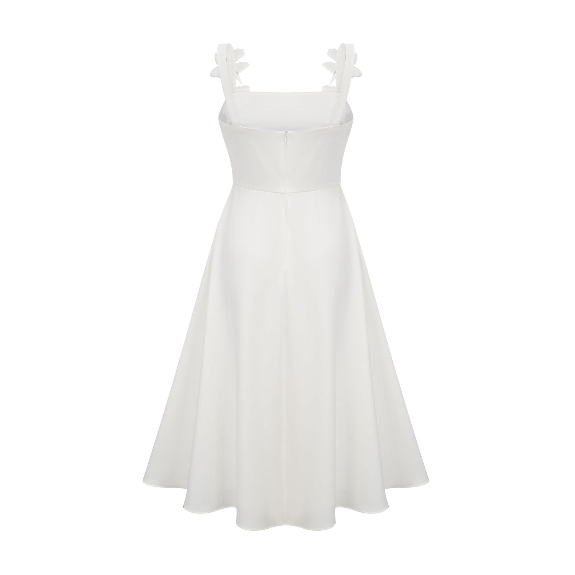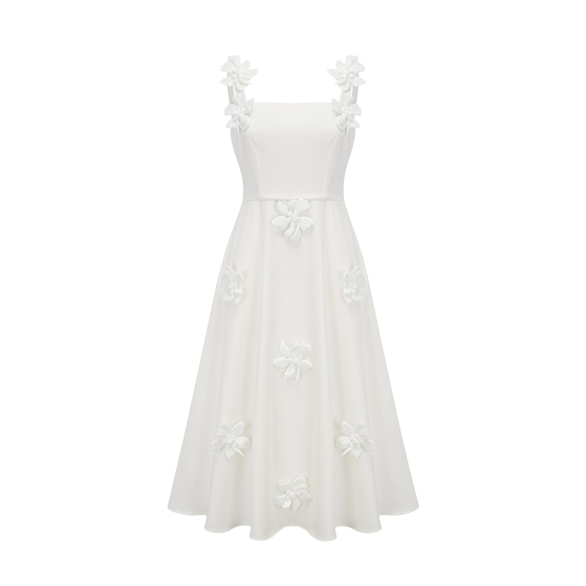 Ariane white faux-flower square-neck midi dress