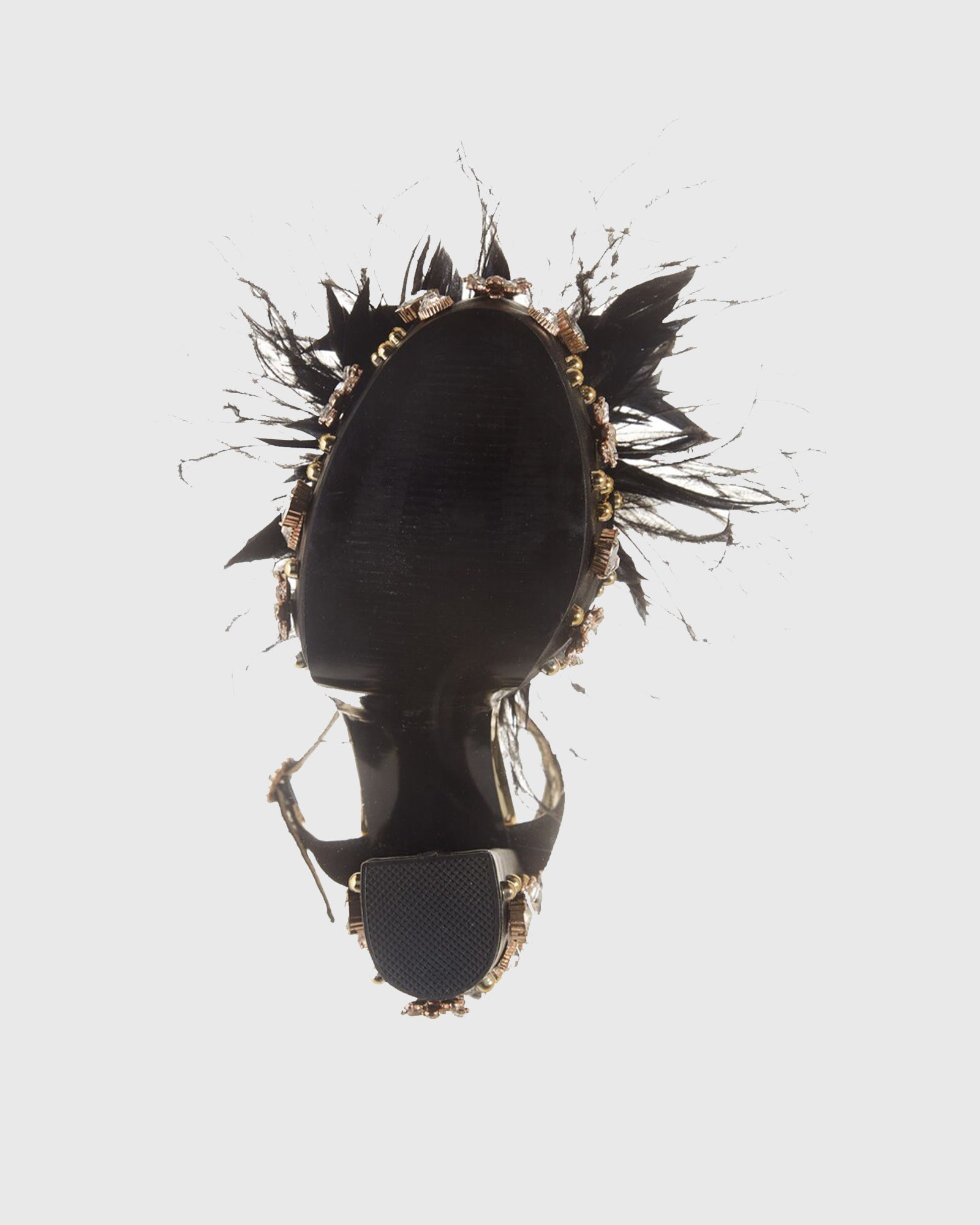 Stand out and strut your stuff in style with these Armida Feather Strap Platform Sandals! The black feather straps add a unique touch to these platform sandals, while the comfortable platform design provides extra support and height. Elevate any outfit with these bold and fashionable sandals.