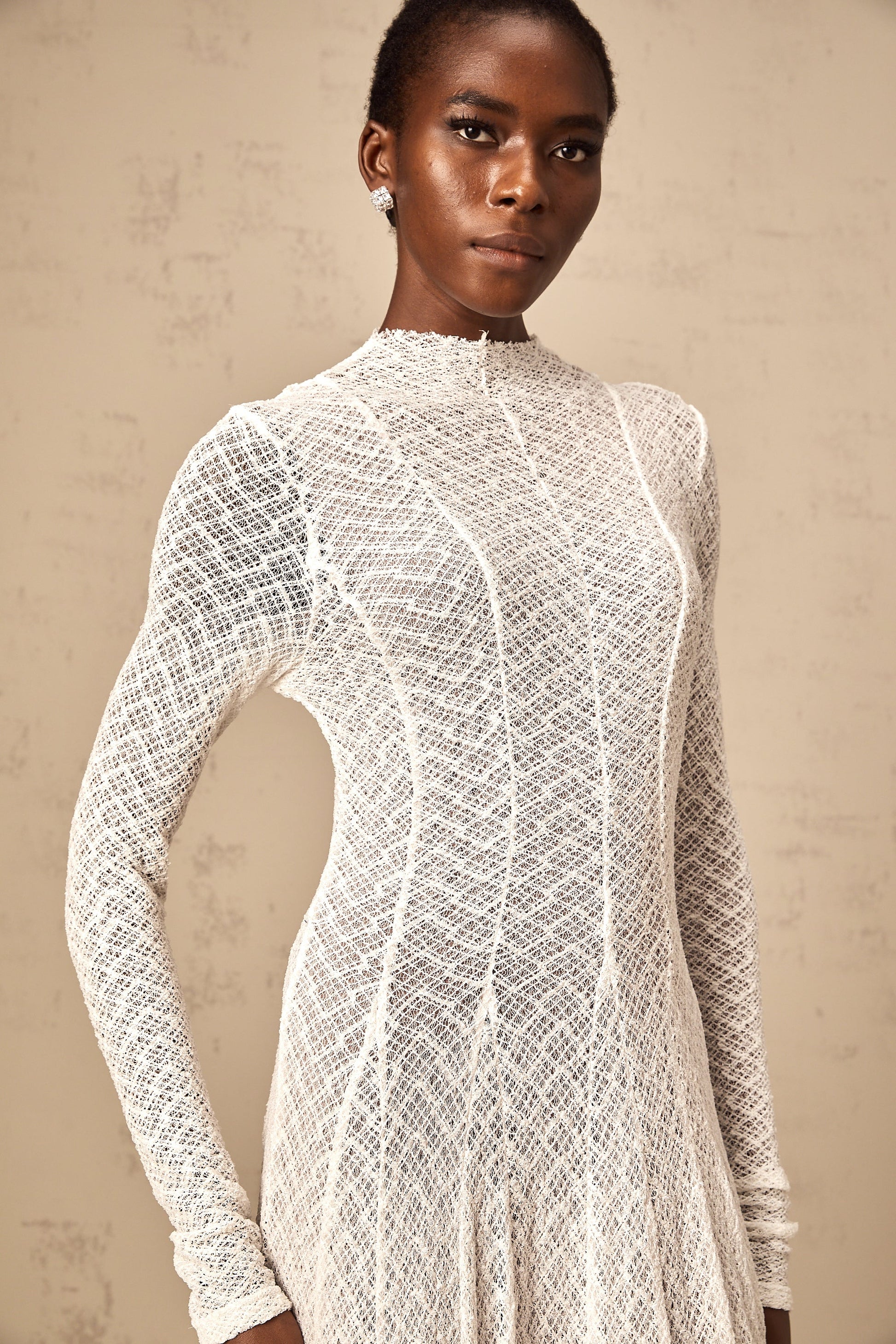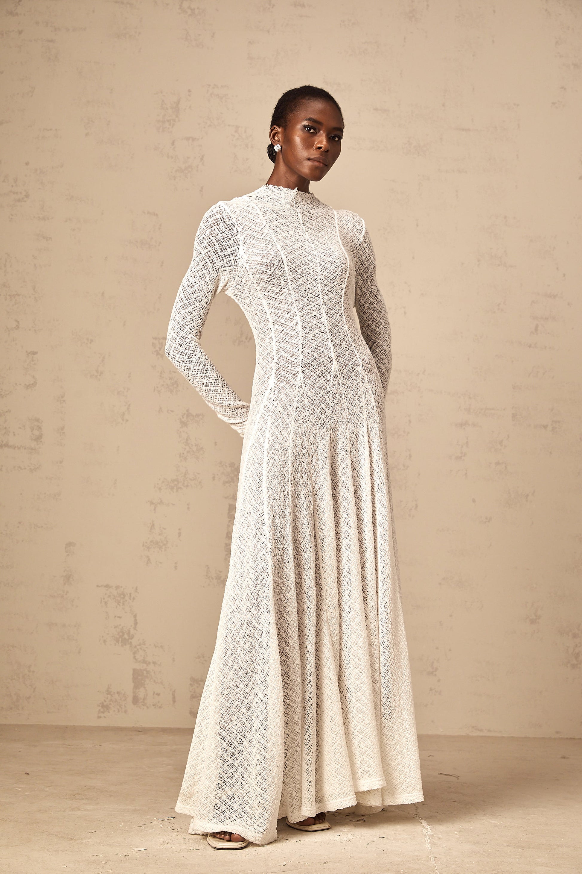Athena wavy-pattern lace maxi dress in White