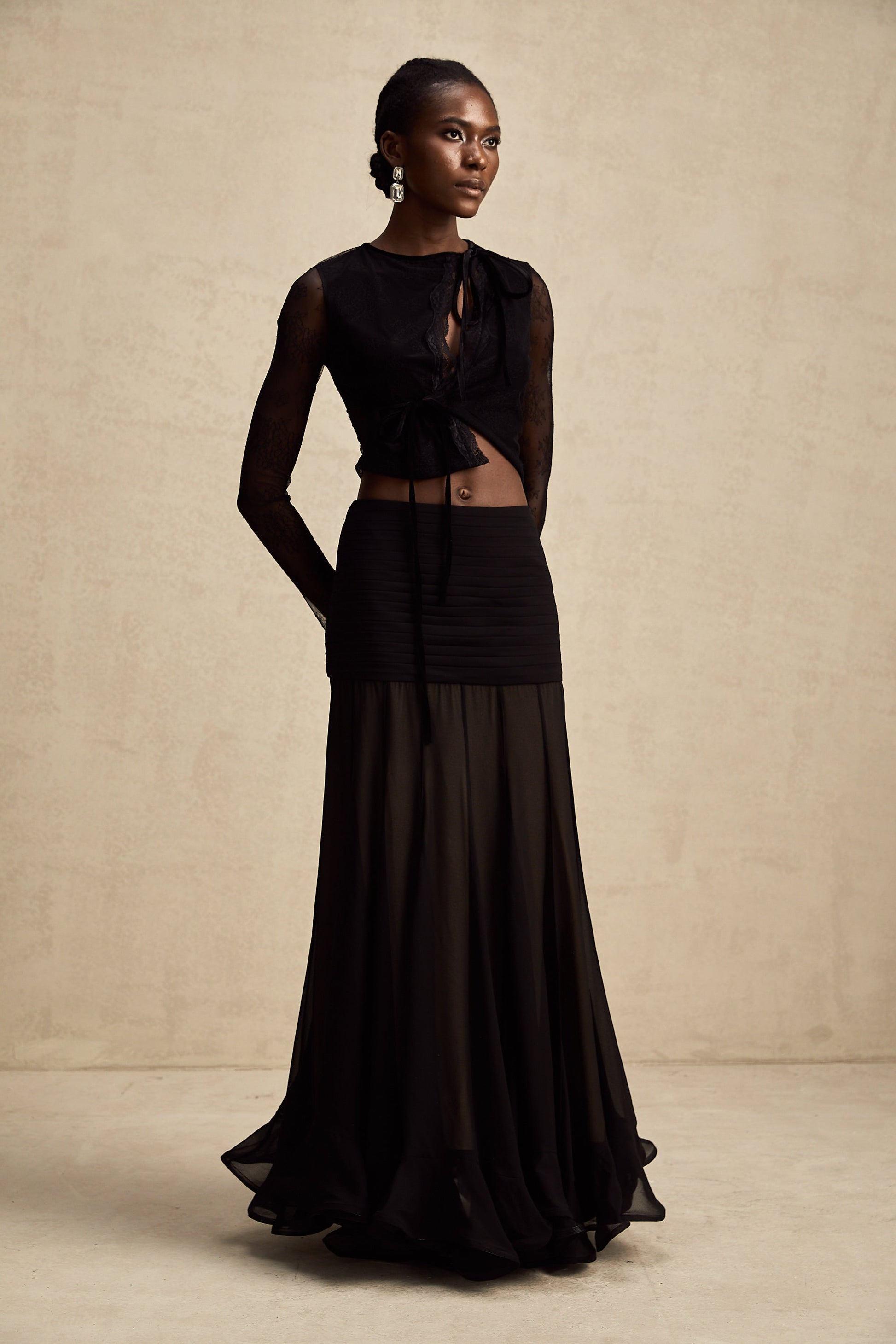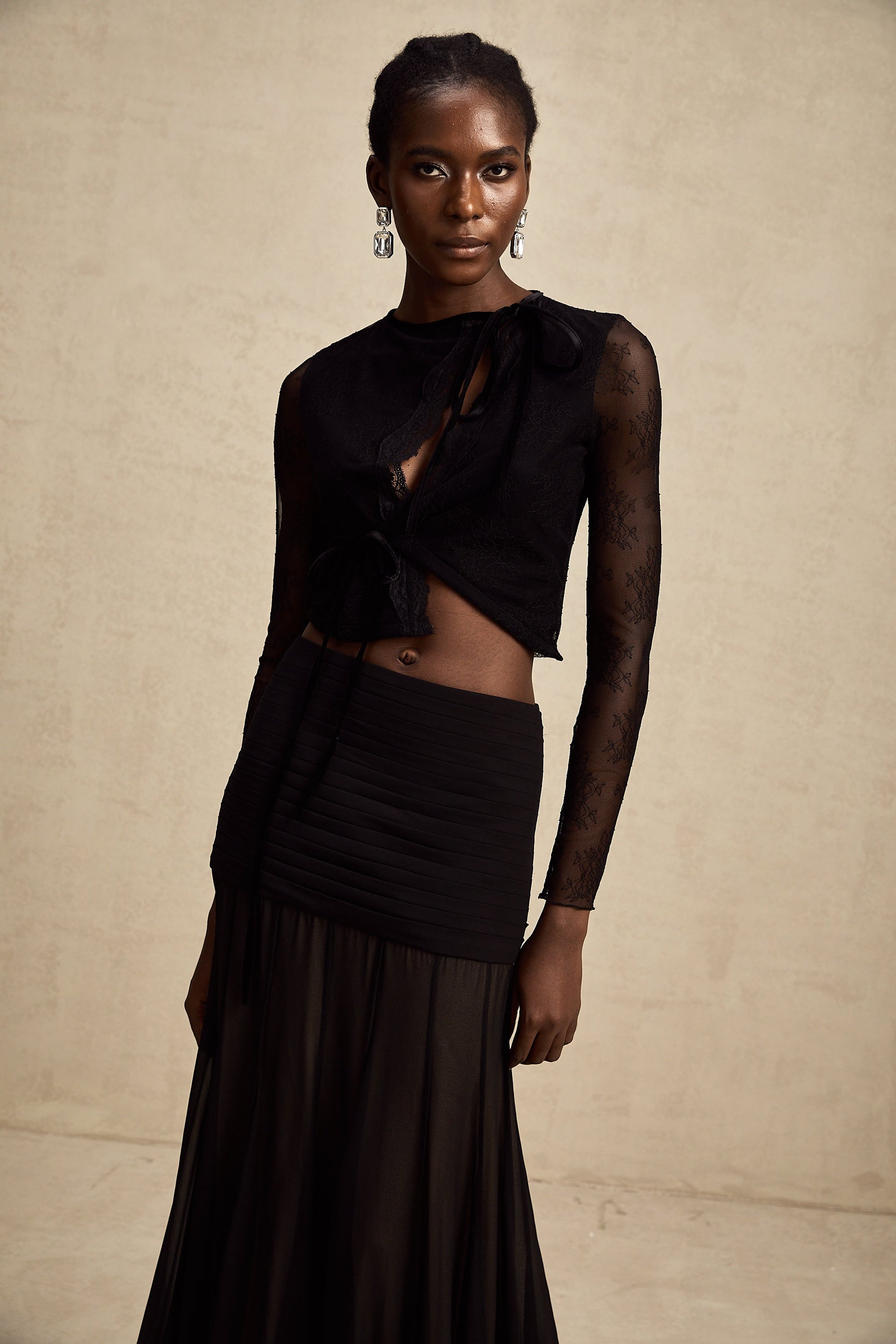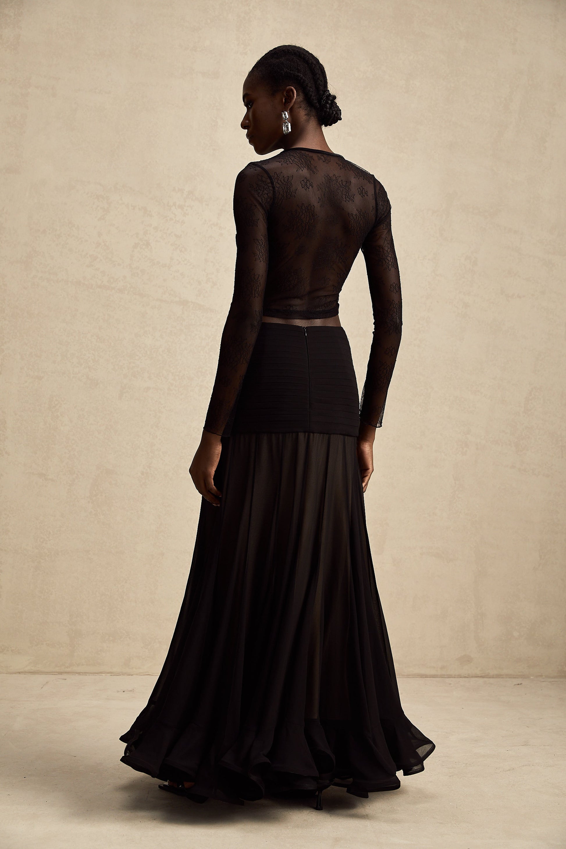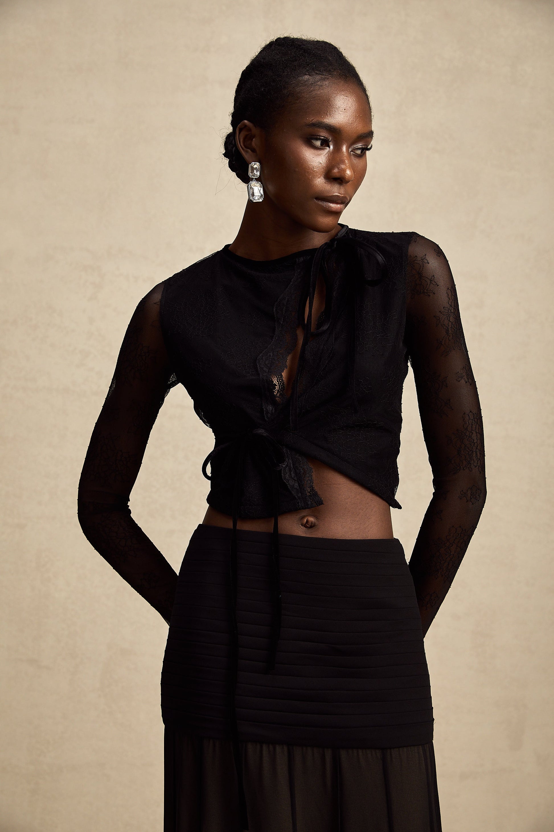 Aurélie black see-through lace-trim cropped top