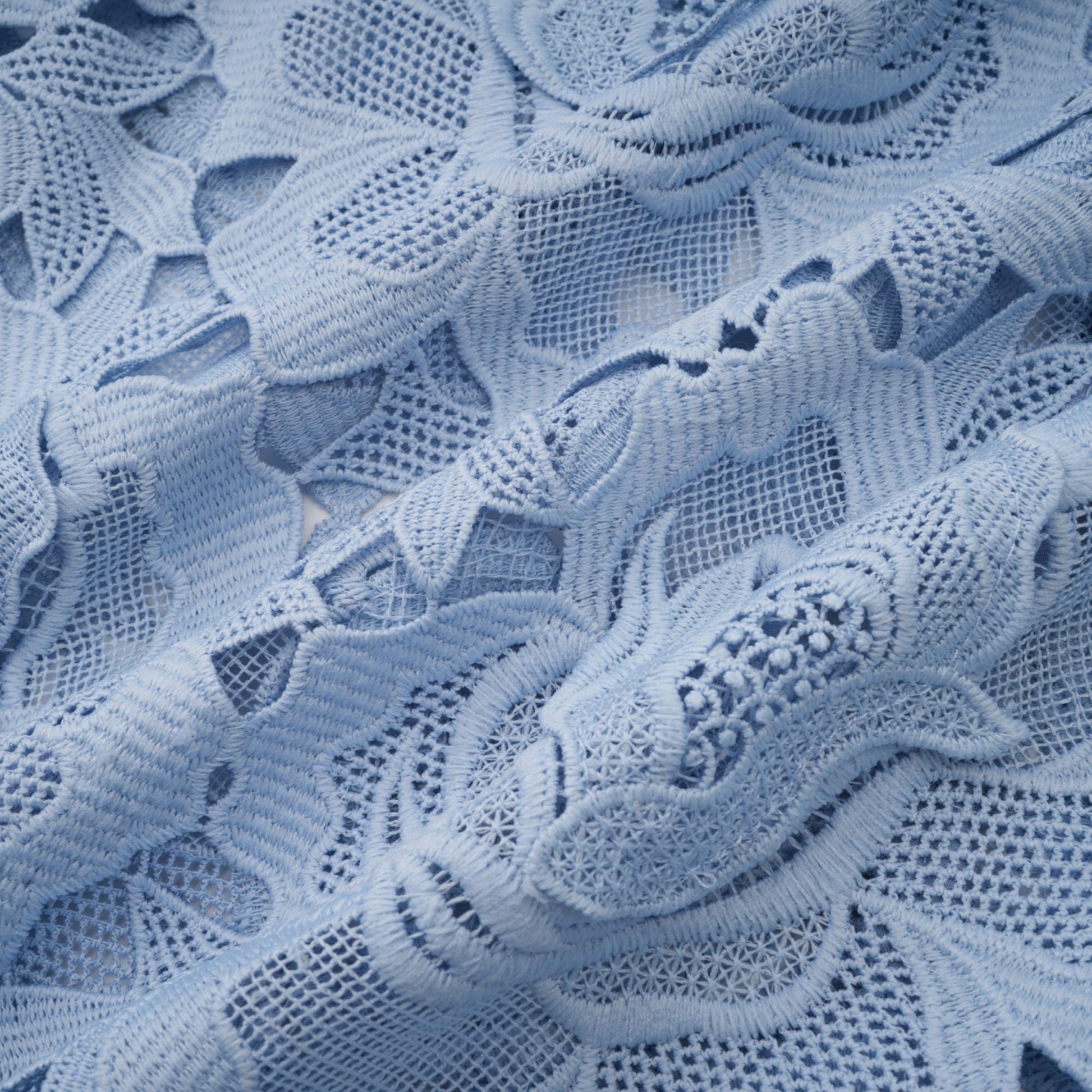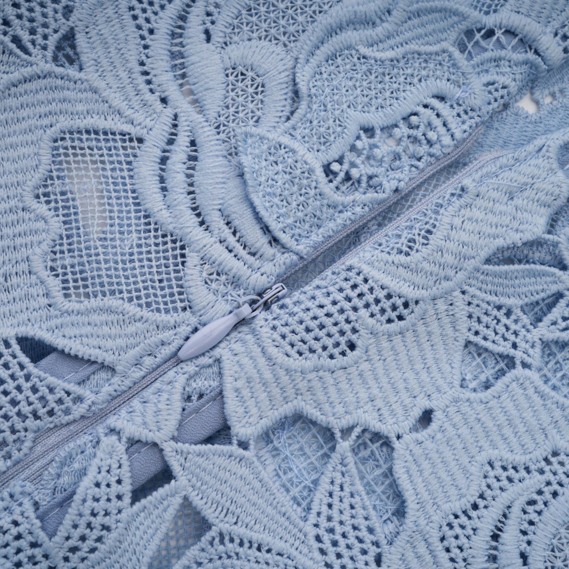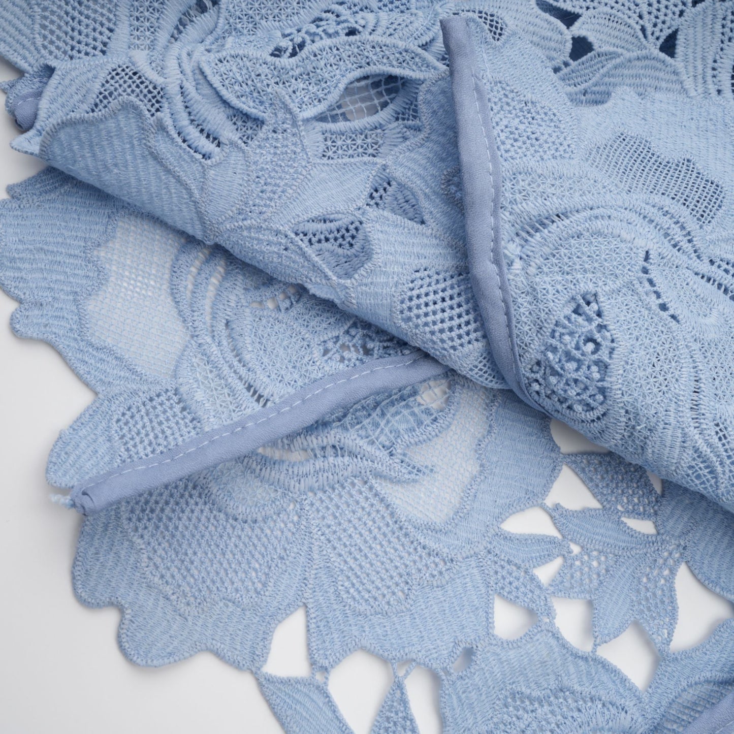 Aurore Blue Floral Appliqué Lace Midi Dress