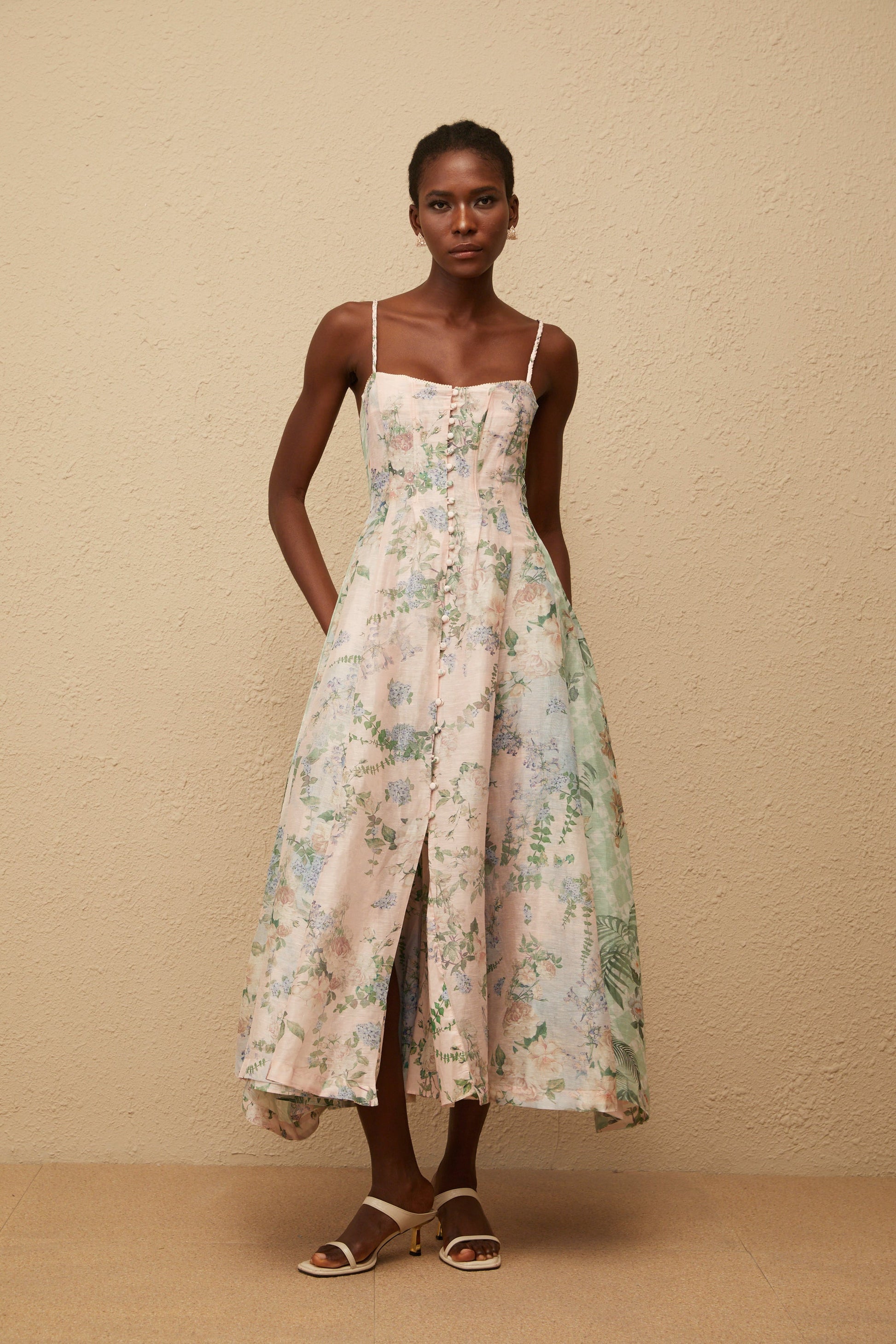 Aurore Pink Floral Print Maxi Dress