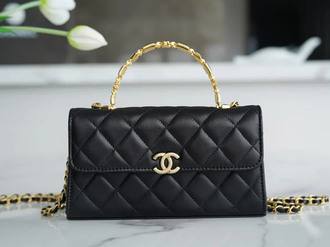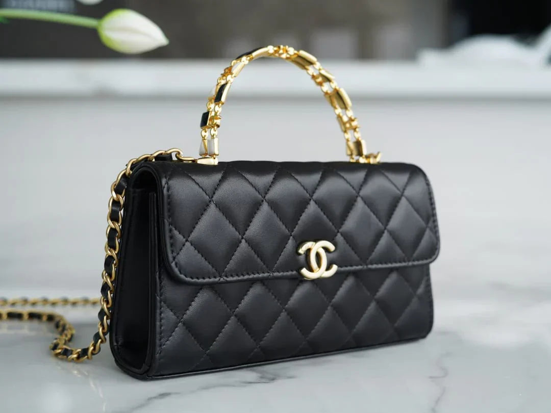 Authentic CHANEL 22B Kelly large black chain bag with enamel buckle AP2946 10×18×4.5cm