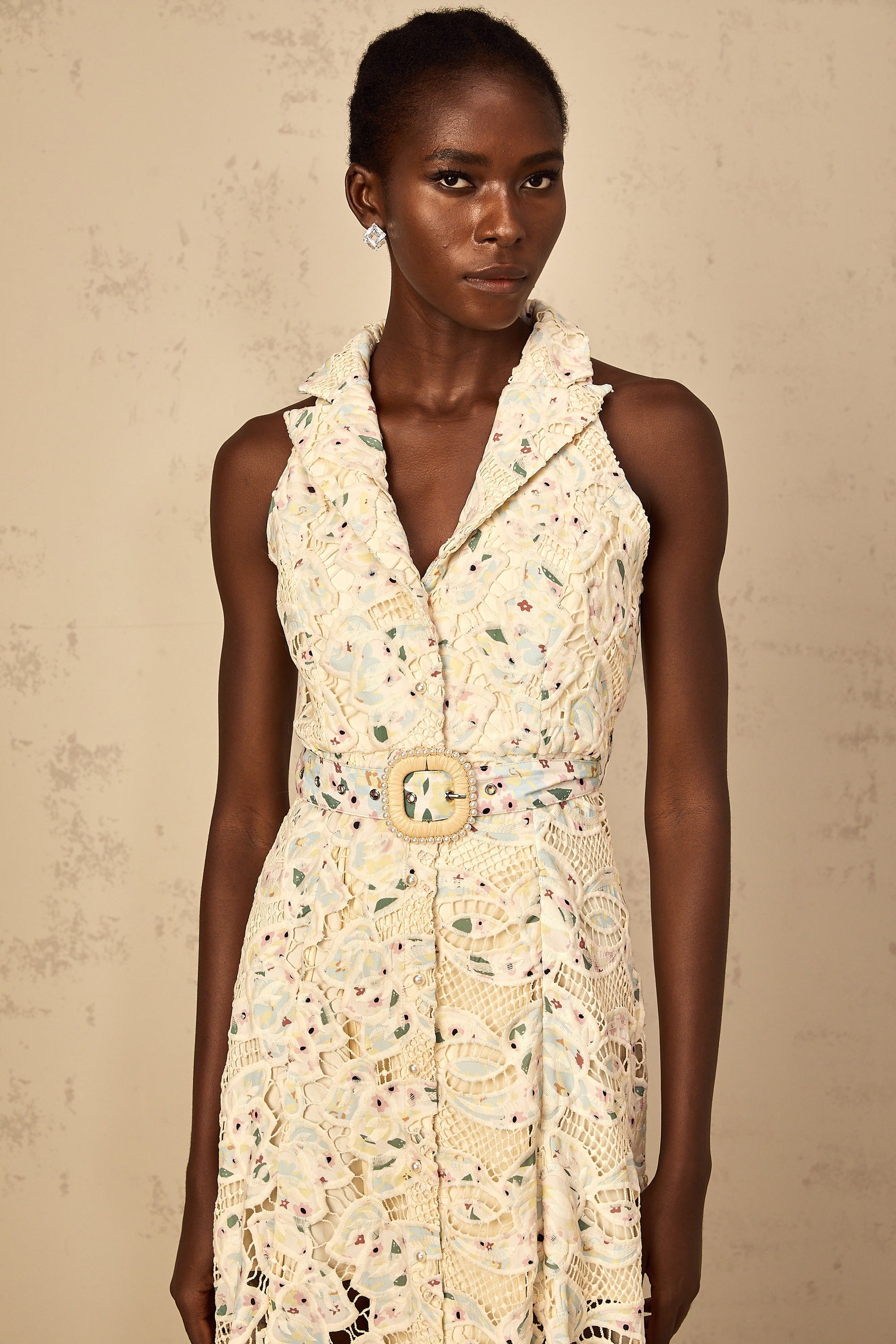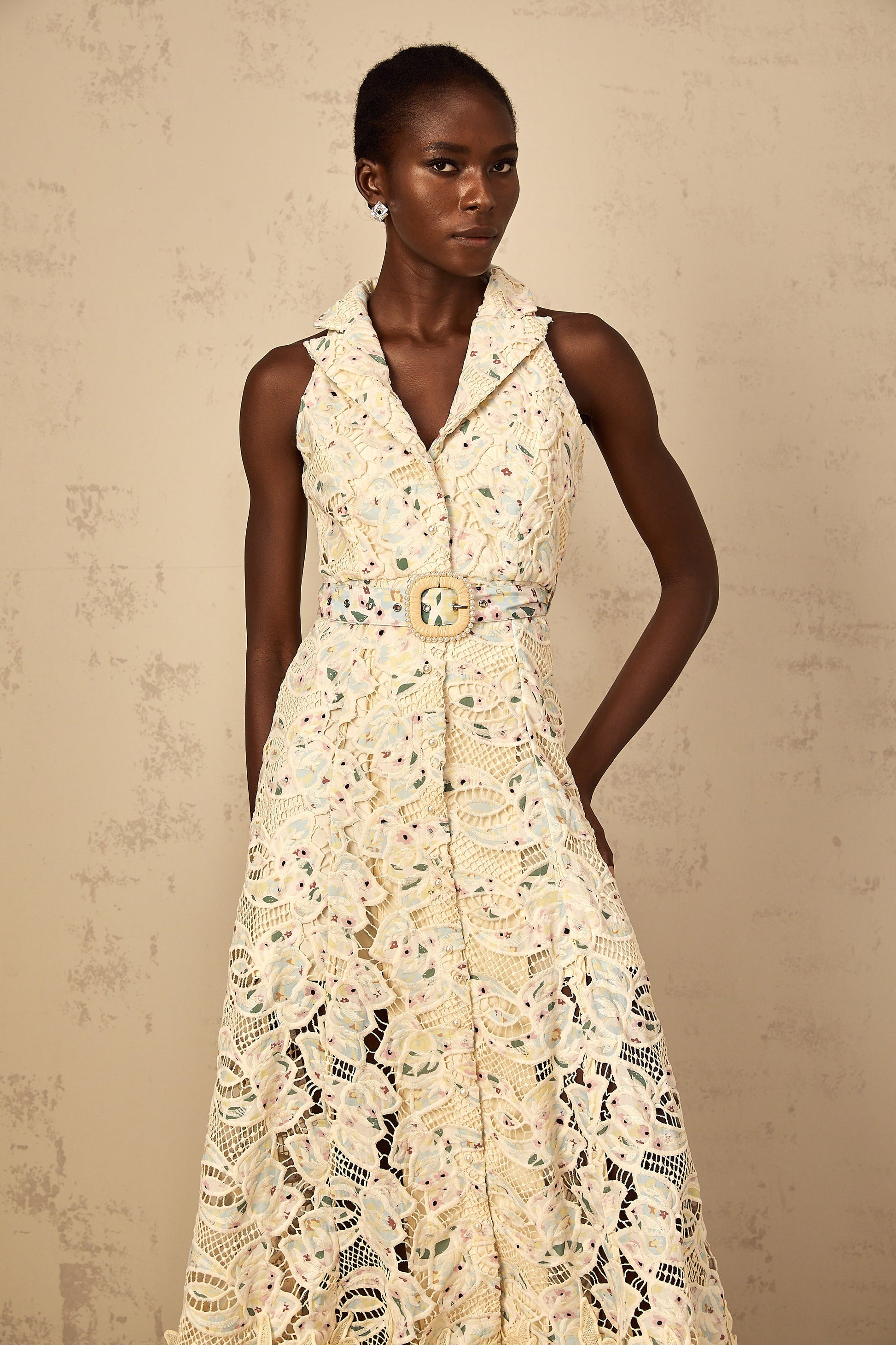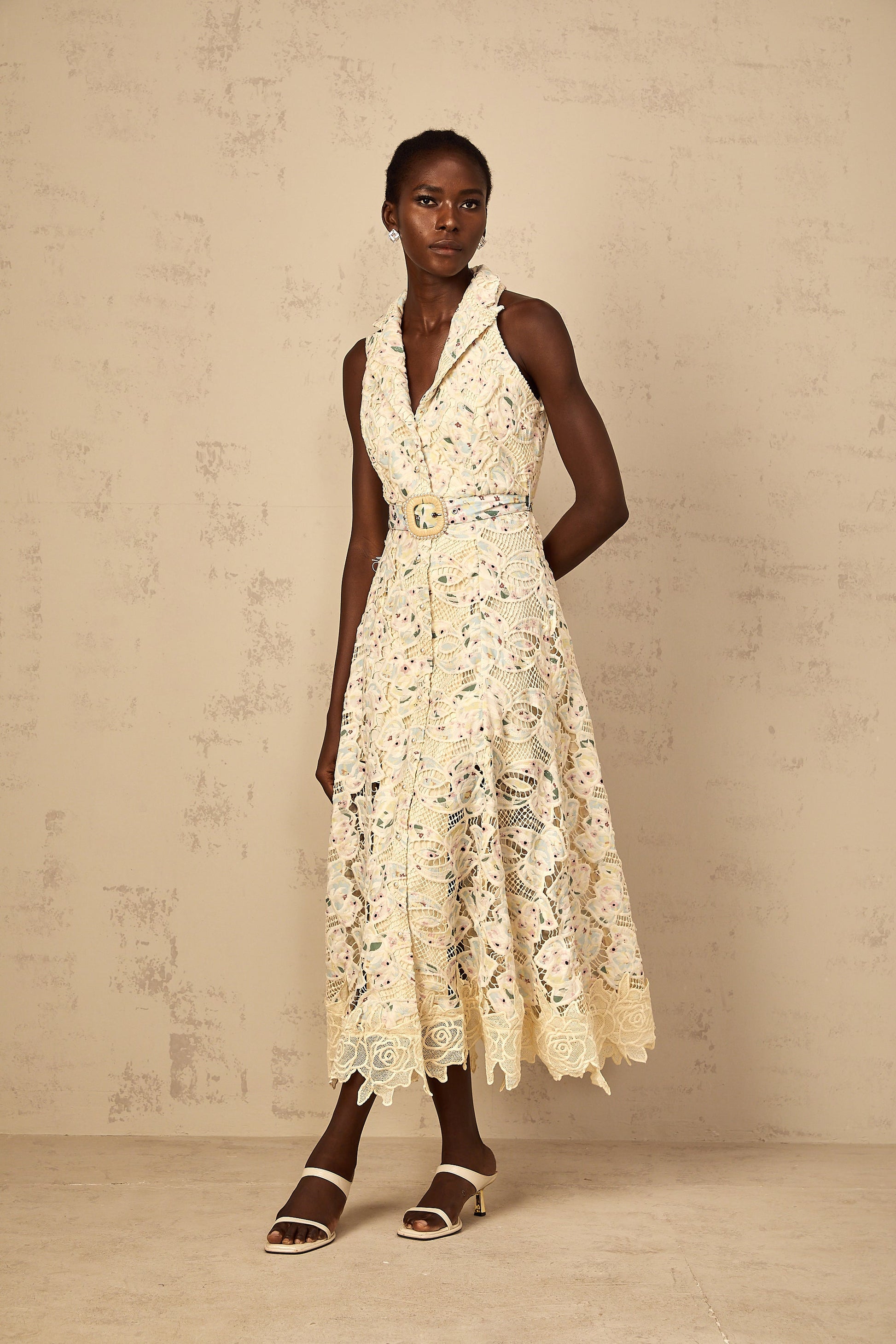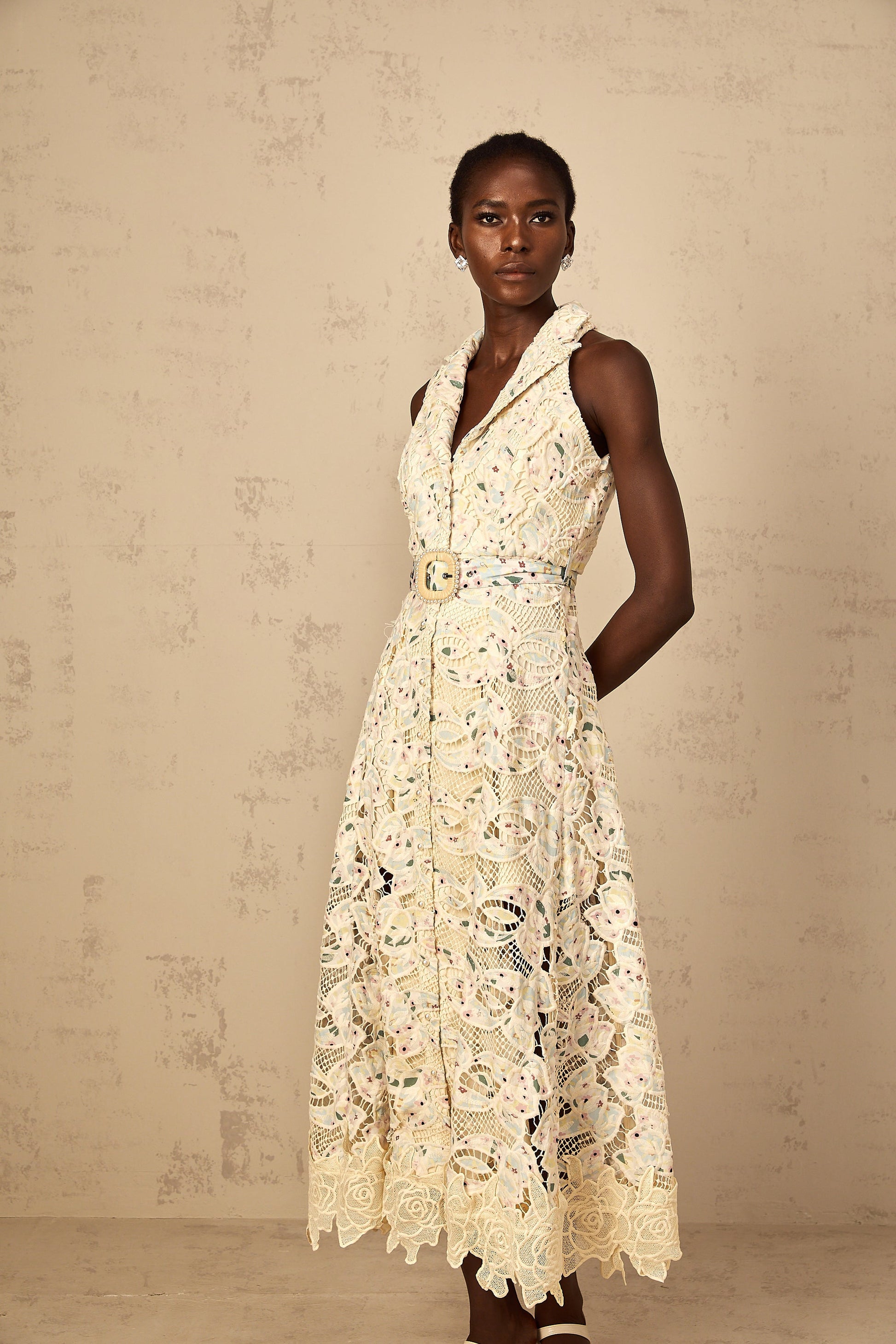 Avril Floral Embroidered Cut-Out Midi Dress