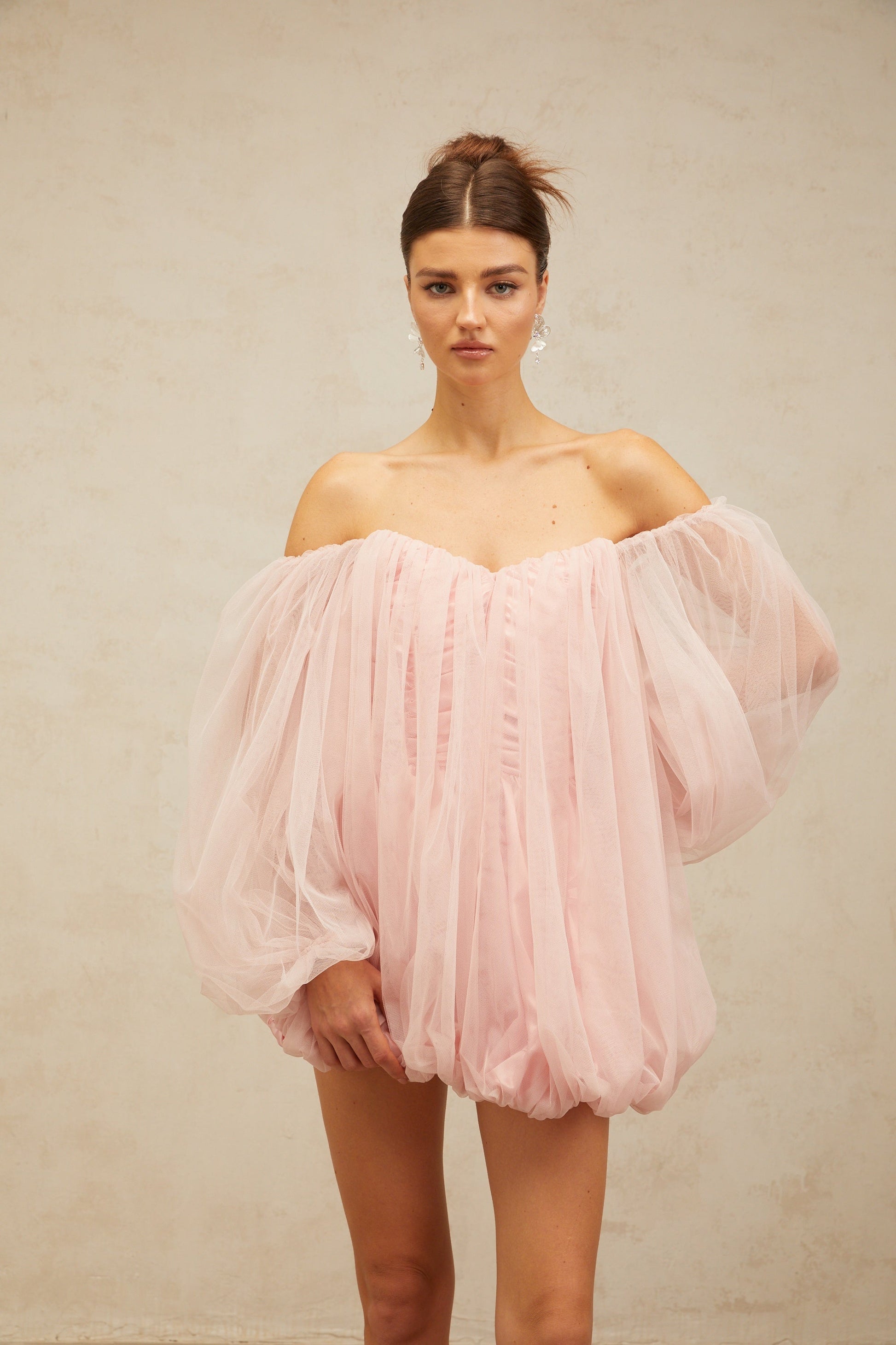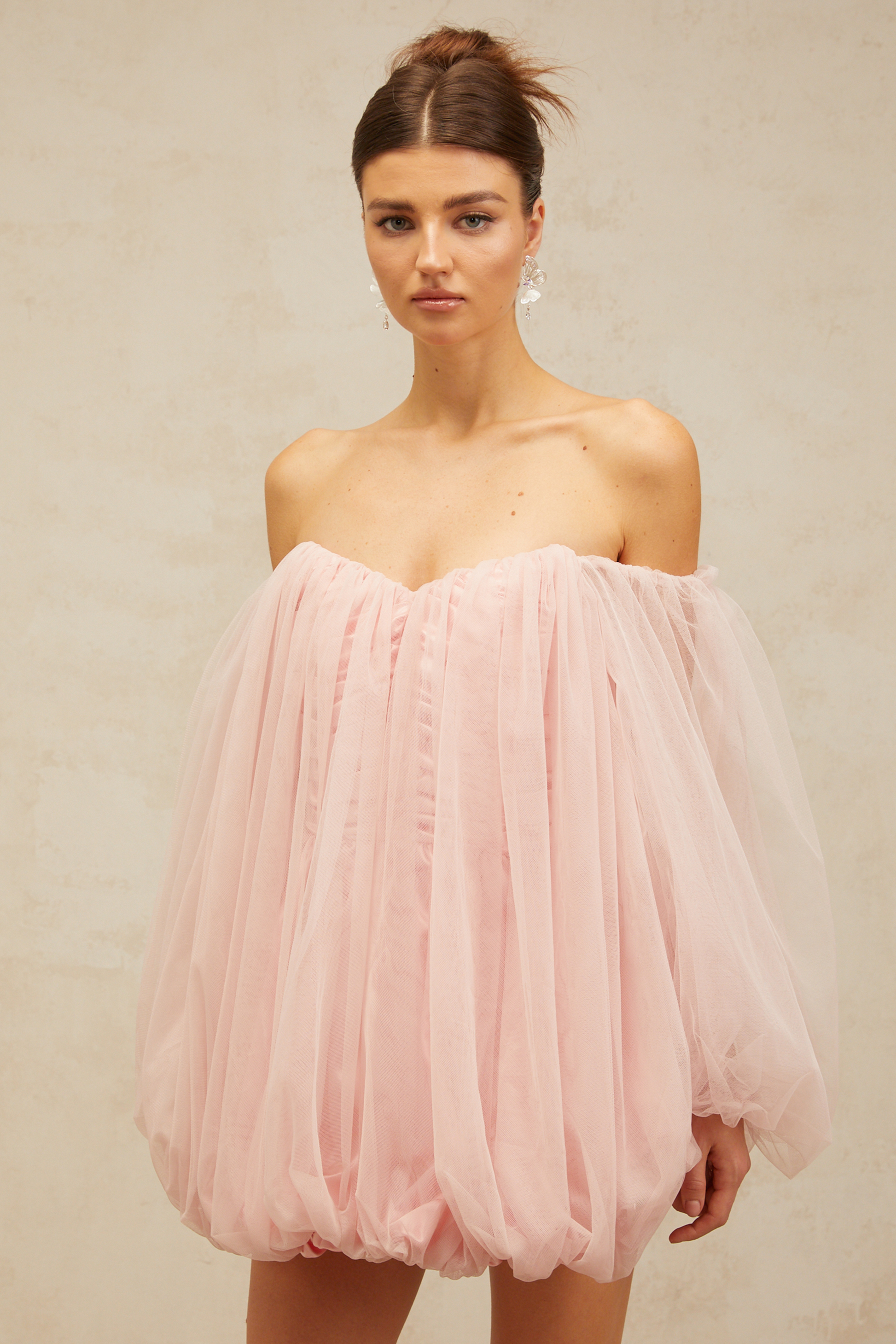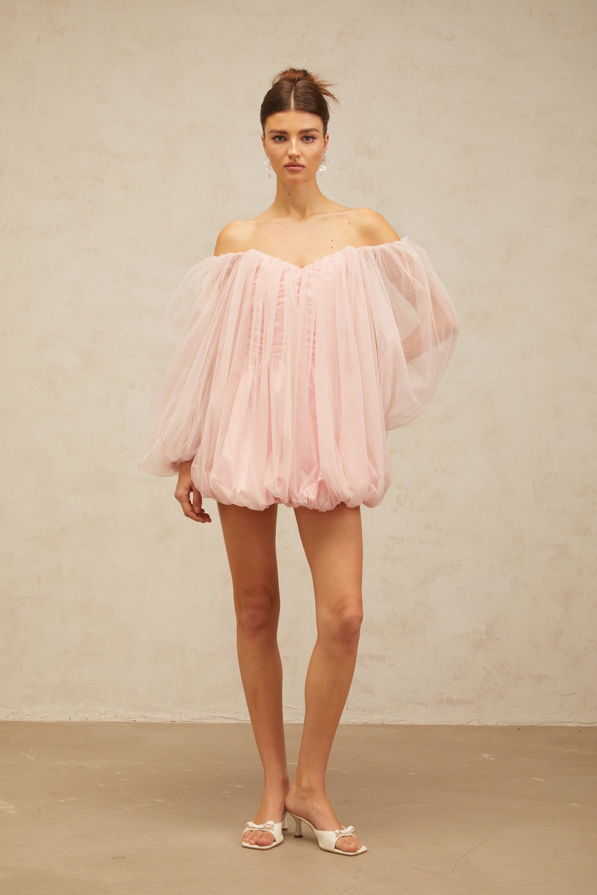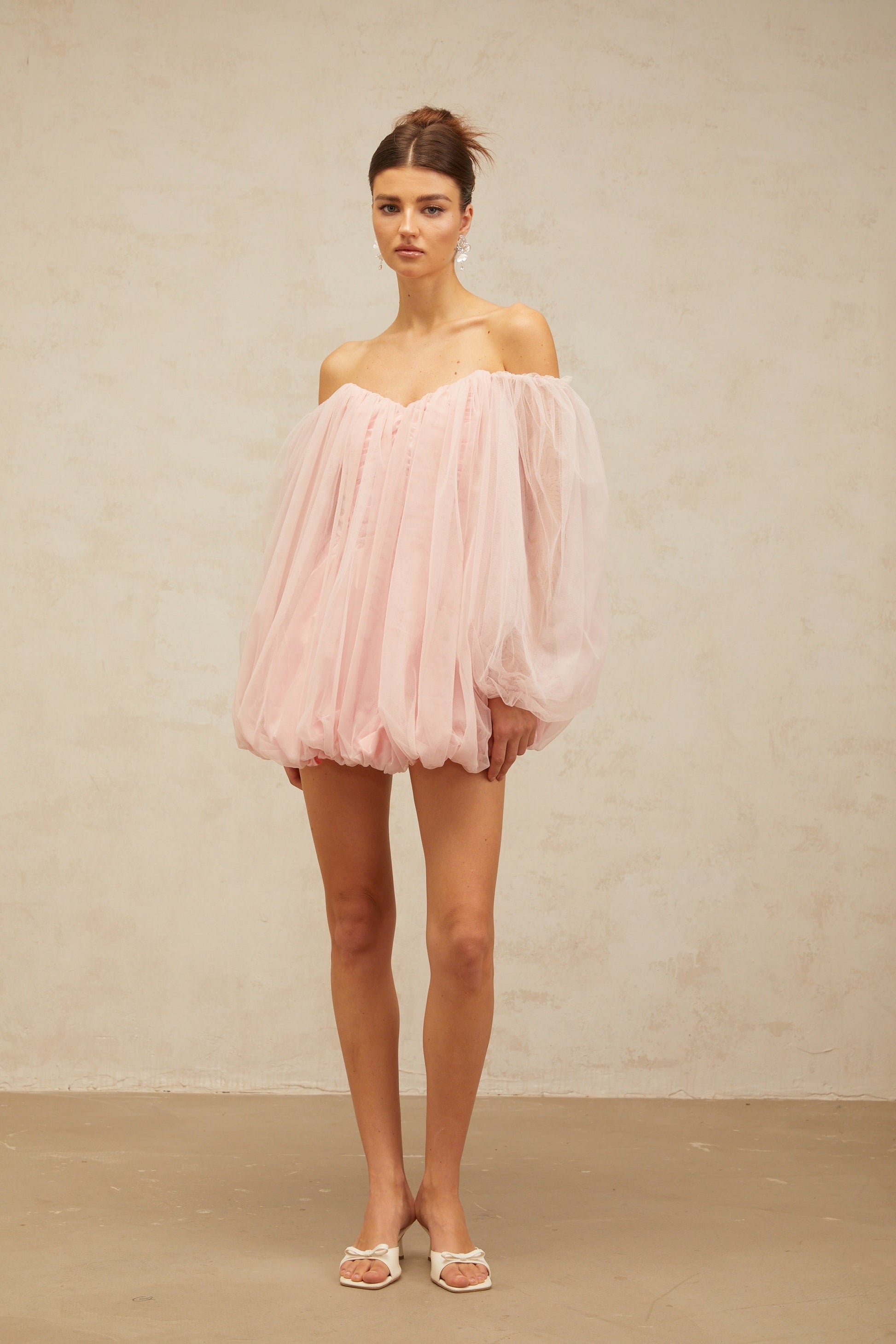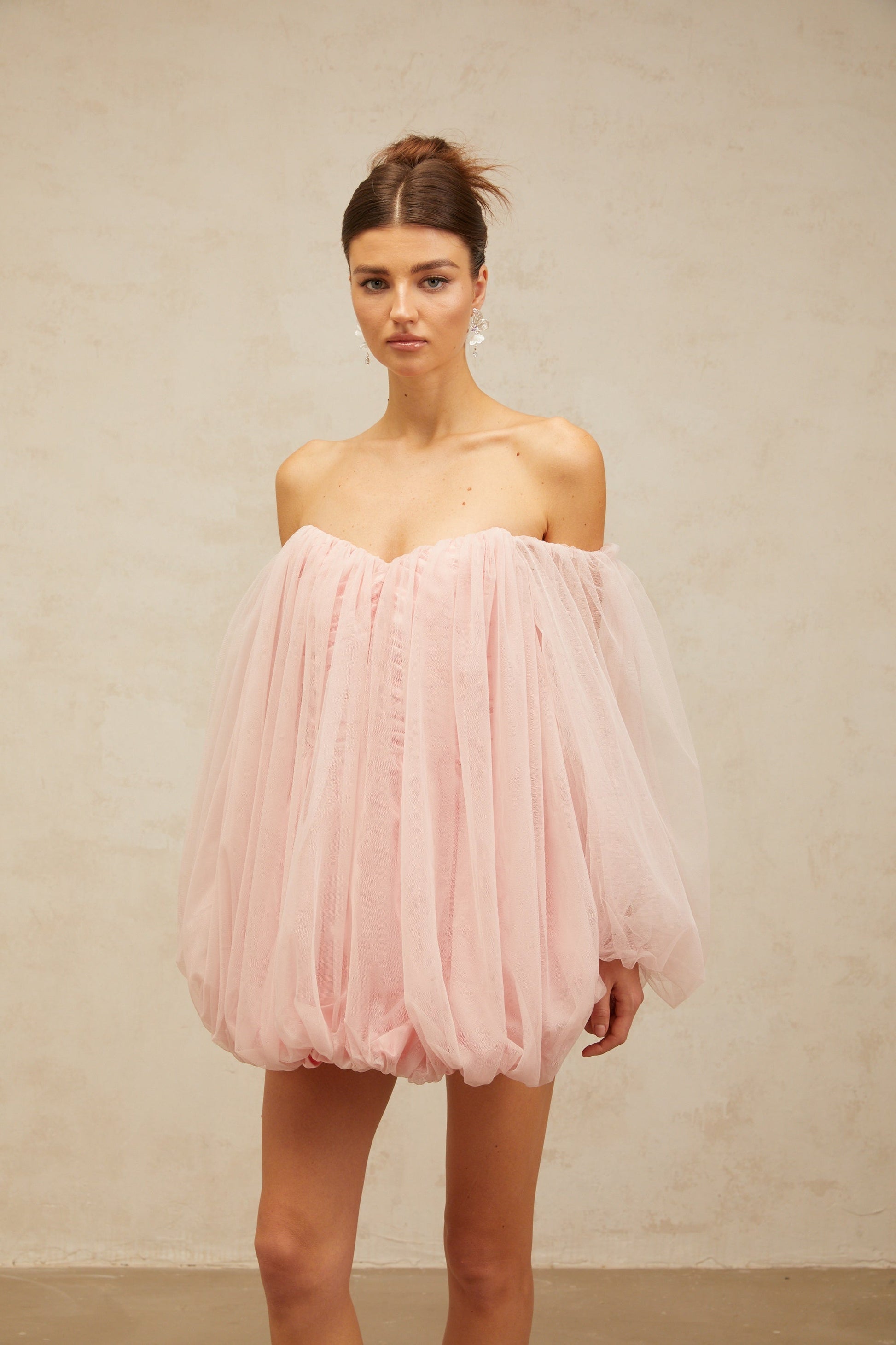 Avril layered bubble tulle mini dress in Pink