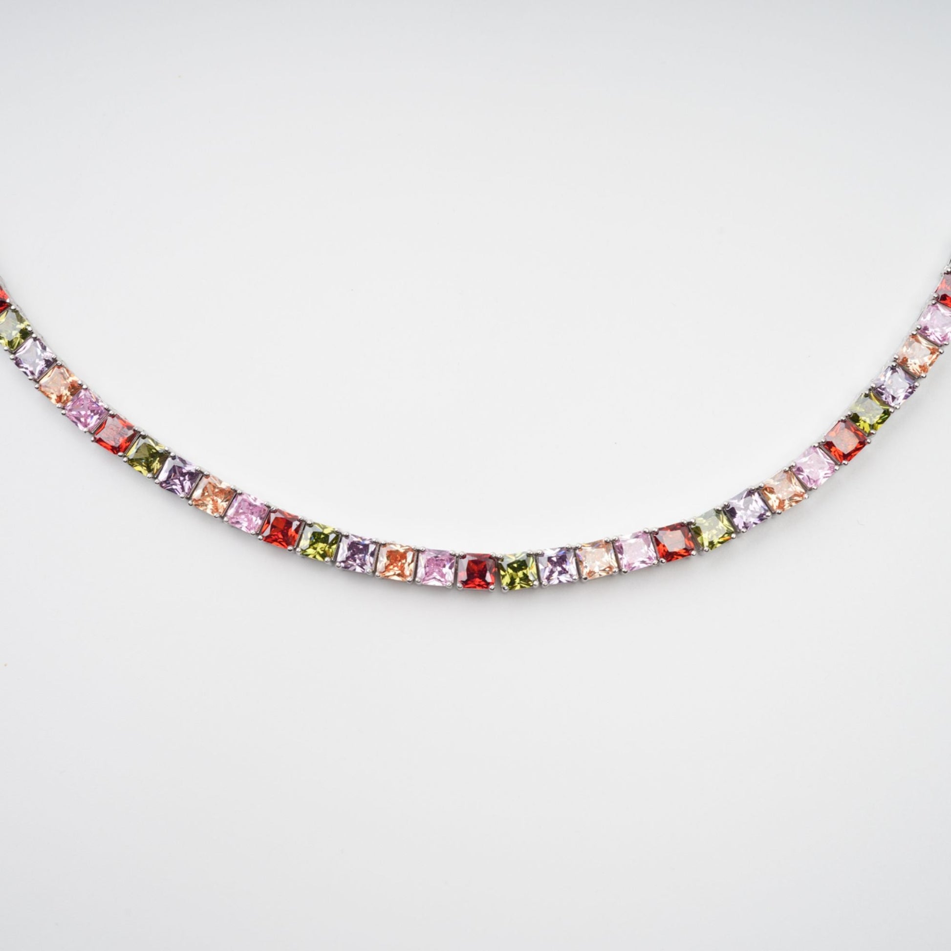 Avril Multicolor Square Cut Crystal Embellished Necklace