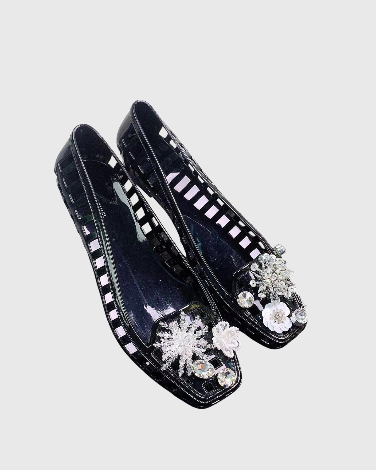 Bahia Flower Embellished Cutout Jelly Flats In Black