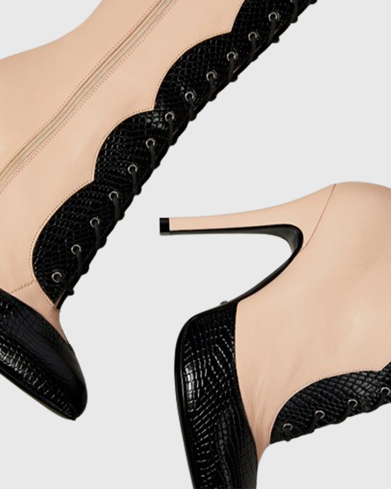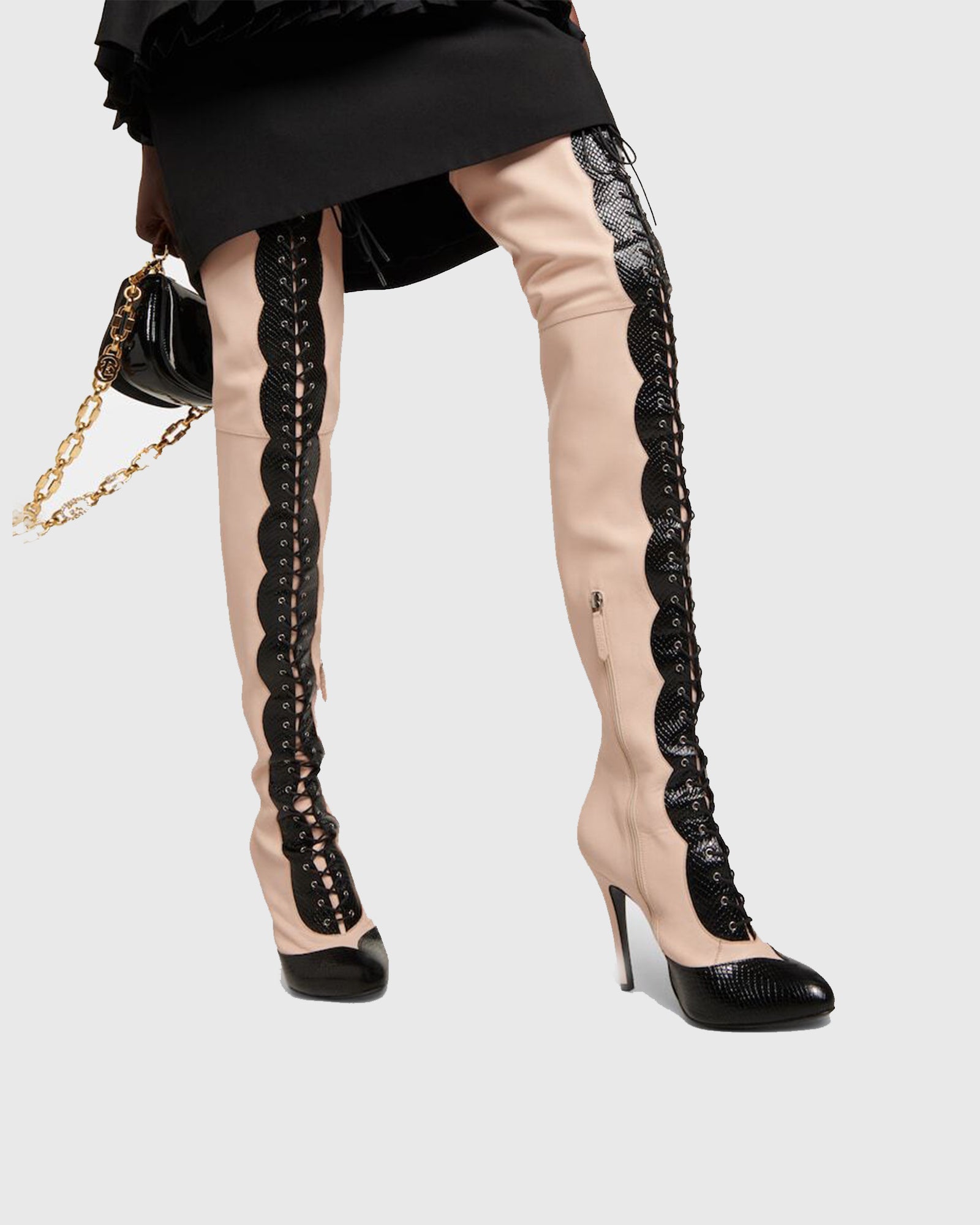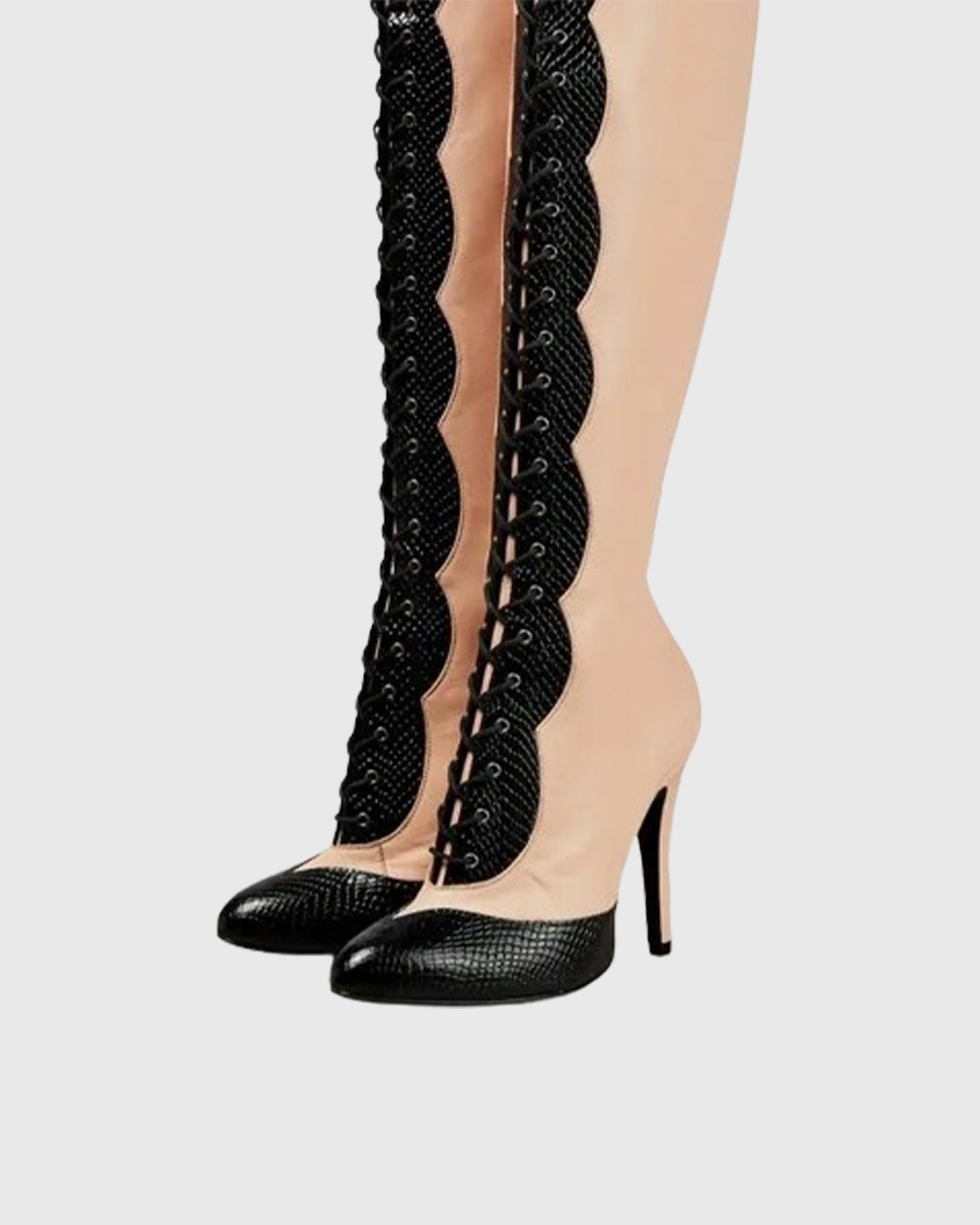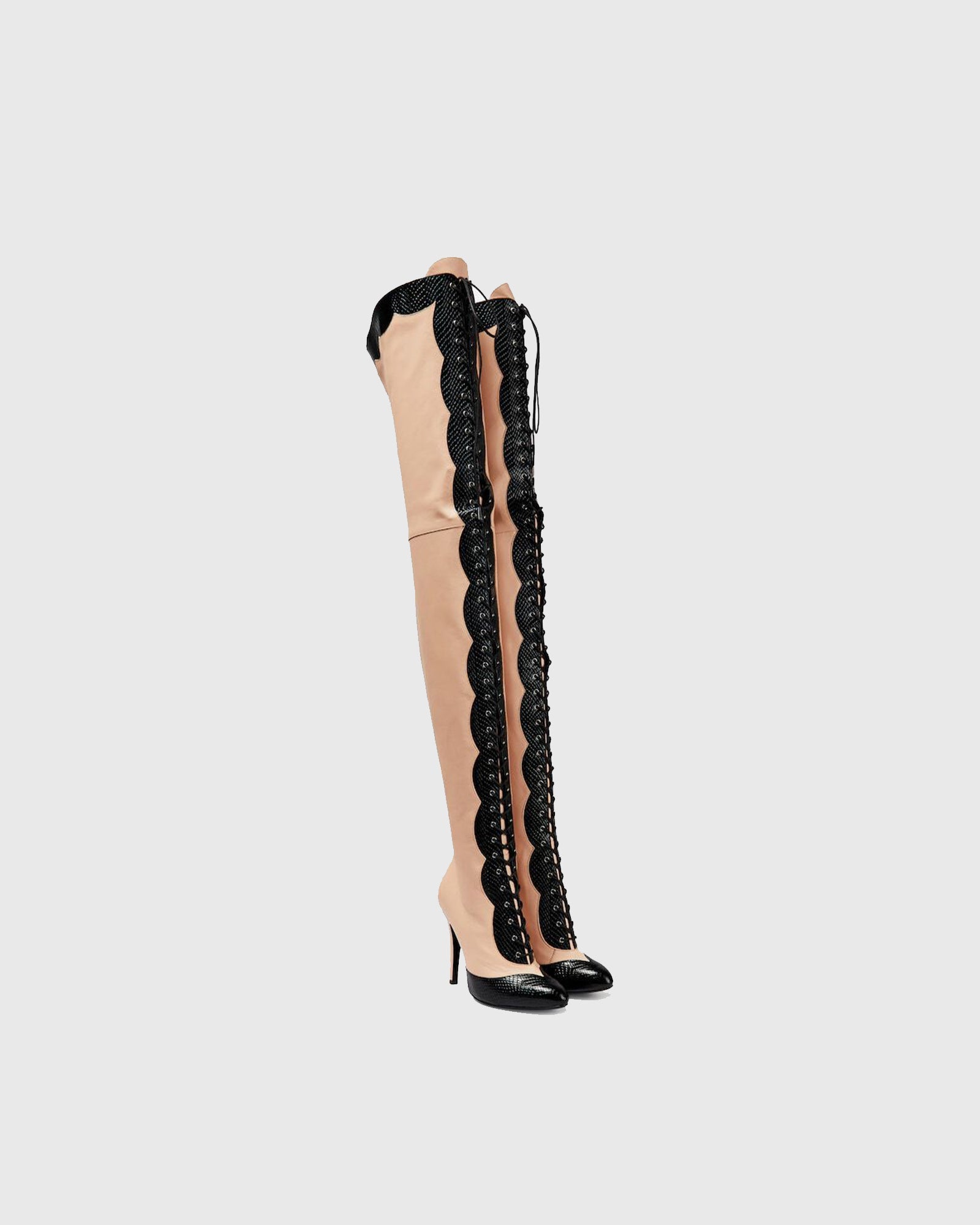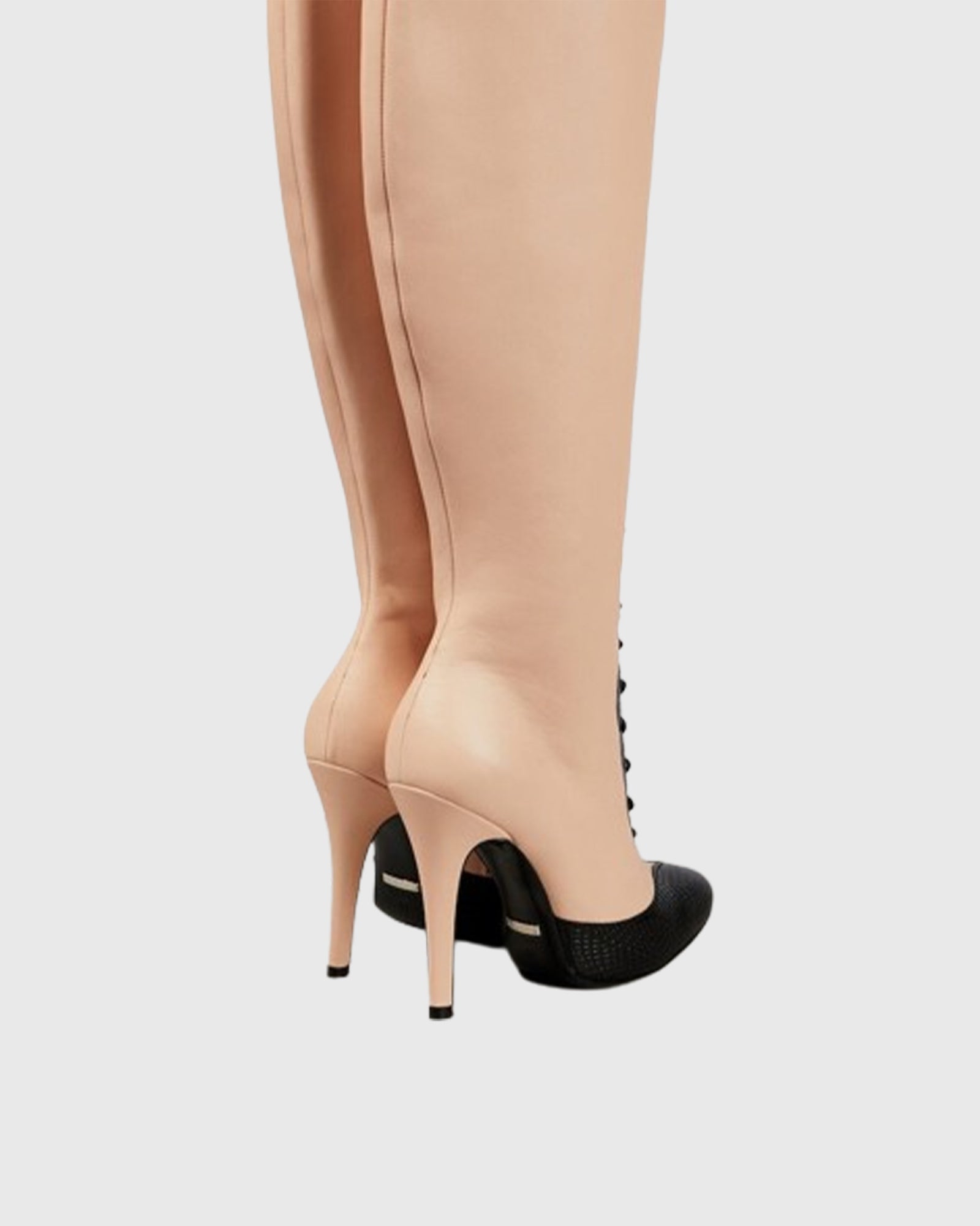 Balbina Leather Lace Up Over The Knee Boots In Apricot