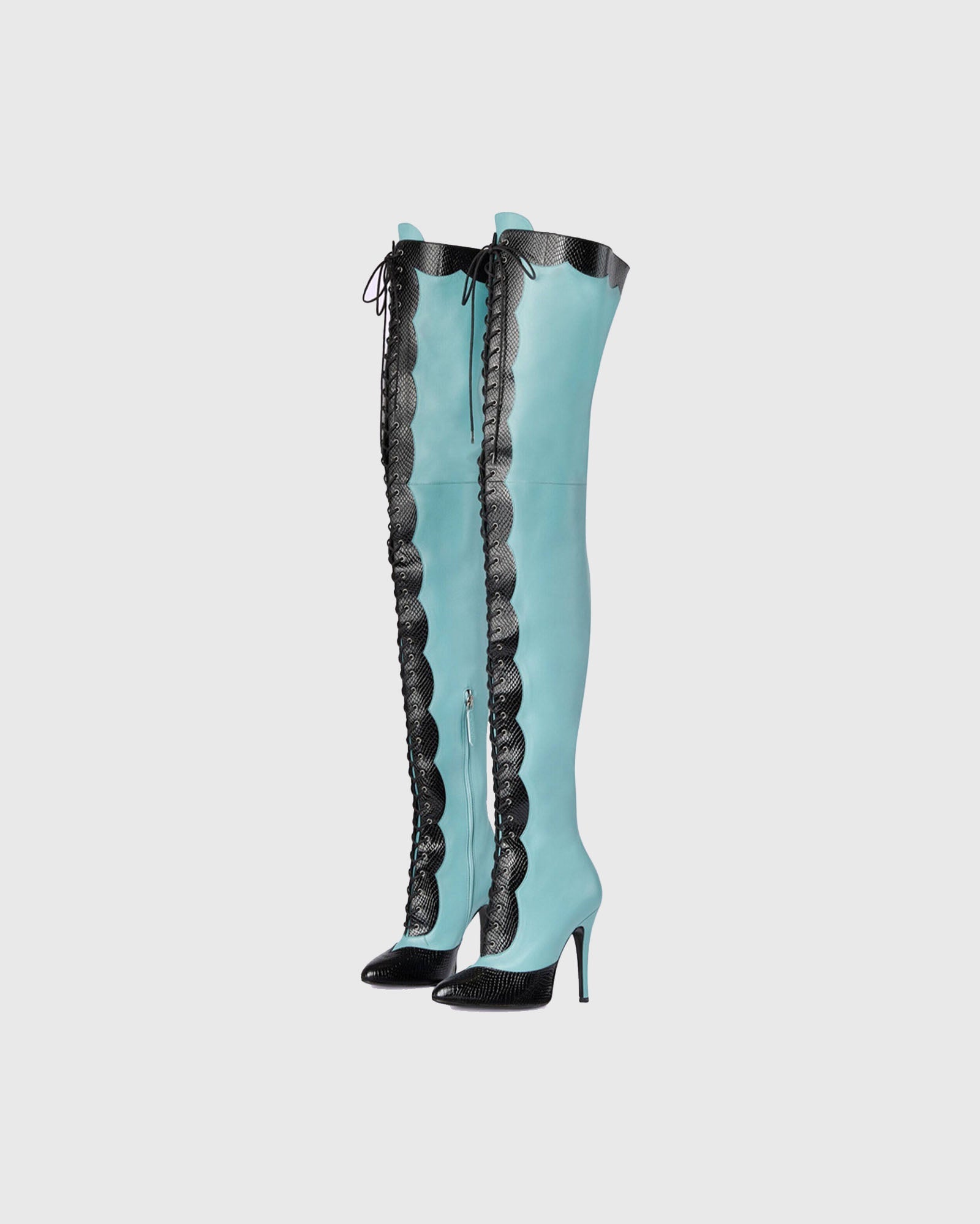 Balbina Leather Lace Up Over The Knee Boots In Sky