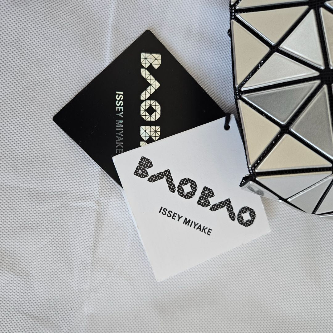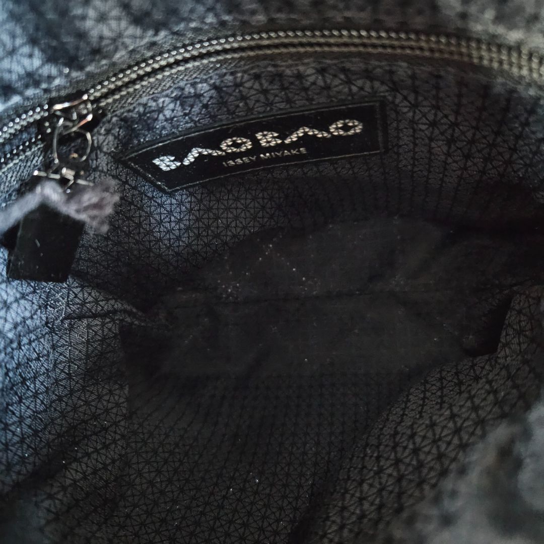 Bao Bao Issey Miyake geometric-panelled wring bucket bag, featuring signature triangle vinyl appliqués in grey throughout, adjustable shoulder straps, drawstring closure at the throat. Zip pocket at interior