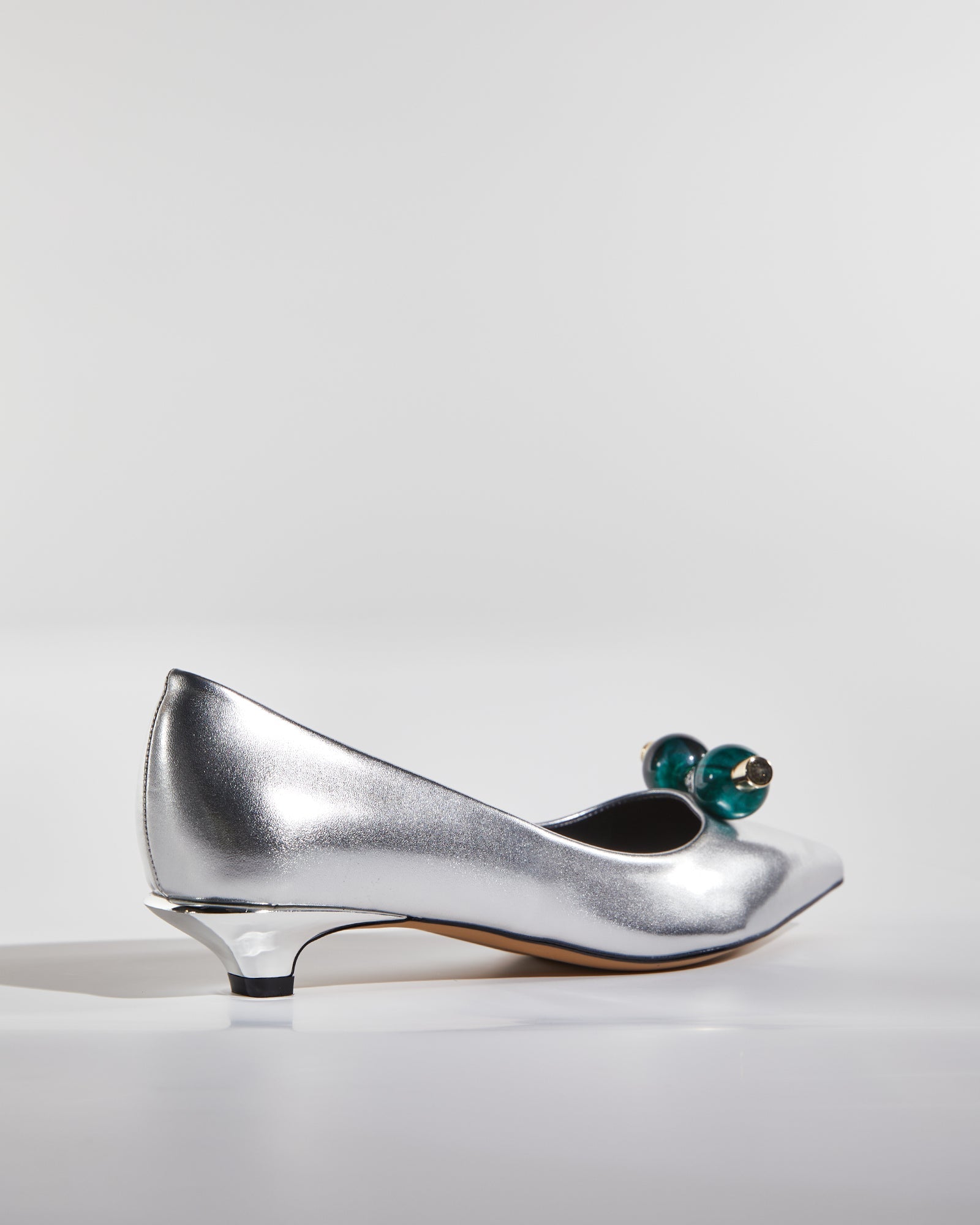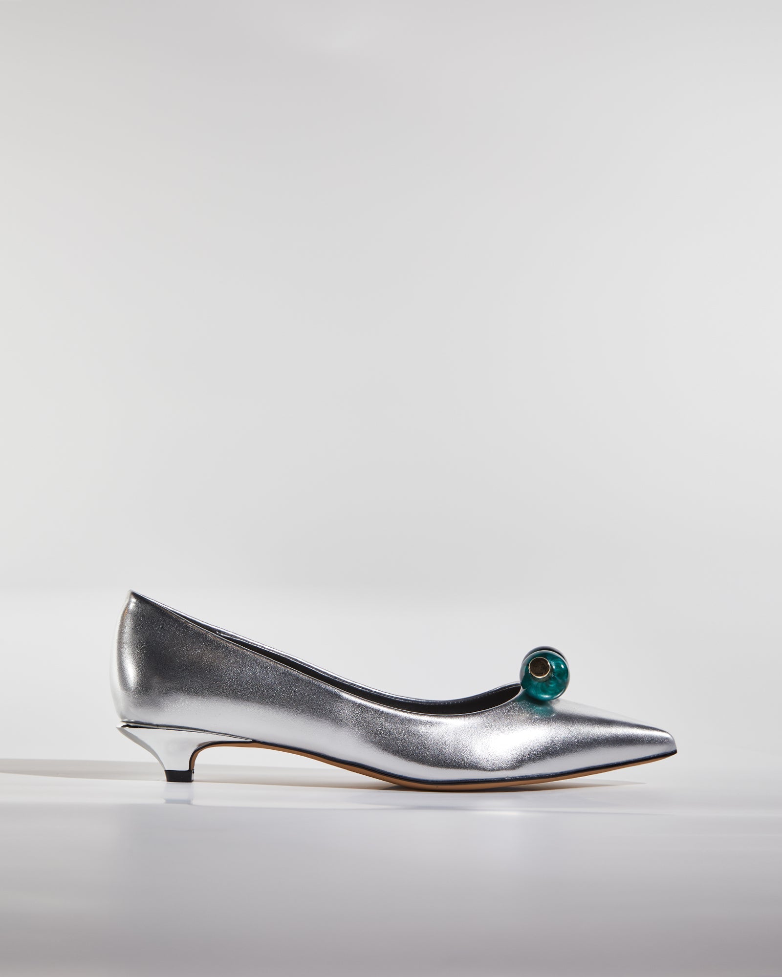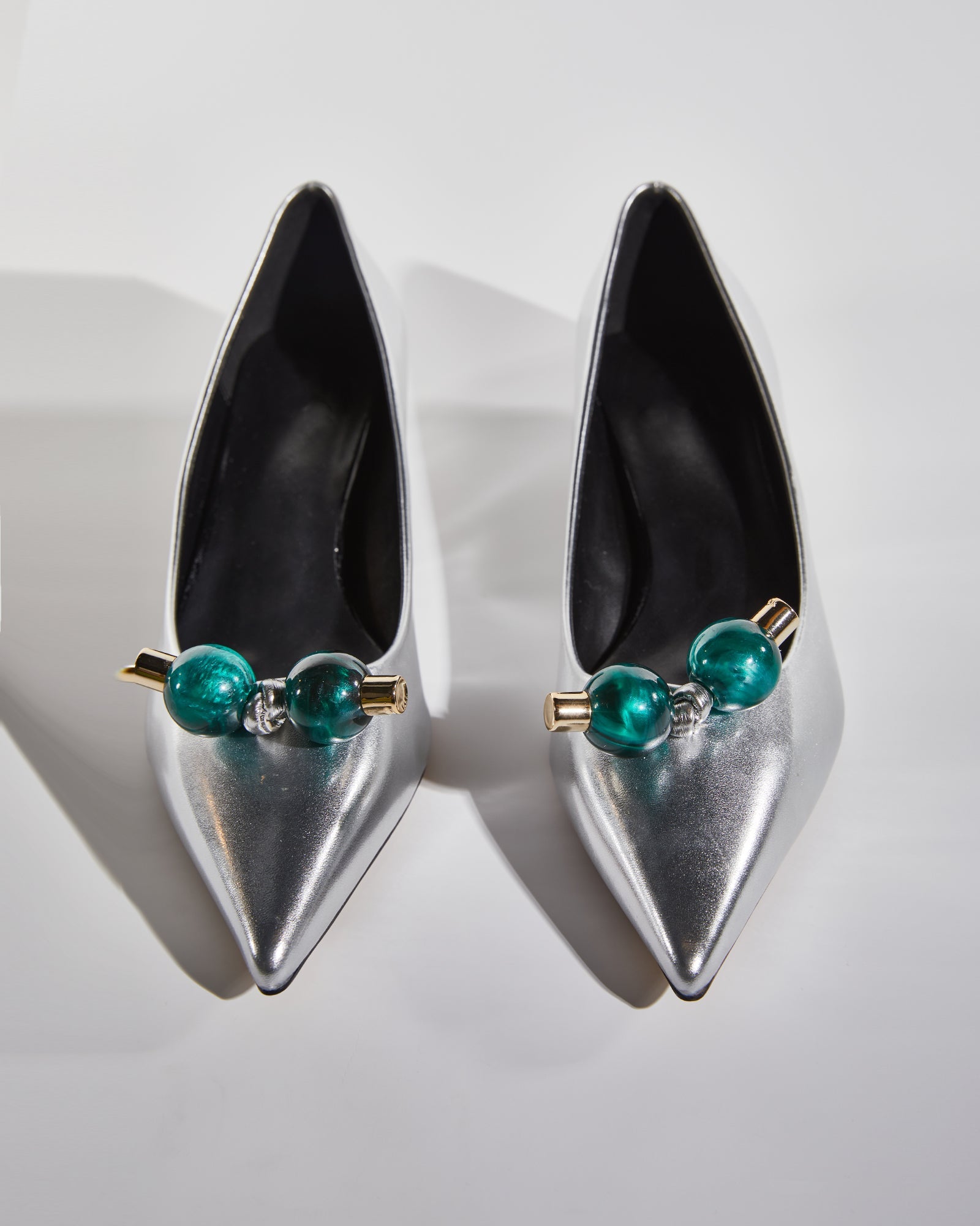 Slip into instant glamour with Bay Beads Metallic Kitten Heels! These stunning silver heels feature sparkling beads and a sleek design that will elevate any outfit. Perfect for a night out, weddings, or any special occasion. You'll feel confident and stylish with every step in these heels.