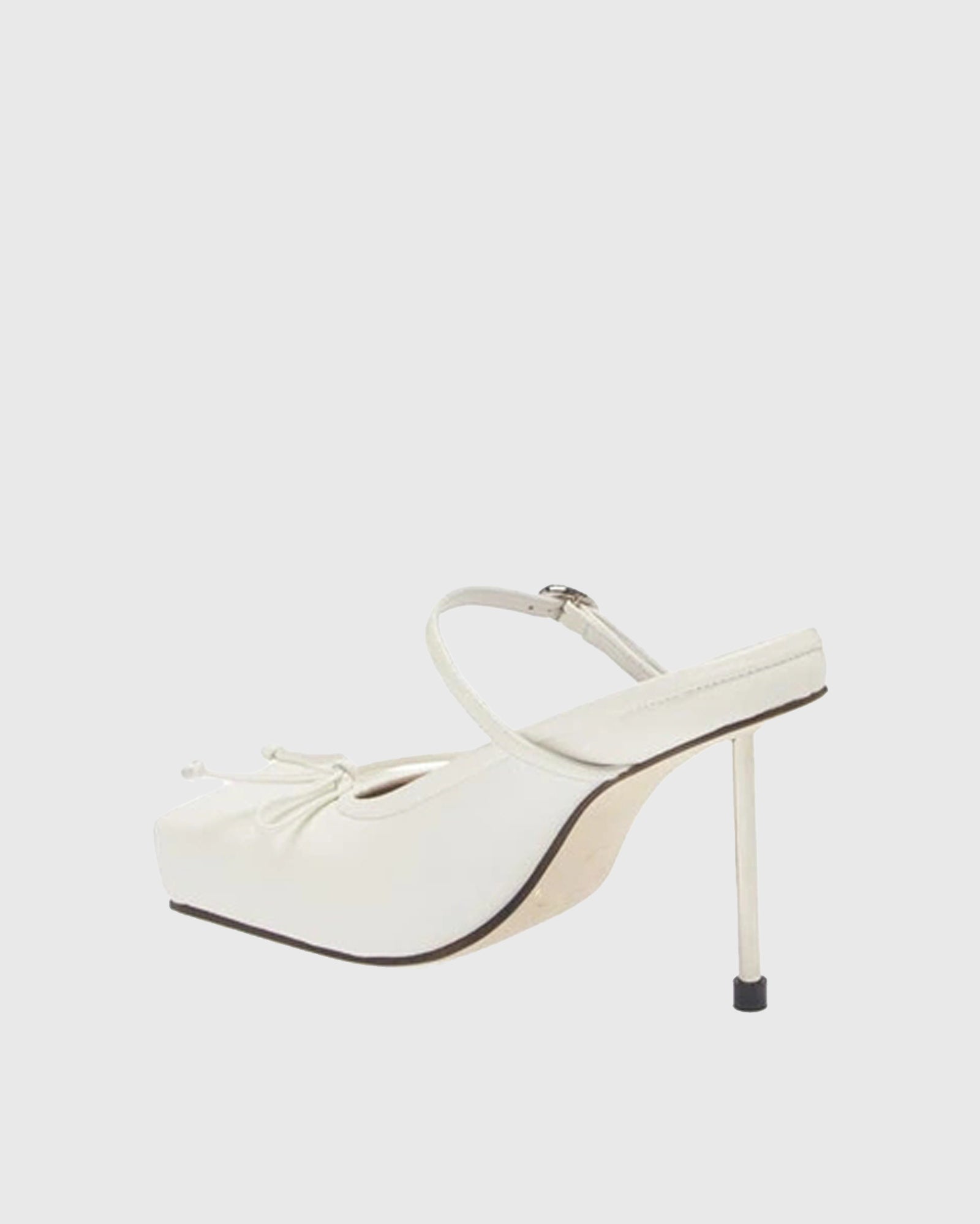 Elevate your shoe game with our Beatrice Bow Embellished Leather Mules In White! Made with luxurious leather and adorned with a chic bow, these mules are the perfect combination of style and comfort. Slip into these mules and add a touch of sophistication to any outfit.
