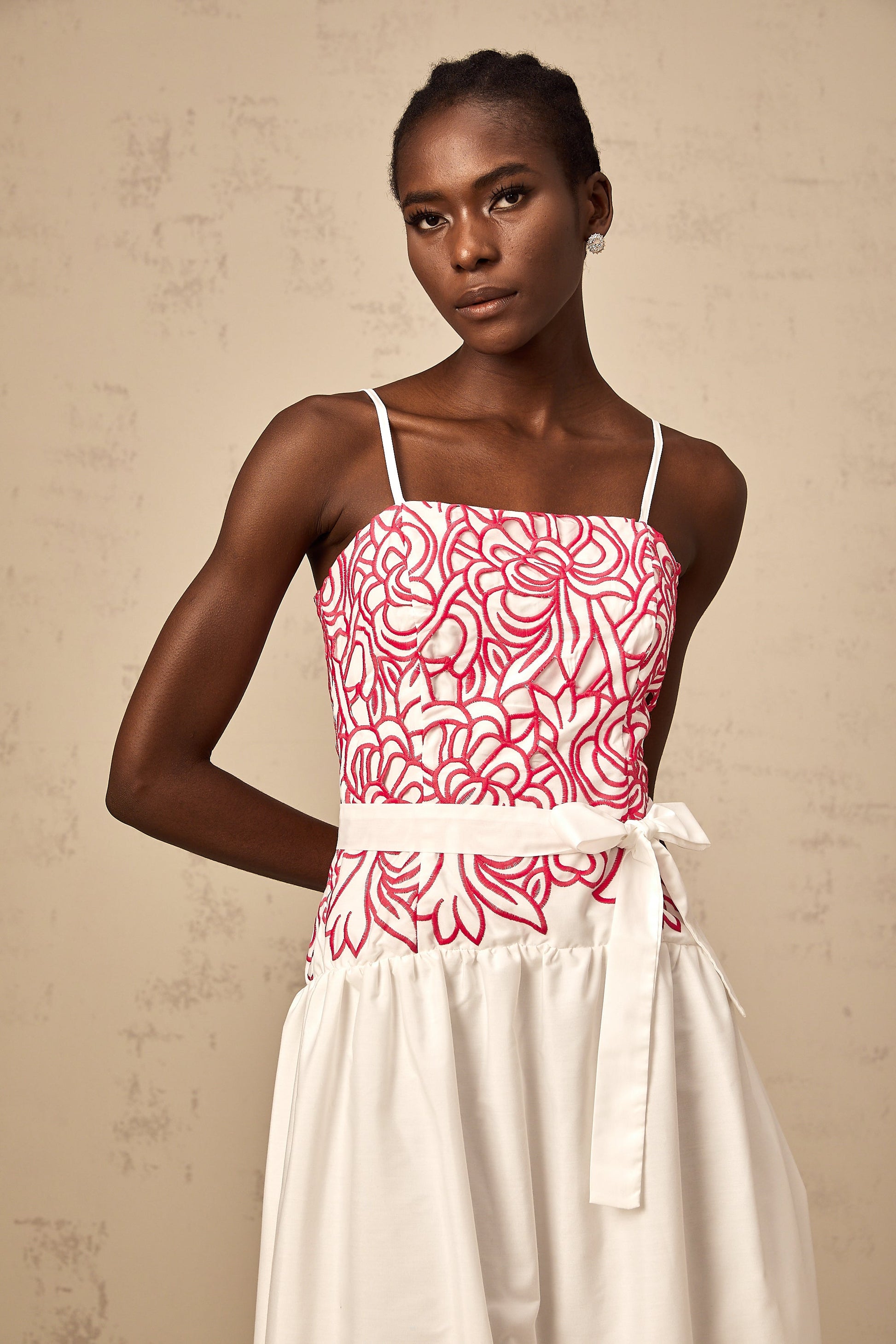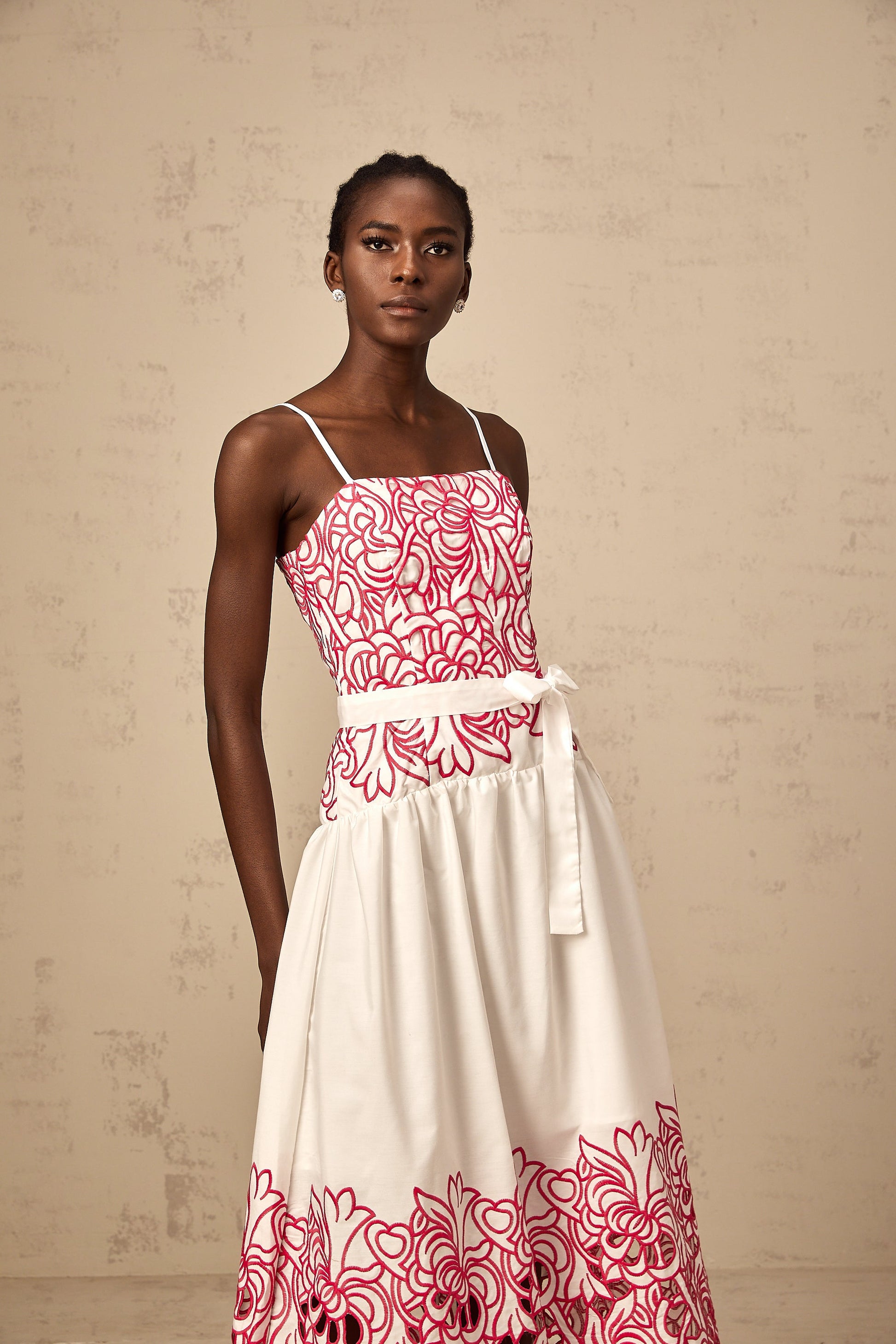Béatrice pink cut-out embroidered midi dress