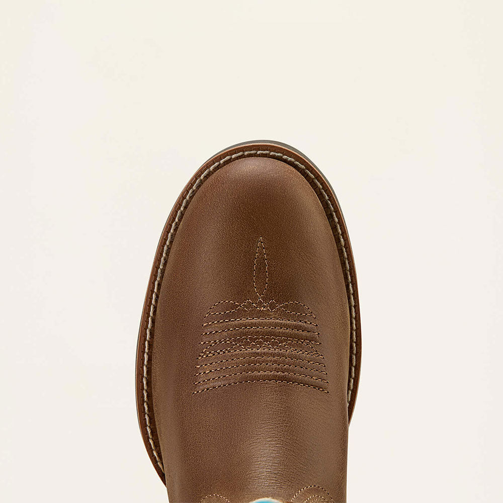 Beige & Brown Round Toe Embroidered Mid-Calf Western Cowgirl Boots