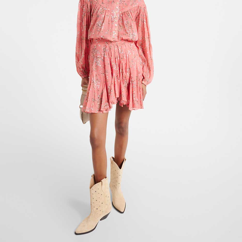 - Special Designs: Beige faux suede mid-calf boots with stud embellishment and side loops.
