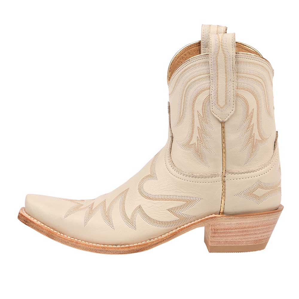 Beige Pointed Toe Chunky Heel Booties Embroidered Cowgirl Boots