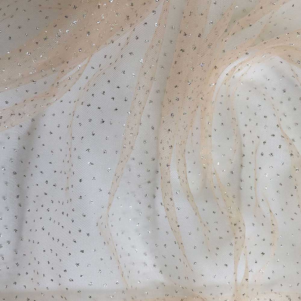 - Special Design: Beige vegan leather sandals with glittery flared mesh ankle band design.