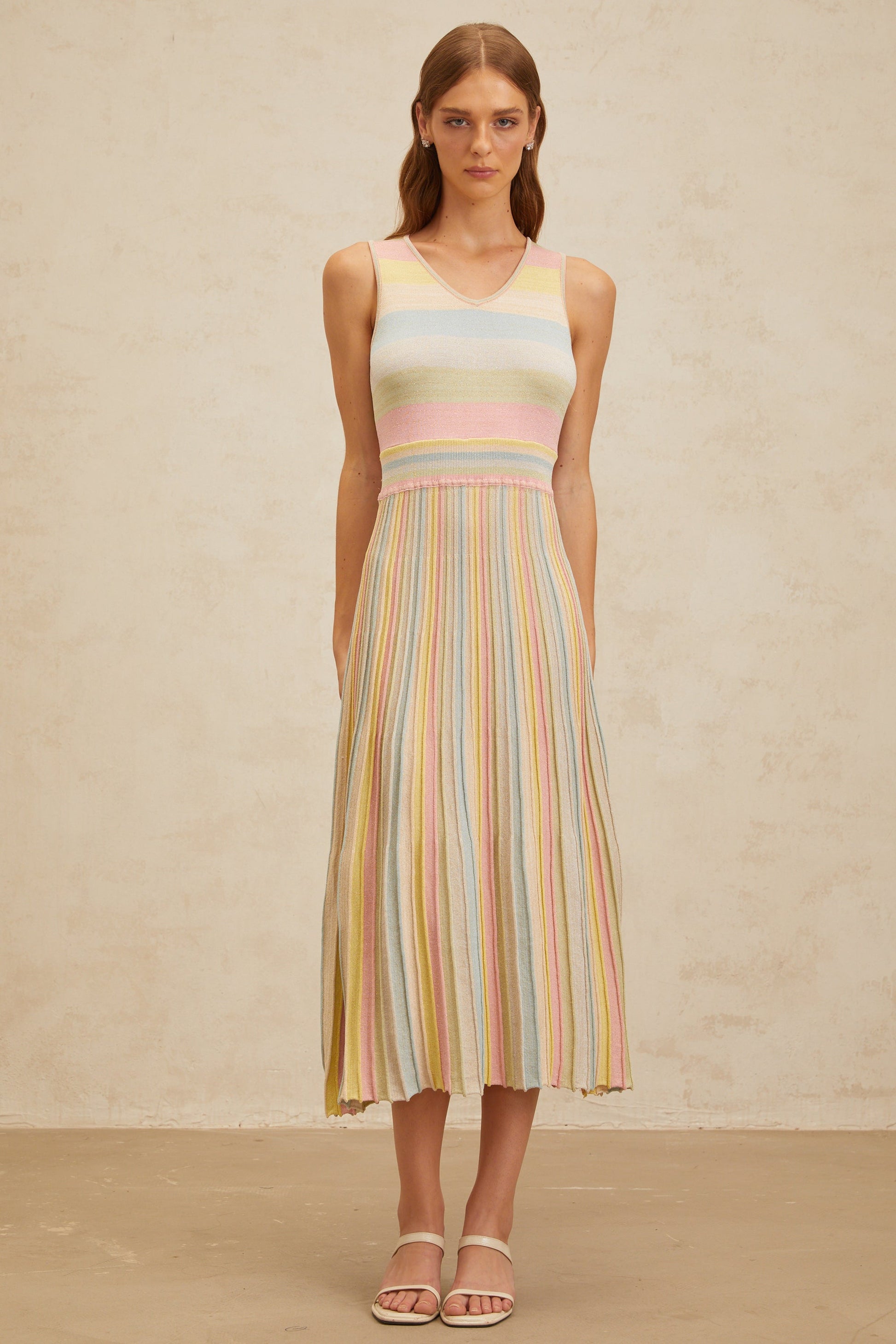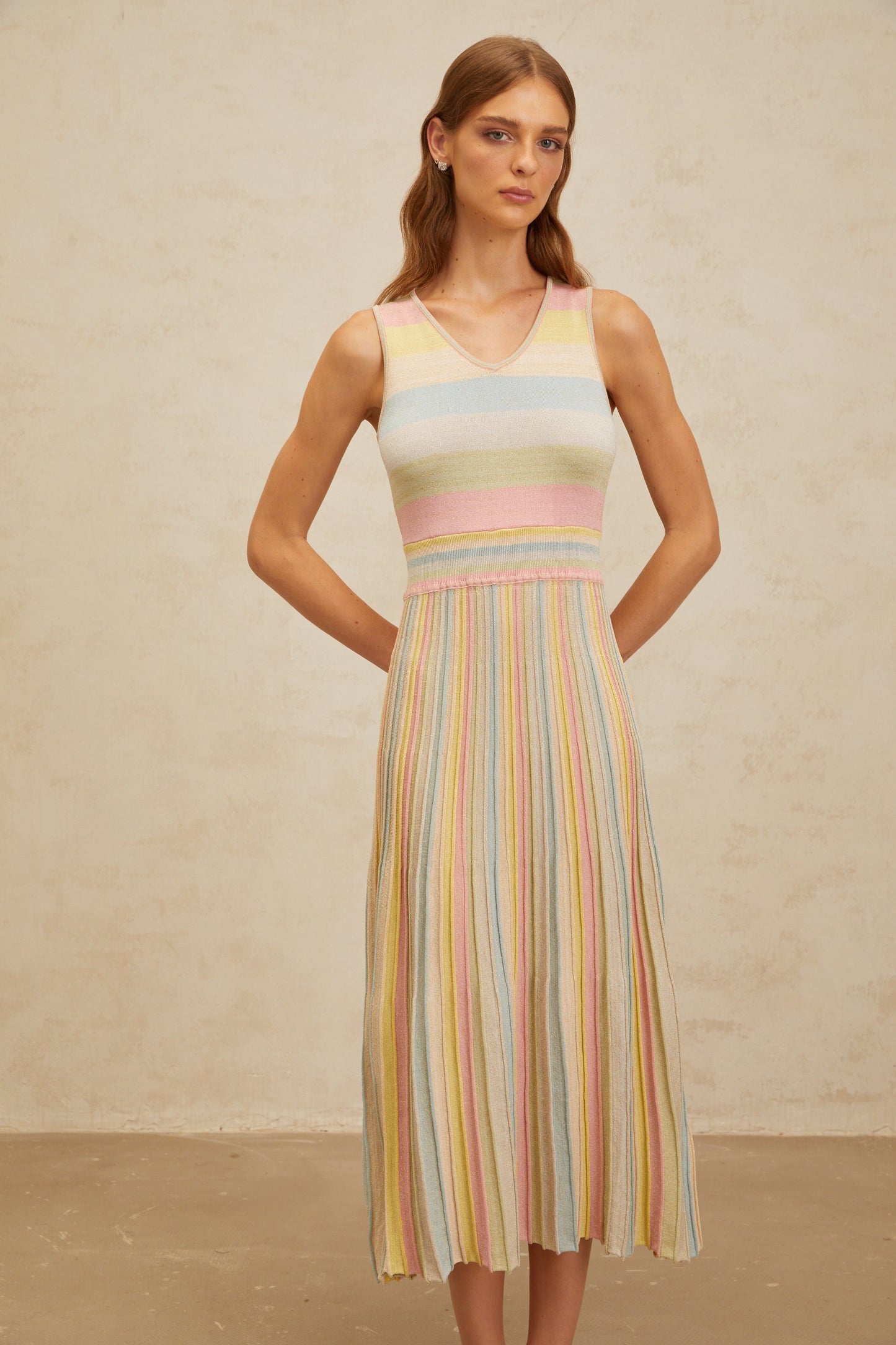 Bénédicte Blue Summer Striped Knit Midi Dress