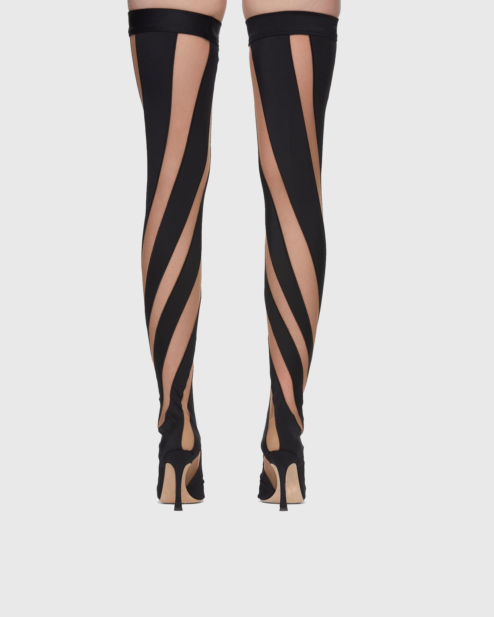 Lorenza Stripe Mesh Over The Knee Boots In Black